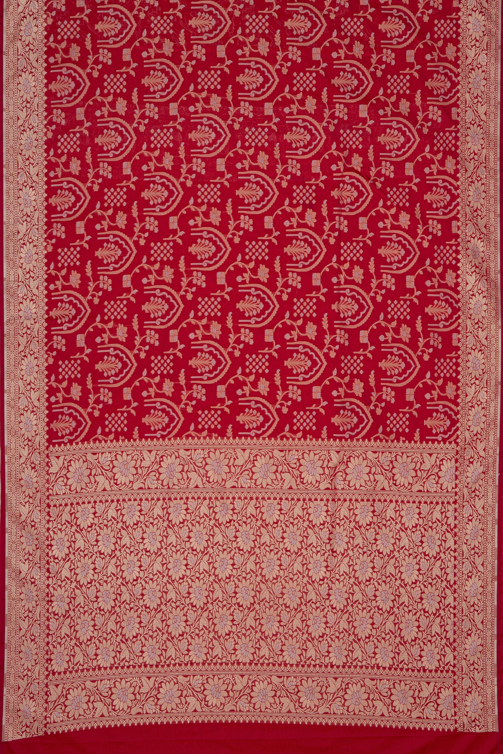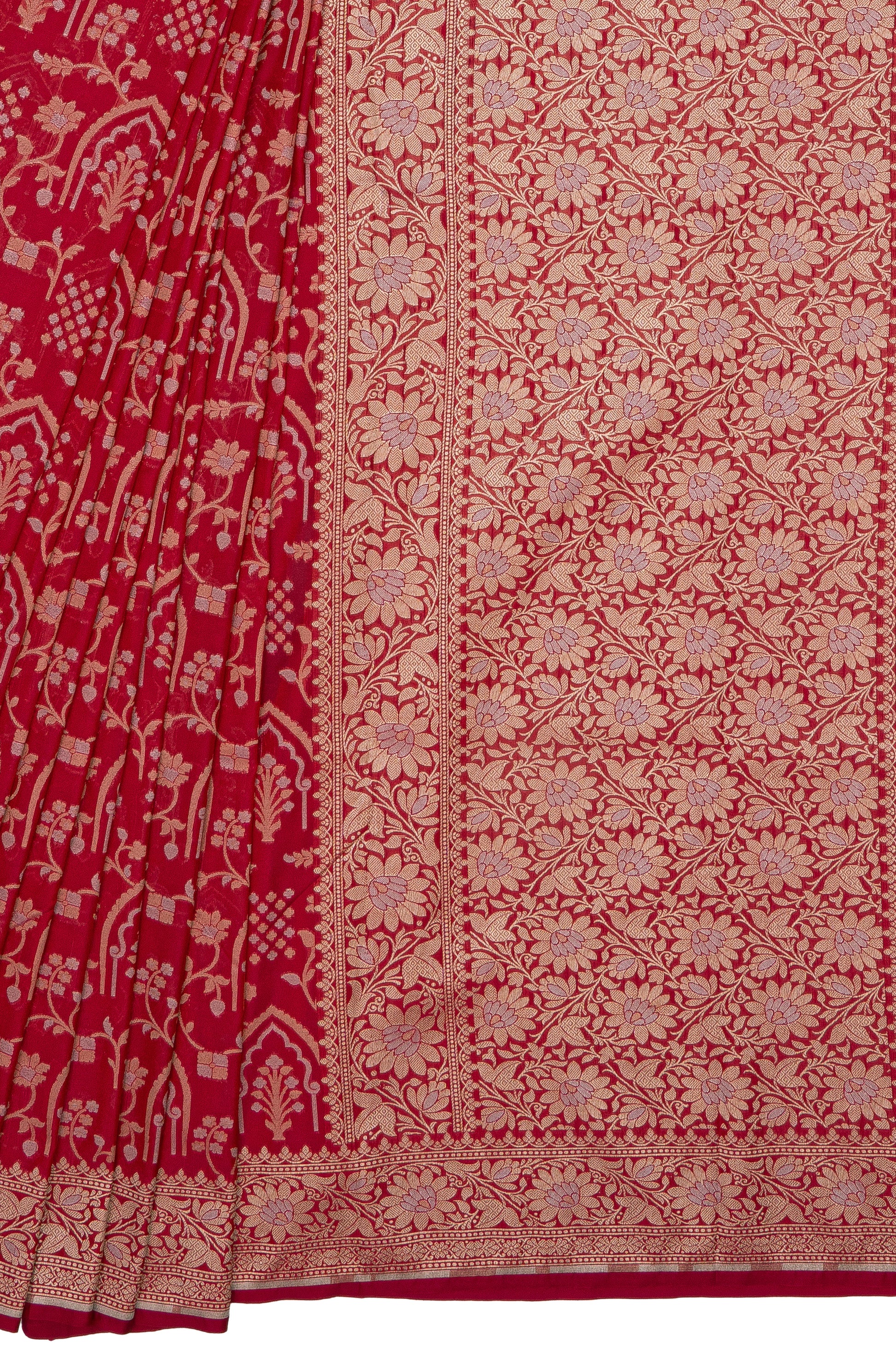 A timeless Rani Pink Banarasi with the rich hand of Art Silk - Katan Silk. a gentle sheen and even fall make it instantly camera-ready. A graceful pick for bridal, festive and puja and family celebrations. A matching blouse creates a cohesive, refined ensemble.