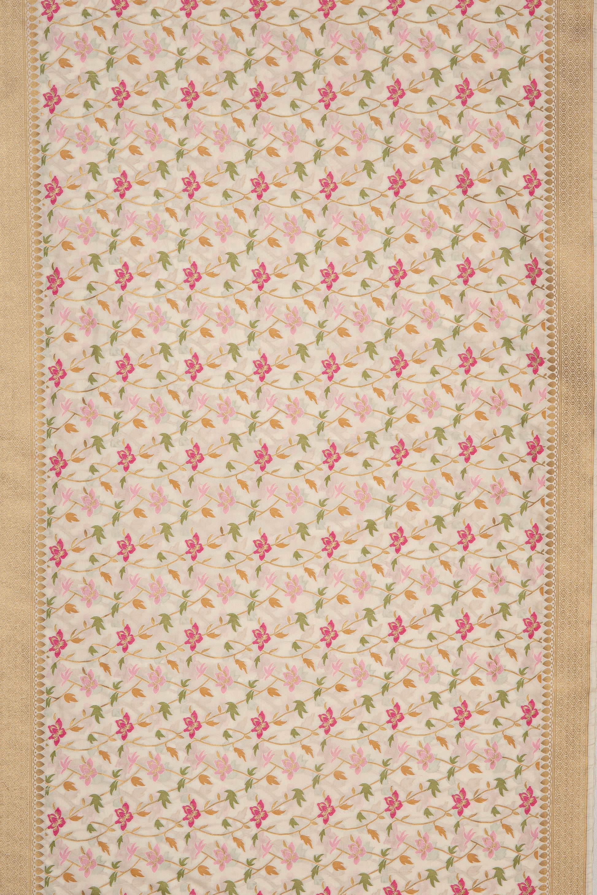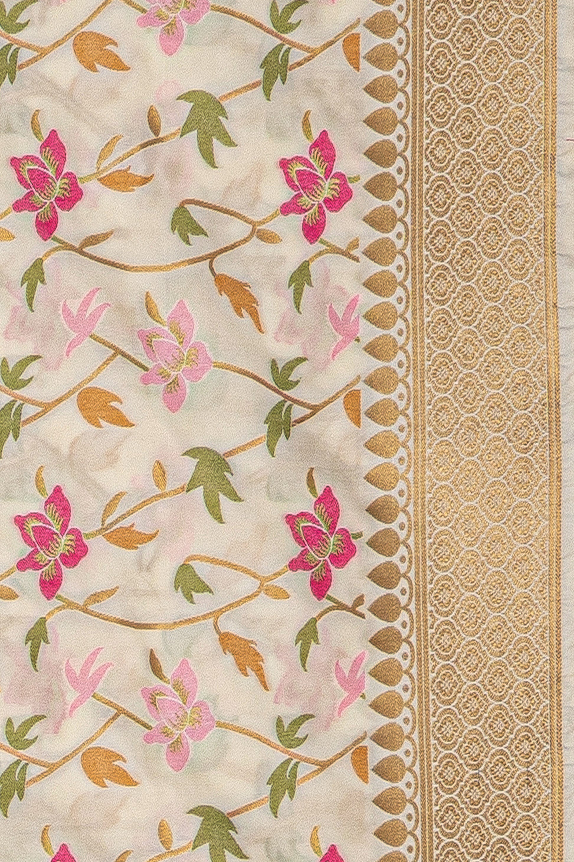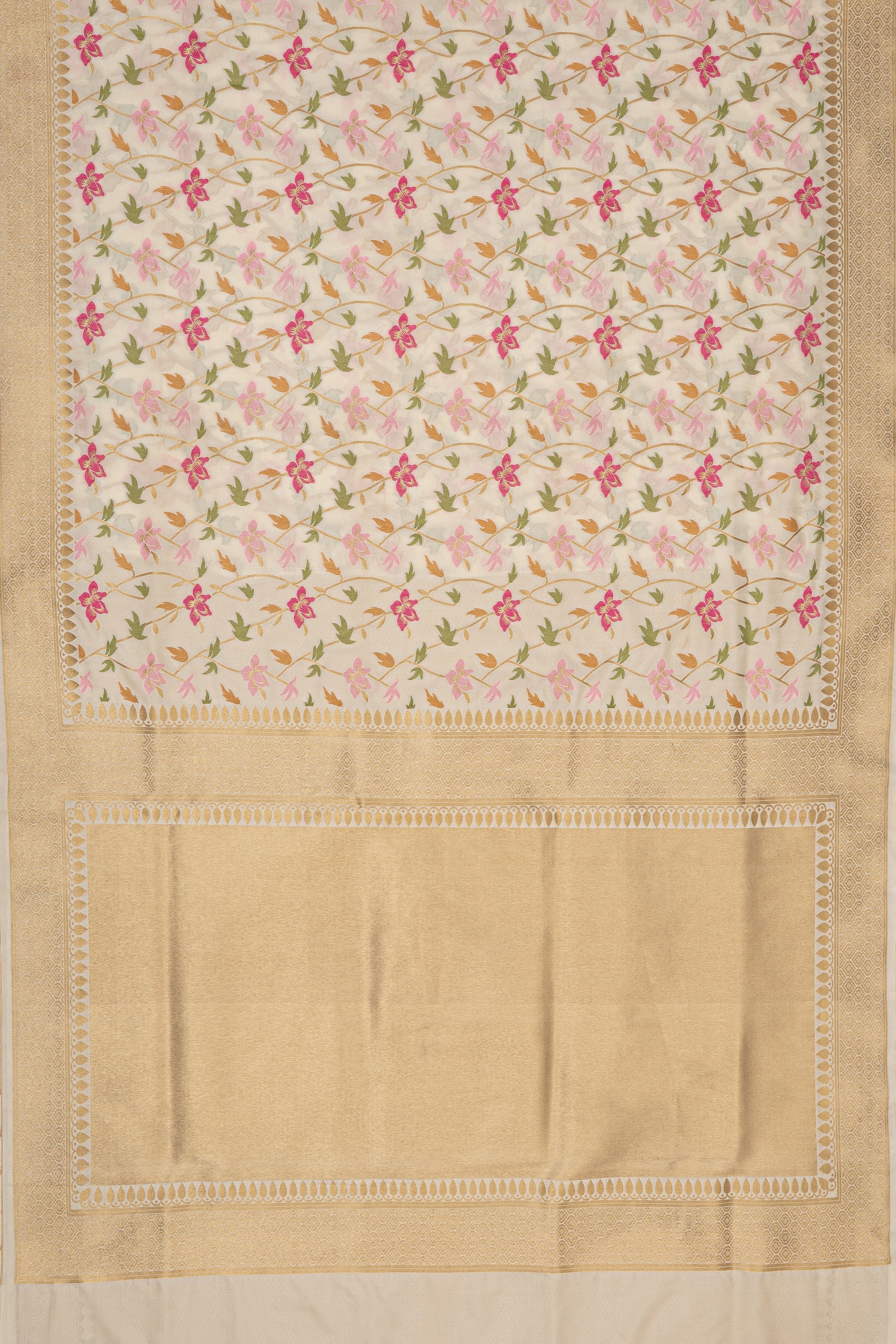 Cream Katan Silk Banarasi Saree with Jaal pattern