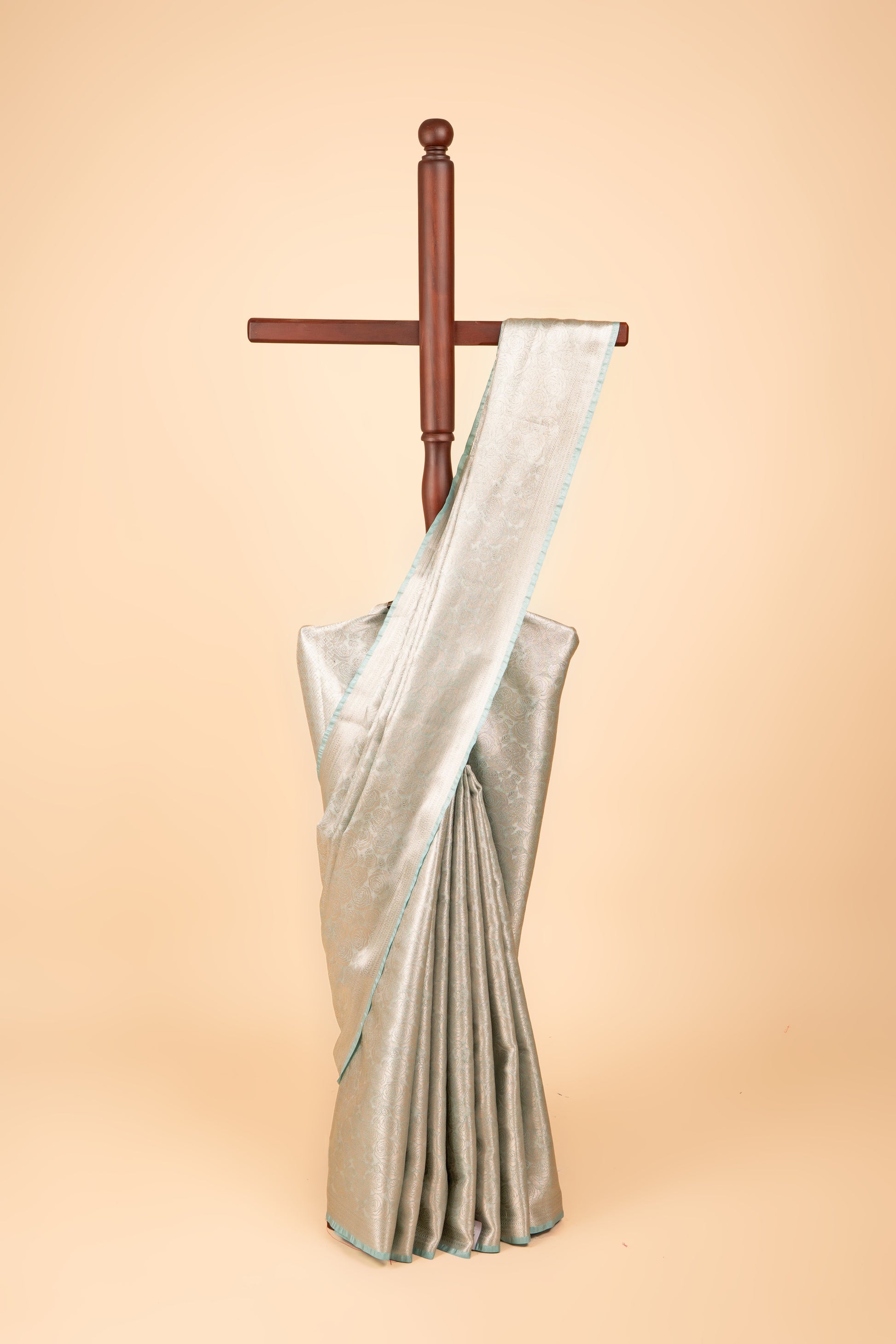 An heirloom-worthy Pastel Blue Brocade woven in Art Silk - Tissue Silk. its drape feels light and composed while the finish looks impeccably polished. Perfect for party, festive and puja, weddings and special gatherings. Pair it with traditional jewellery to complete the look.