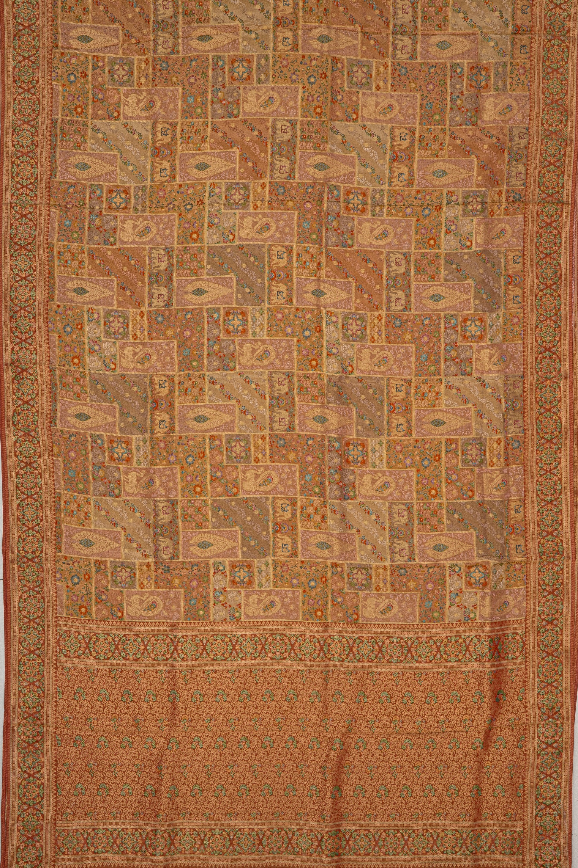 A timeless Orange and Pink Hastakala Exclusive with the rich hand of Art Silk - Dola Silk. a gentle sheen and even fall make it instantly camera-ready. A graceful pick for party, festive and puja and family celebrations. A matching blouse creates a cohesive, refined ensemble.