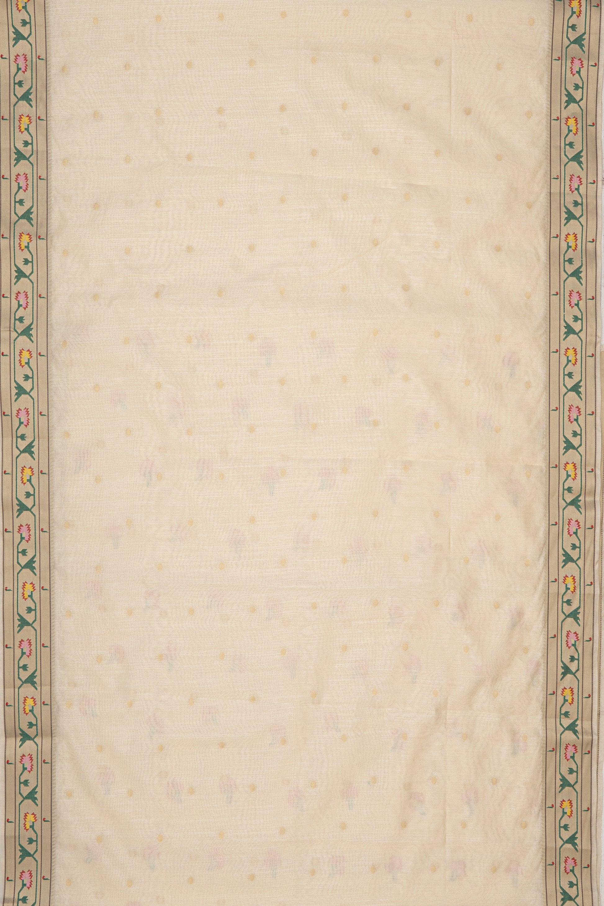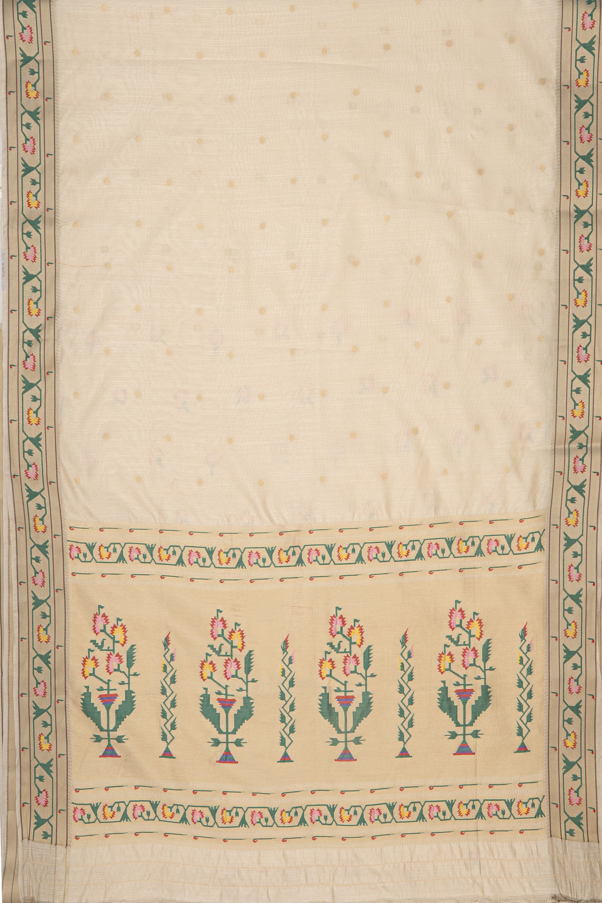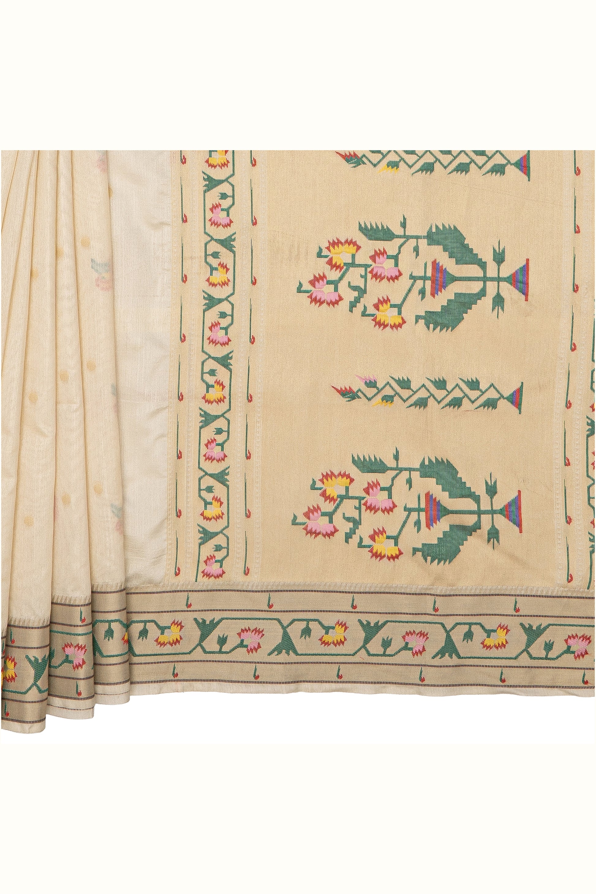 Cream Tussar Silk Paithani Saree with Asawali Border