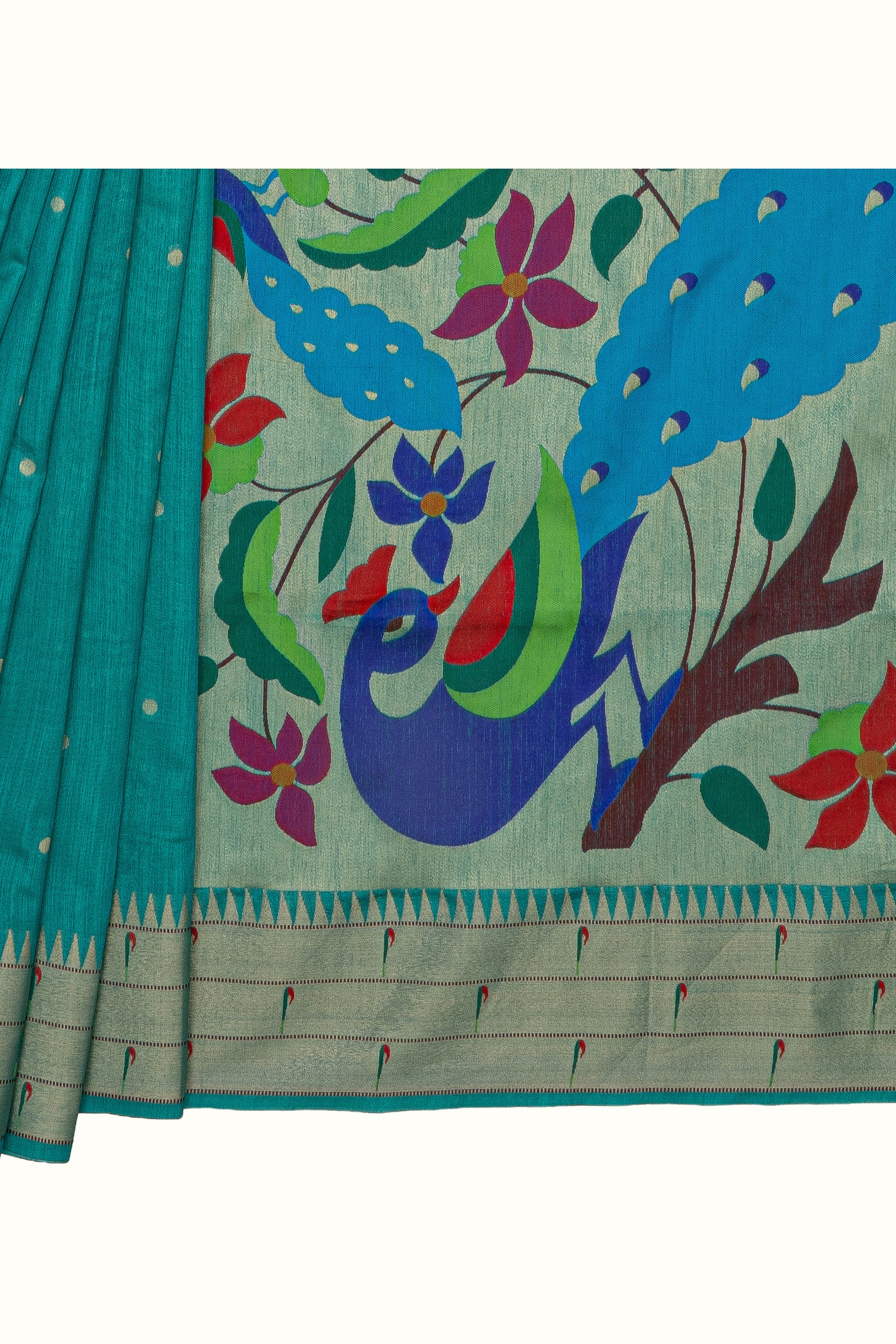 Sea Green Tussar Silk Paithani Saree with Triple Munya border