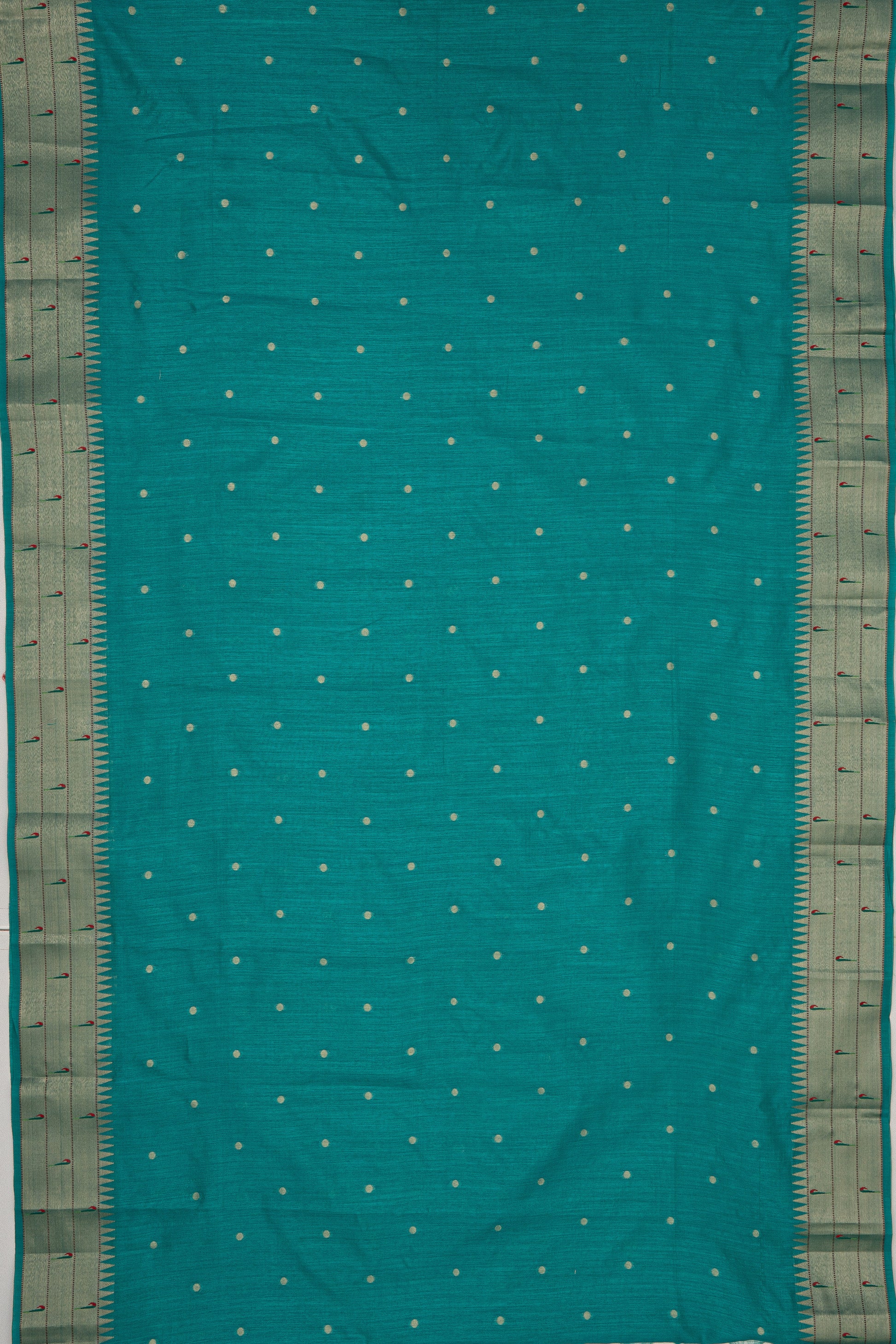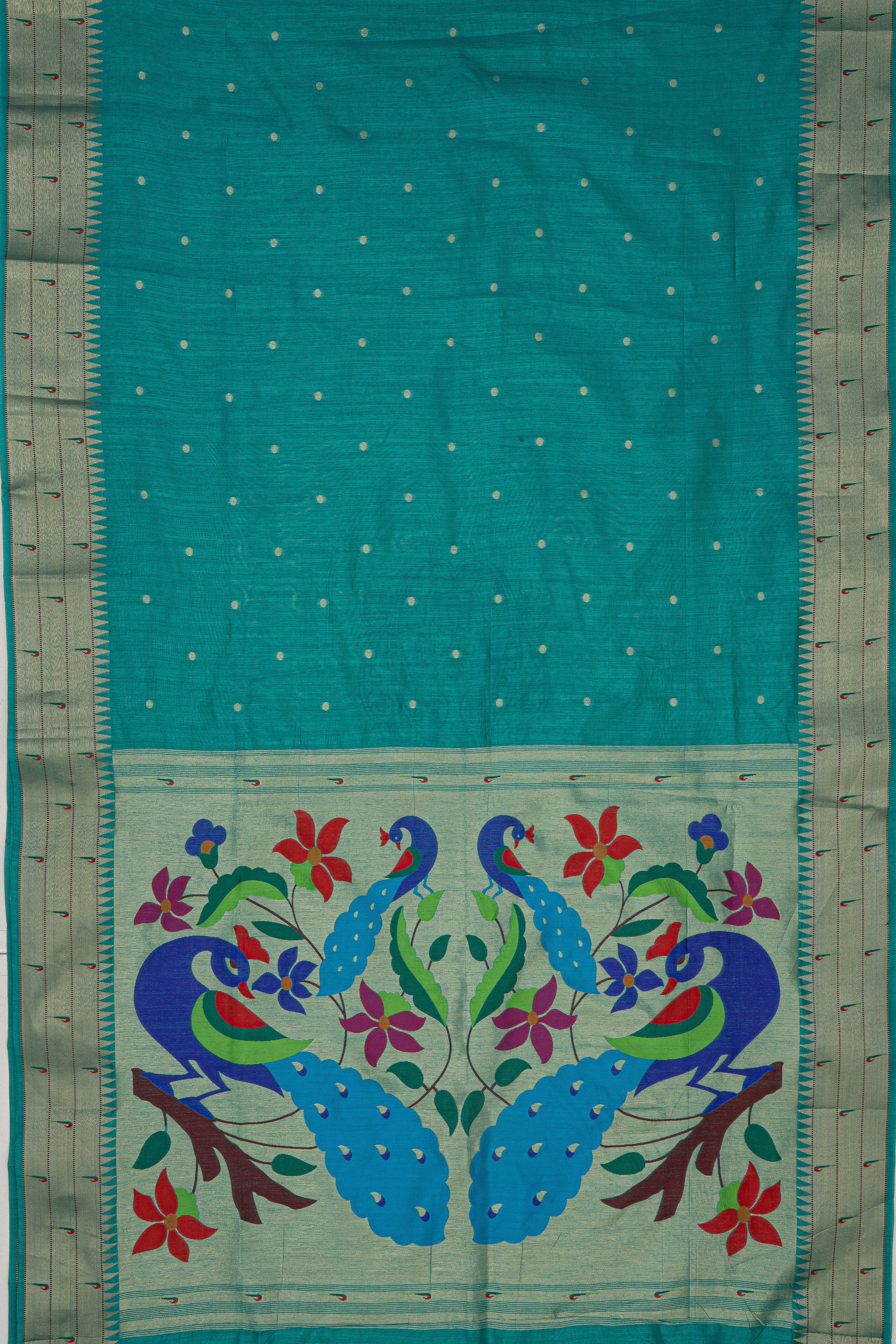 An heirloom-worthy Sea Green Paithani woven in Semi Silk - Tussar Silk. its drape feels light and composed while the finish looks impeccably polished. Perfect for party, festive and puja, weddings and special gatherings. Pair it with traditional jewellery to complete the look.