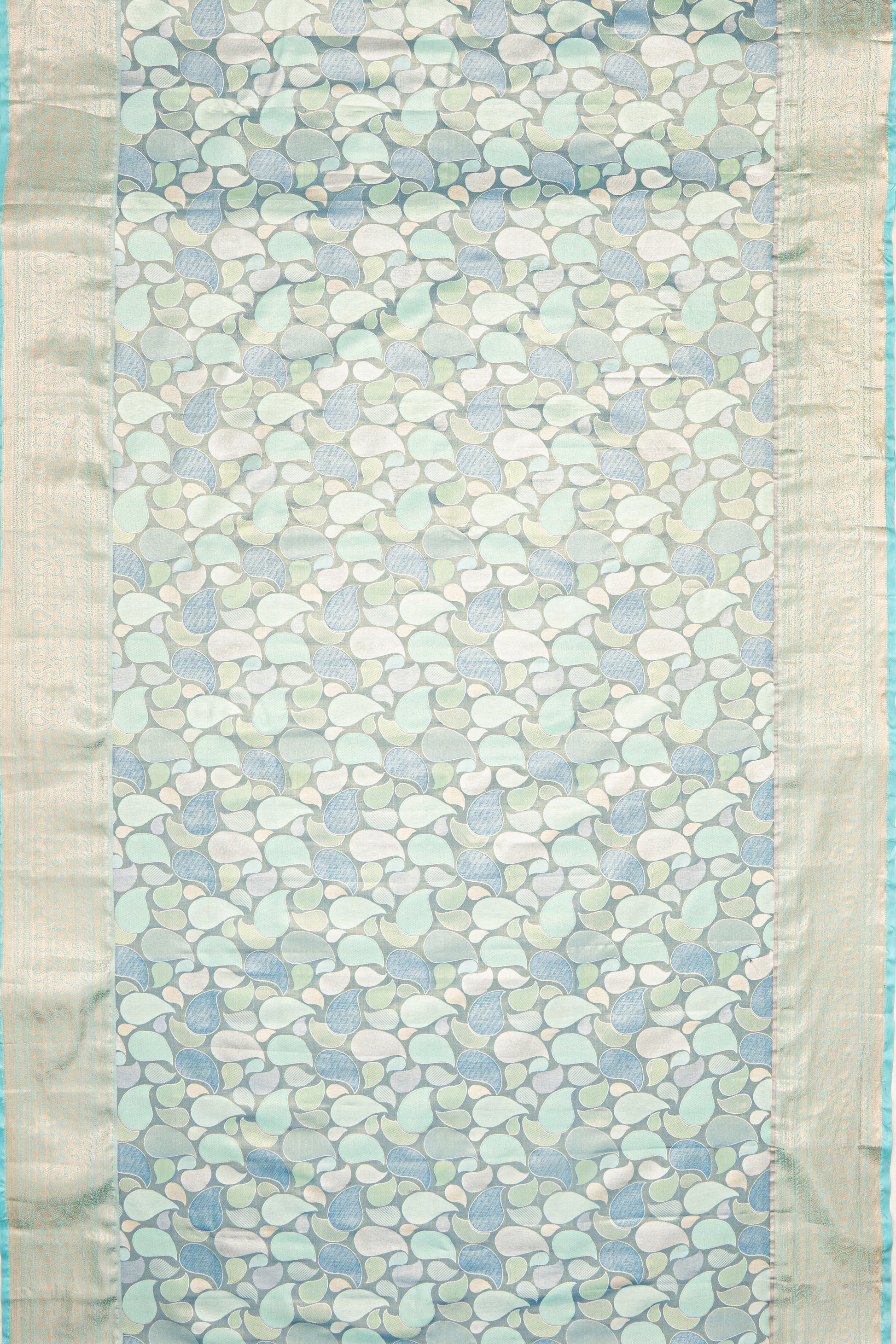 Blue Tissue Silk Brocade Saree with Geometric Pattern