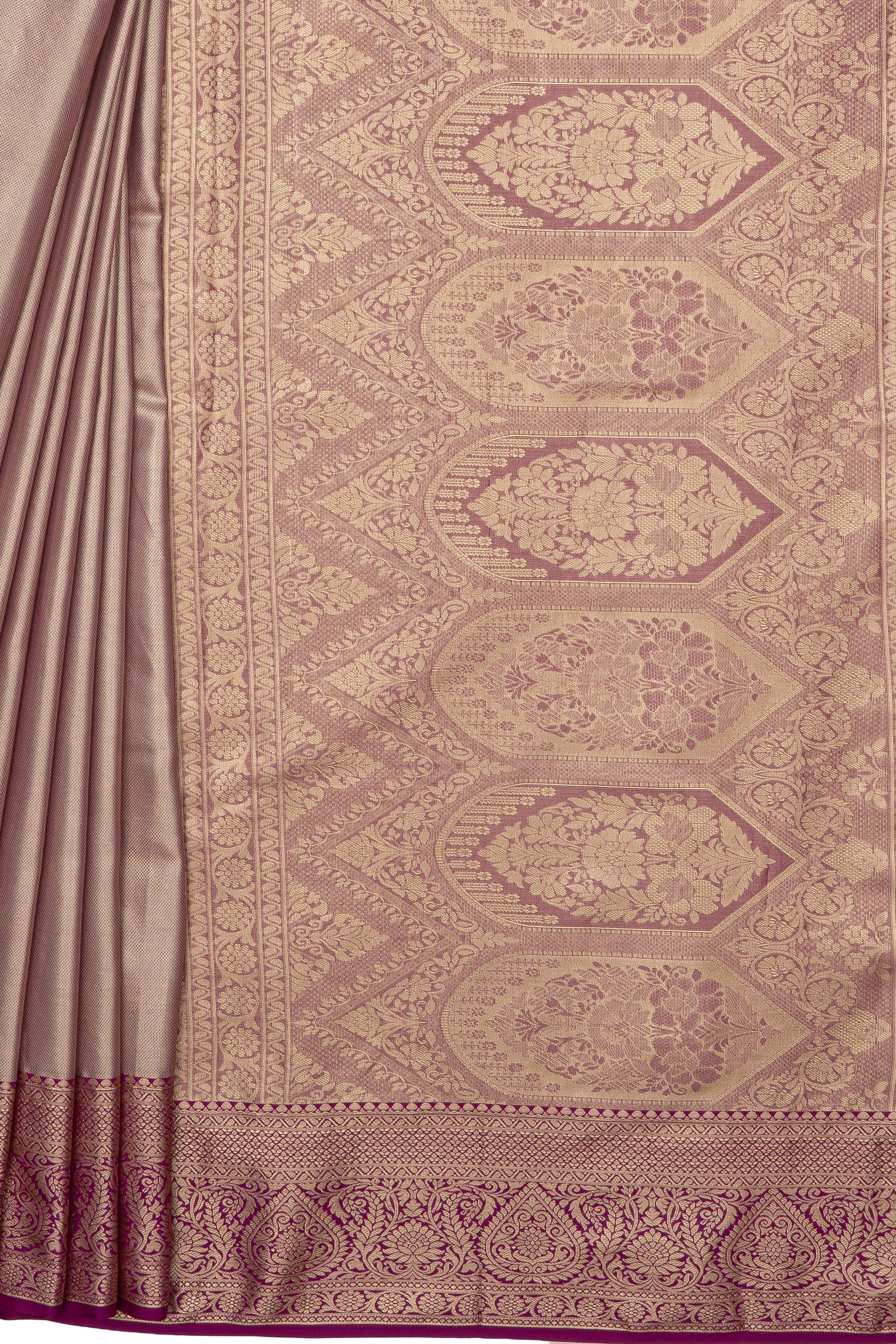 A refined Lavender Traditional crafted from premium Semi Silk - Tissue Silk. the lustrous weave and balanced structure deliver modern sophistication. Thoughtfully made for party, festive and puja and day-to-evening dressing. A sleek bun and bold bindi bring out its heritage appeal.