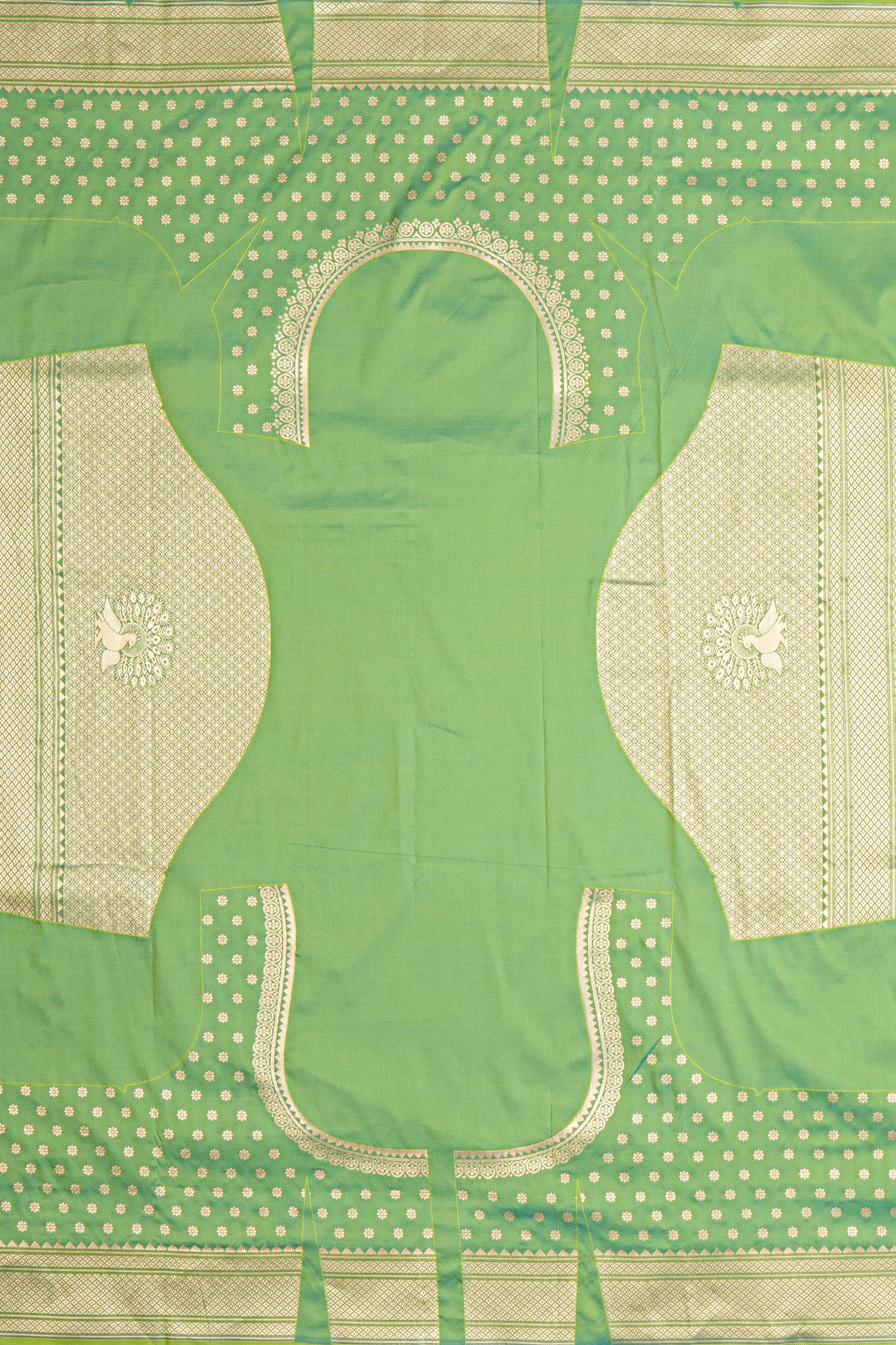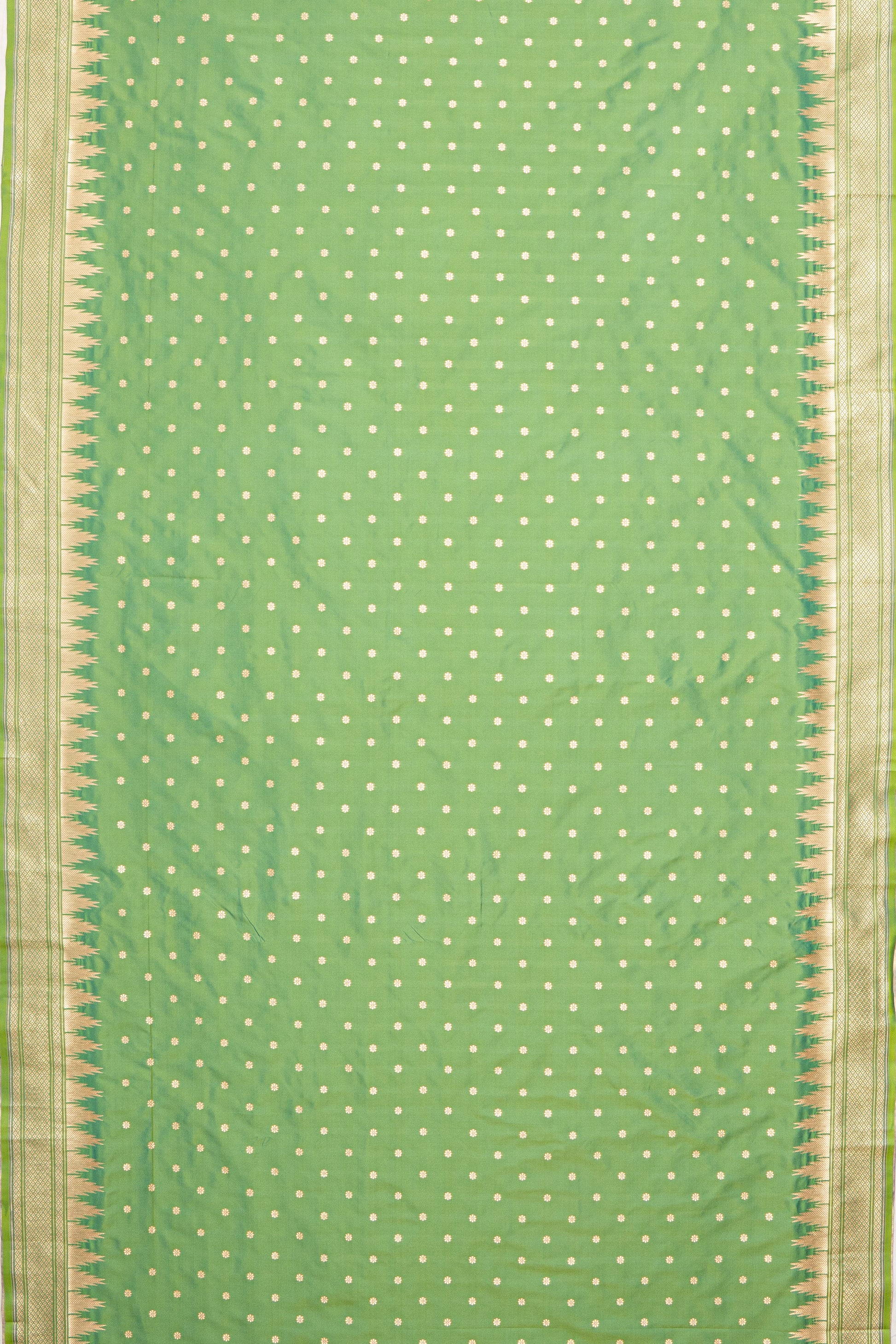 Designed for the spotlight, this Green Paithani is fashioned in Semi Silk - Katan Silk. delicate detailing lends quiet luxury and a poised presence. A versatile choice for party, festive and puja and joyous occasions. Understated diamond pieces amplify its modern elegance.