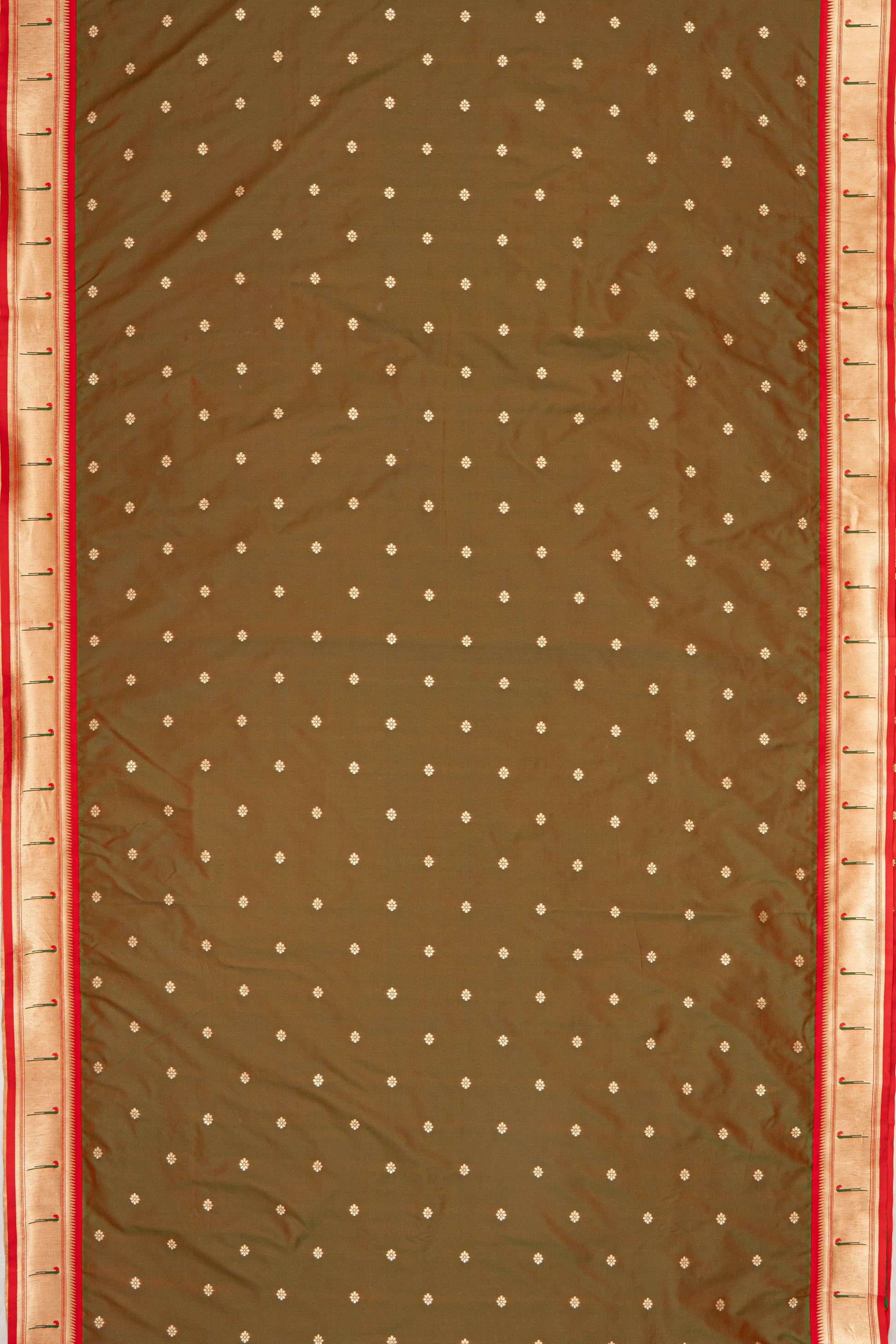 Elegance meets tradition in this Mehndi Paithani rendered in Semi Silk - Katan Silk. the fabric’s natural sheen and soft movement add effortless grace. A modern classic for party, festive and puja and elegant soirées. Contrast accessories can heighten its festive charm.