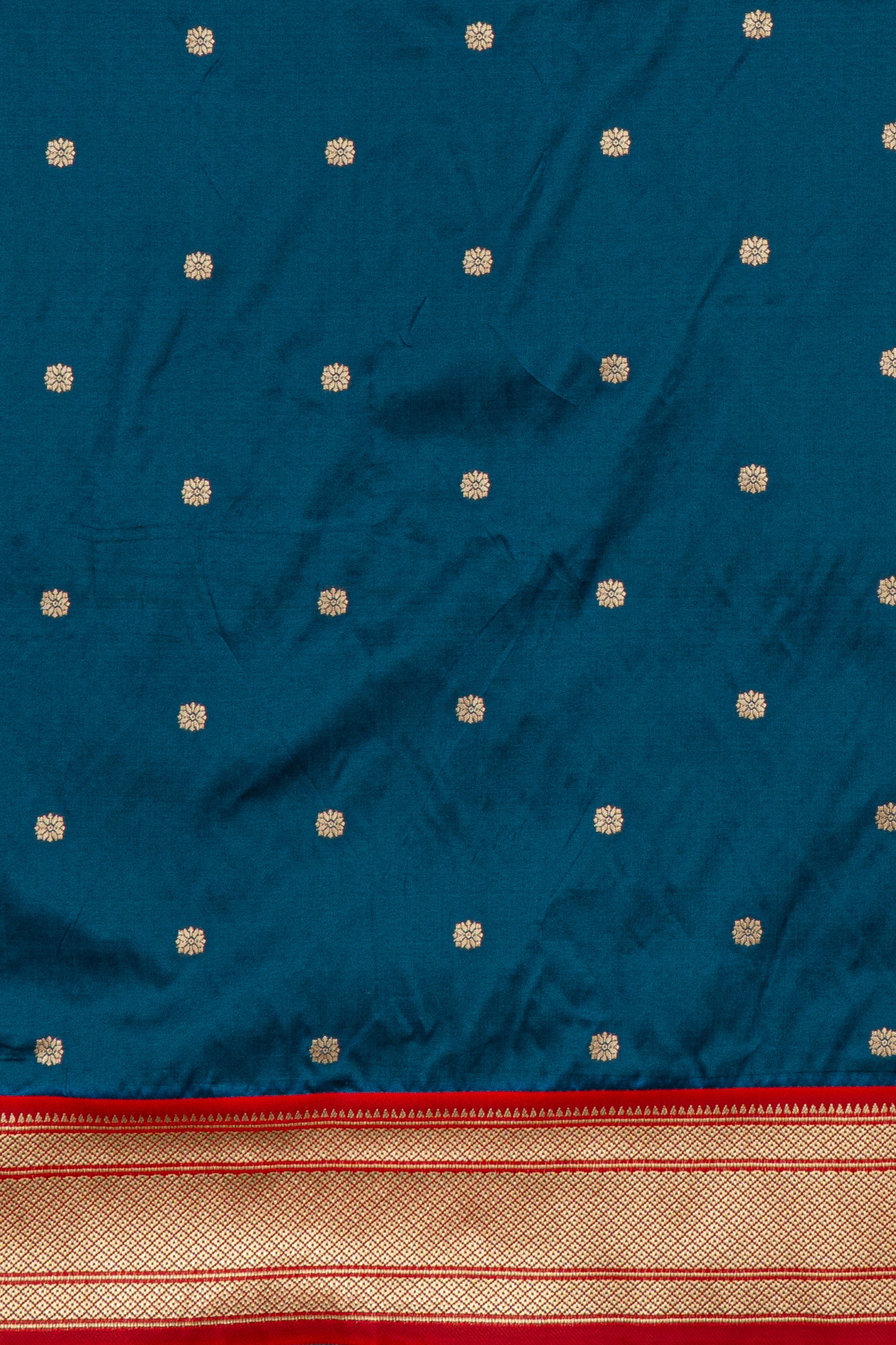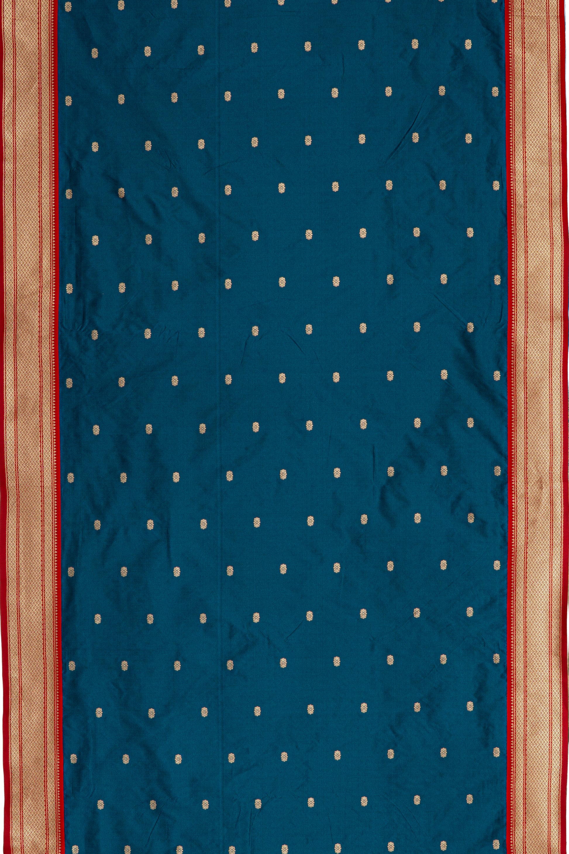 A refined Blue Paithani crafted from premium Semi Silk - Apurva Silk. the lustrous weave and balanced structure deliver modern sophistication. Thoughtfully made for party, festive and puja and day-to-evening dressing. A sleek bun and bold bindi bring out its heritage appeal.