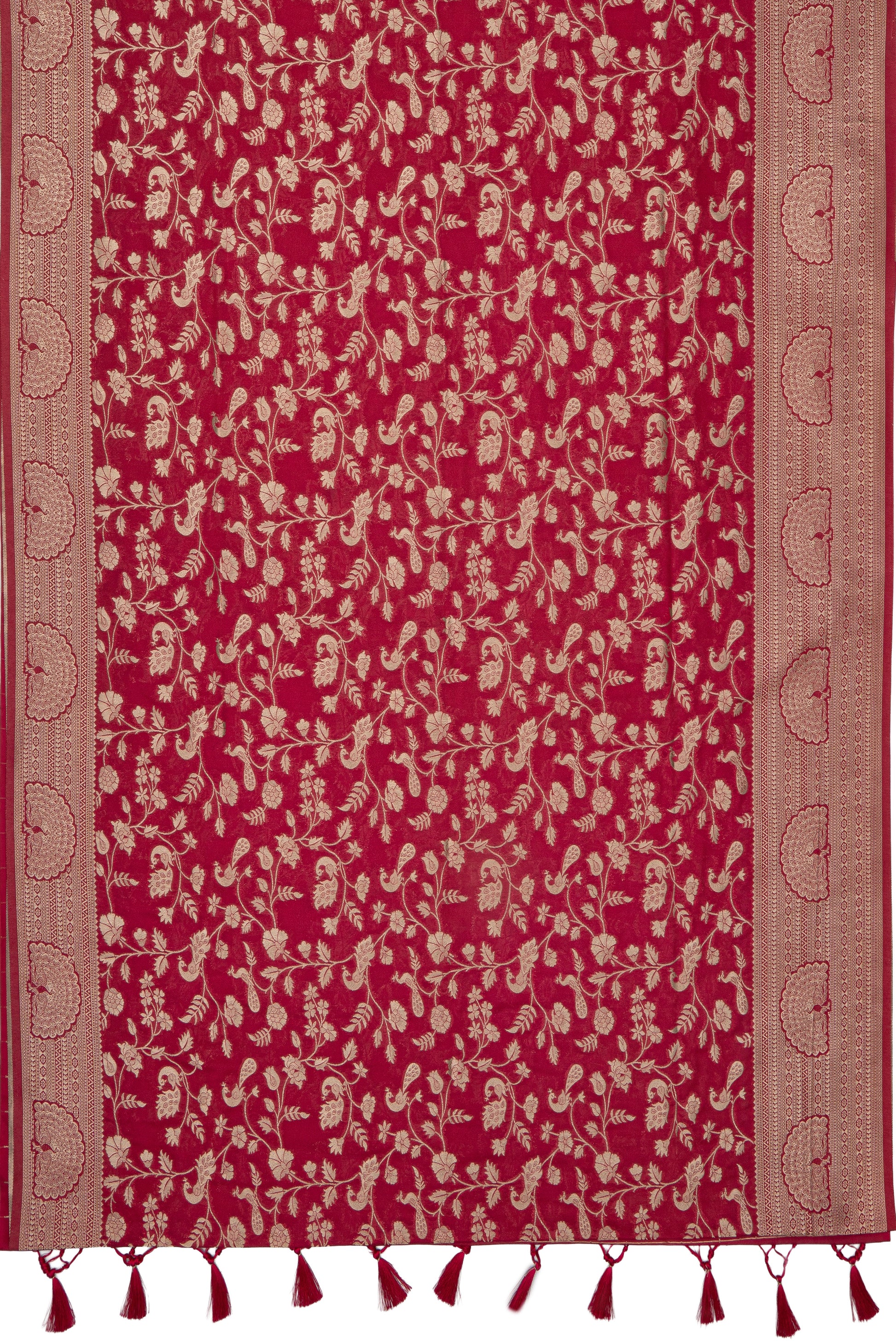 Elegance meets tradition in this Rani Pink Banarasi rendered in Semi Silk - Katan Silk. the fabric’s natural sheen and soft movement add effortless grace. A modern classic for party, festive and puja and elegant soirées. Contrast accessories can heighten its festive charm.