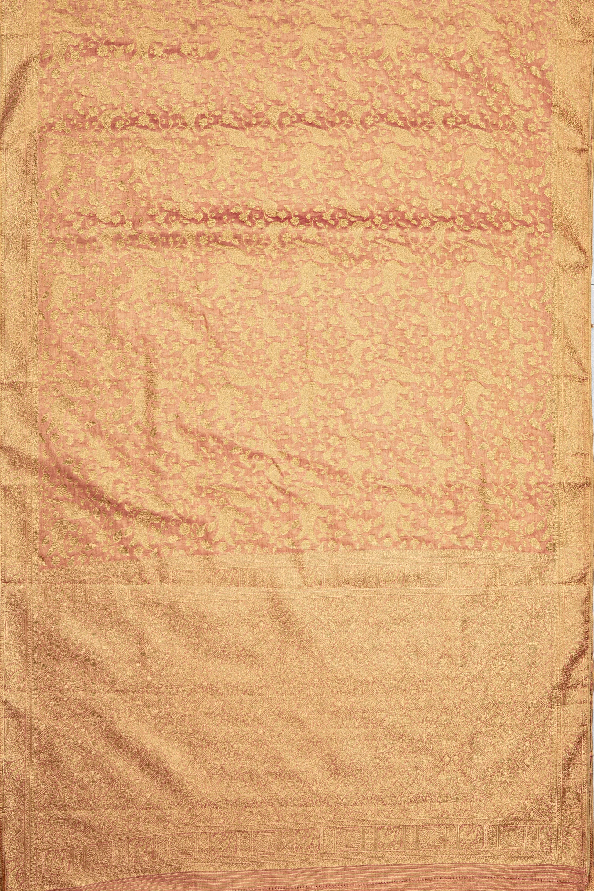 An heirloom-worthy Rose Gold Hastakala Exclusive woven in Semi Silk - Tissue Silk. its drape feels light and composed while the finish looks impeccably polished. Perfect for party, festive and puja, weddings and special gatherings. Pair it with traditional jewellery to complete the look.