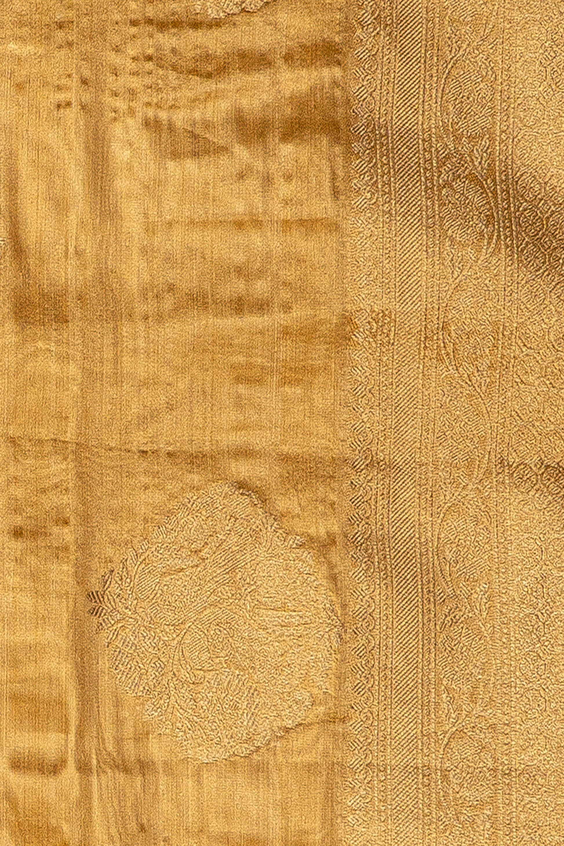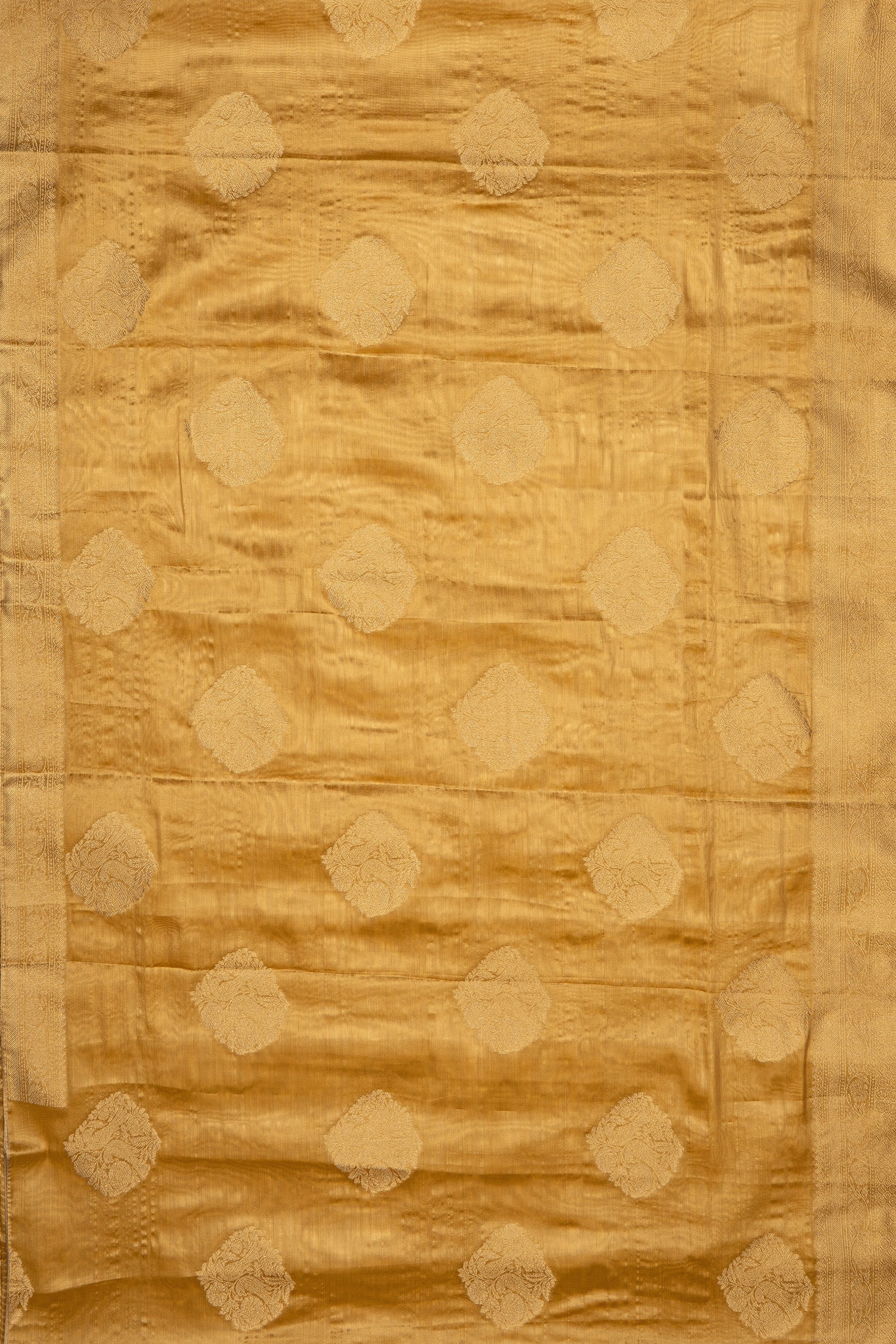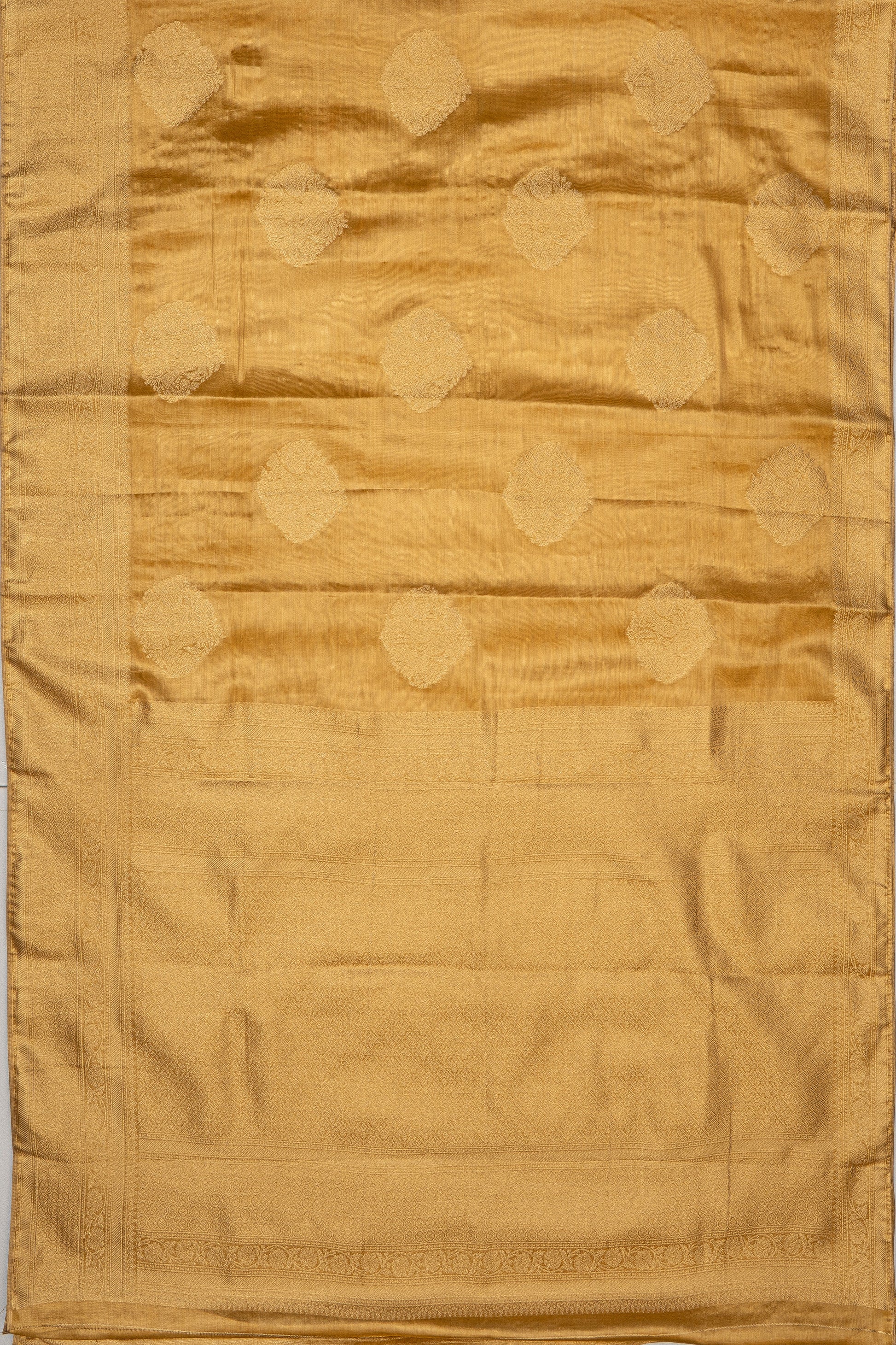 Designed for the spotlight, this Gold Hastakala Exclusive is fashioned in Semi Silk - Tissue Silk. delicate detailing lends quiet luxury and a poised presence. A versatile choice for party, festive and puja and joyous occasions. Understated diamond pieces amplify its modern elegance.