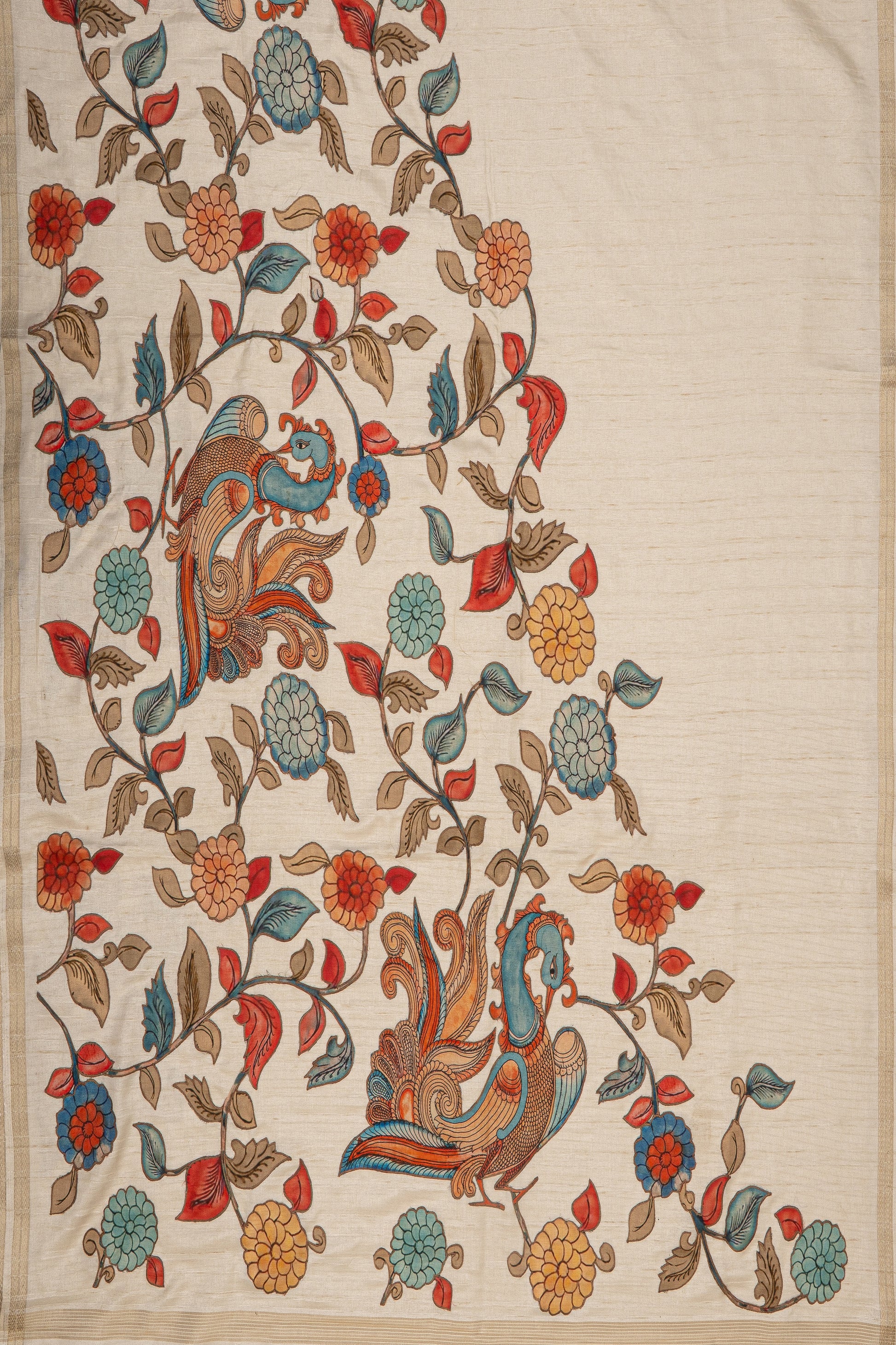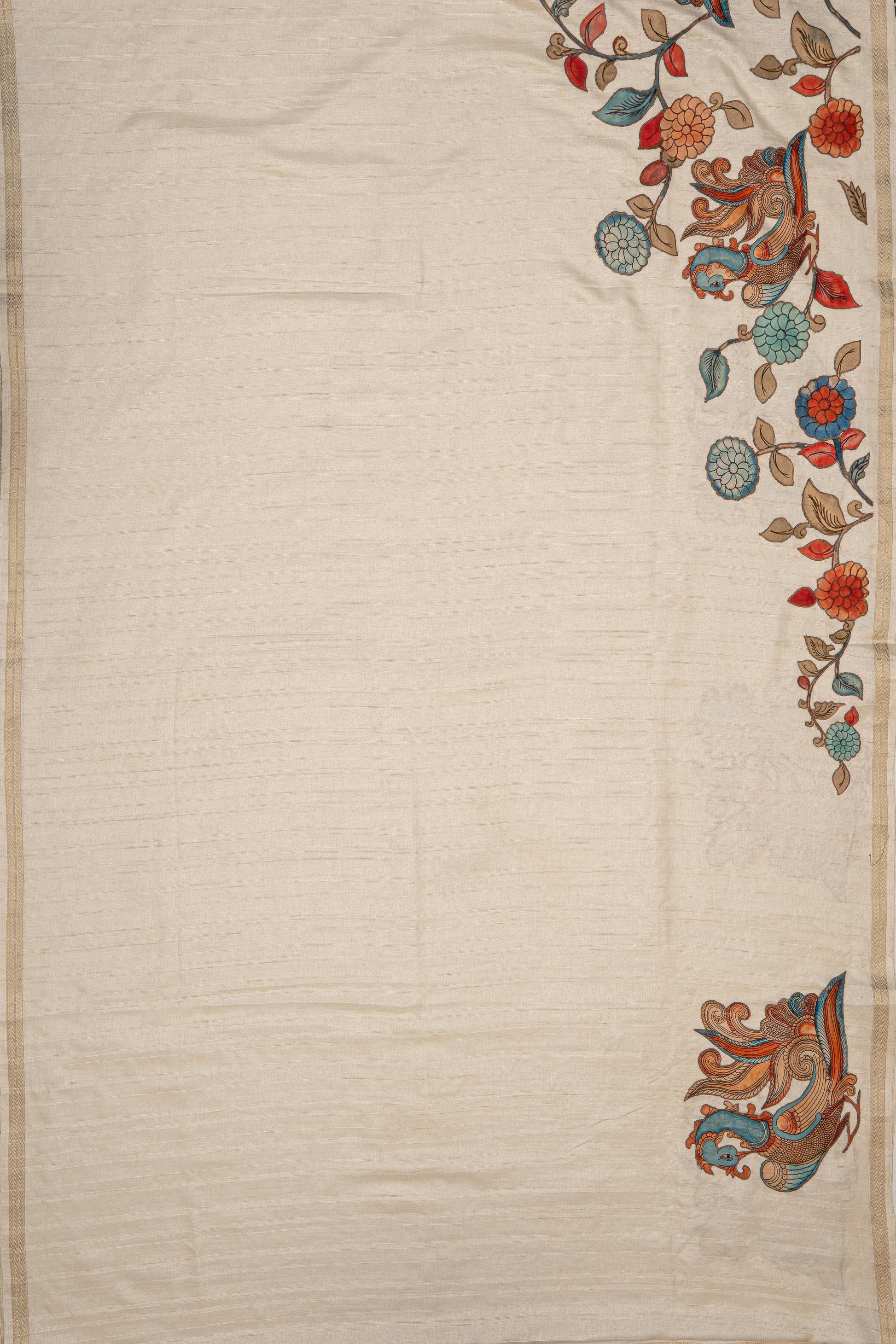 Cream Jute Silk Saree with Peacock Jaal Patchwork