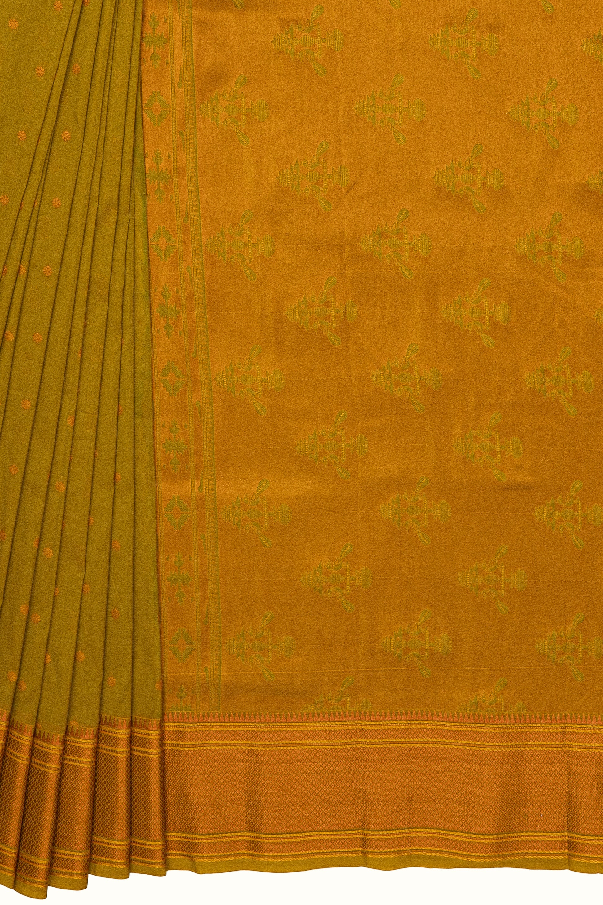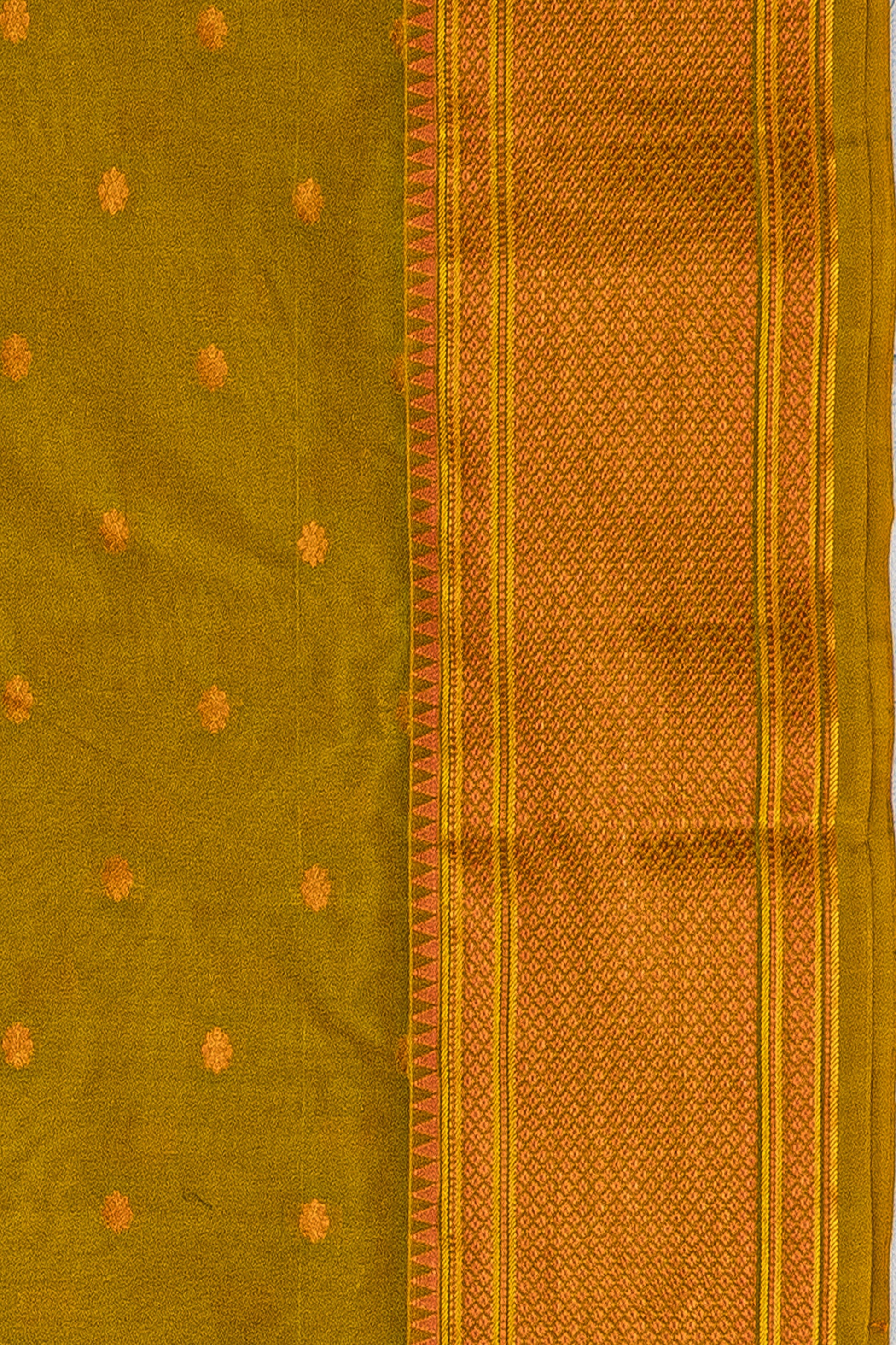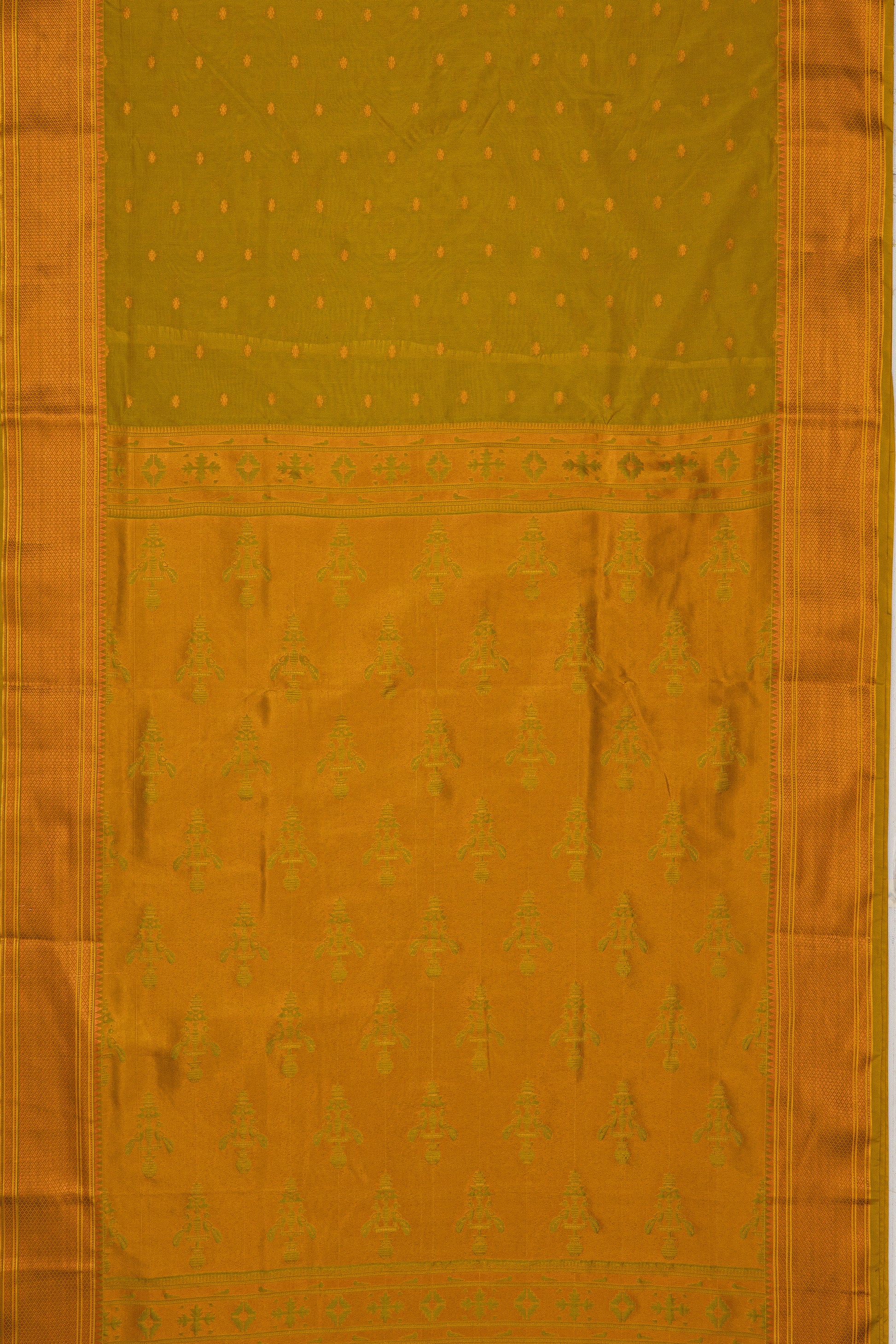 A timeless Lime Green Paithani with the rich hand of Semi Silk - Apurva Silk. a gentle sheen and even fall make it instantly camera-ready. A graceful pick for festive and puja and family celebrations. A matching blouse creates a cohesive, refined ensemble.