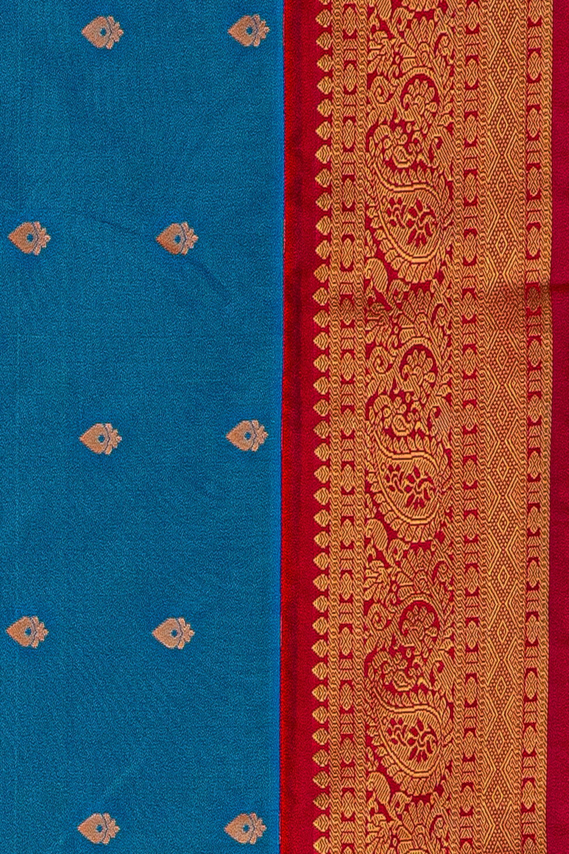 This Blue Paithani celebrates fine craftsmanship in Semi Silk - Apurva Silk. crafted to contour beautifully, it moves with ease through long celebrations. Ideal for festive and puja, receptions and festive evenings. Classic jhumkas and bangles add a timeless touch.