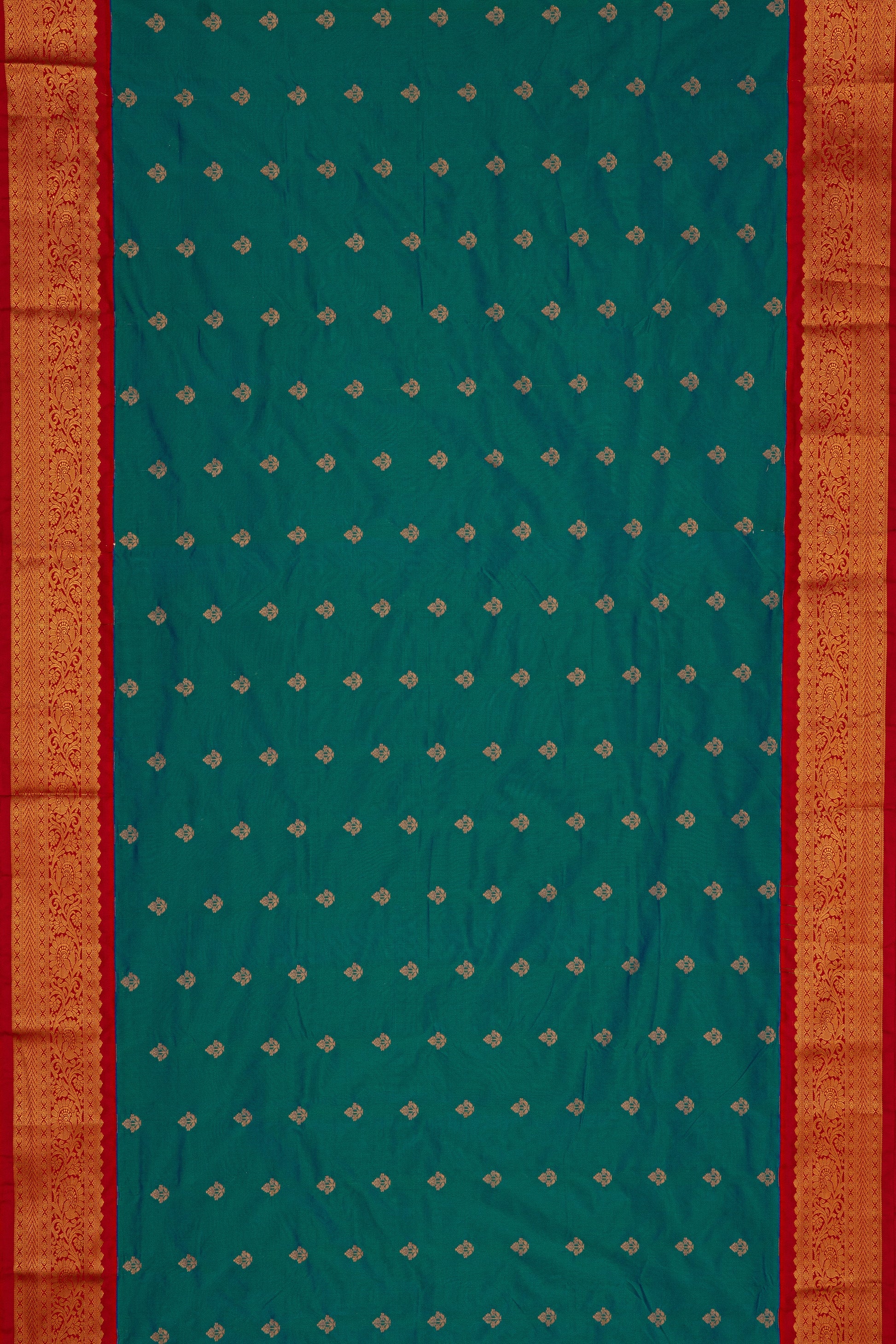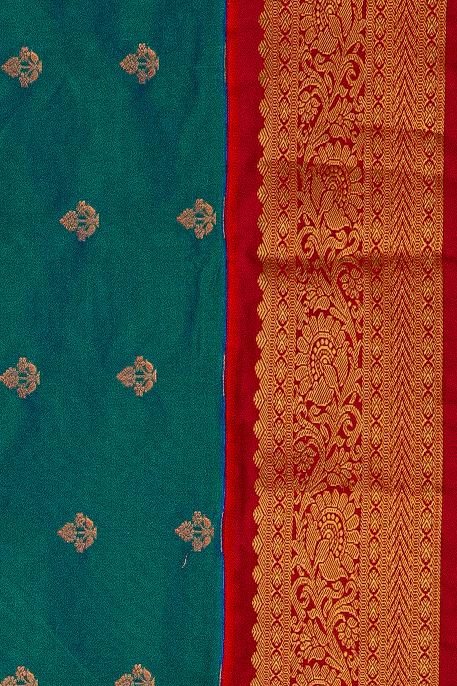 Peacock Blue Apurva Silk Paithani Saree with contrast Red border