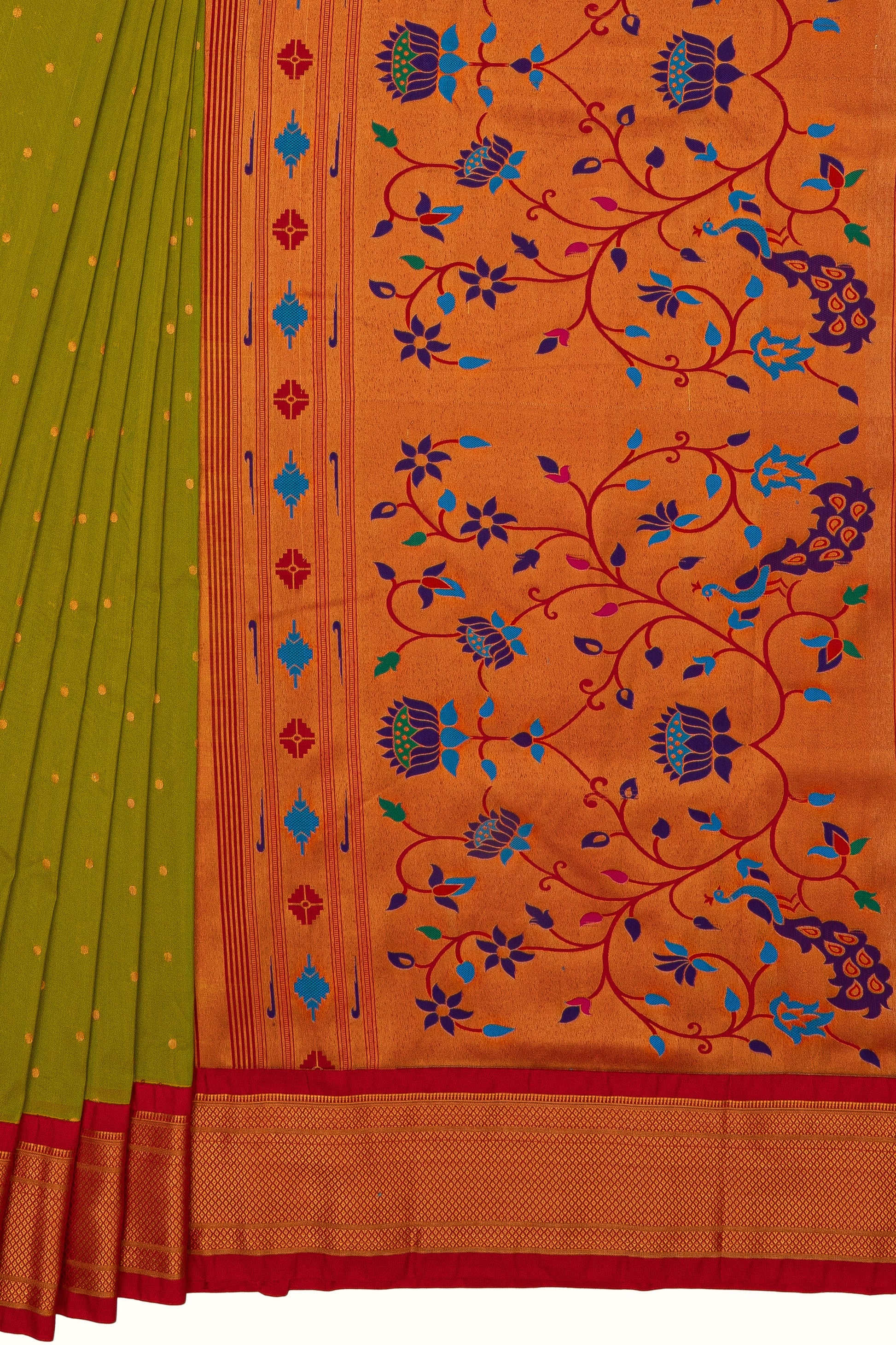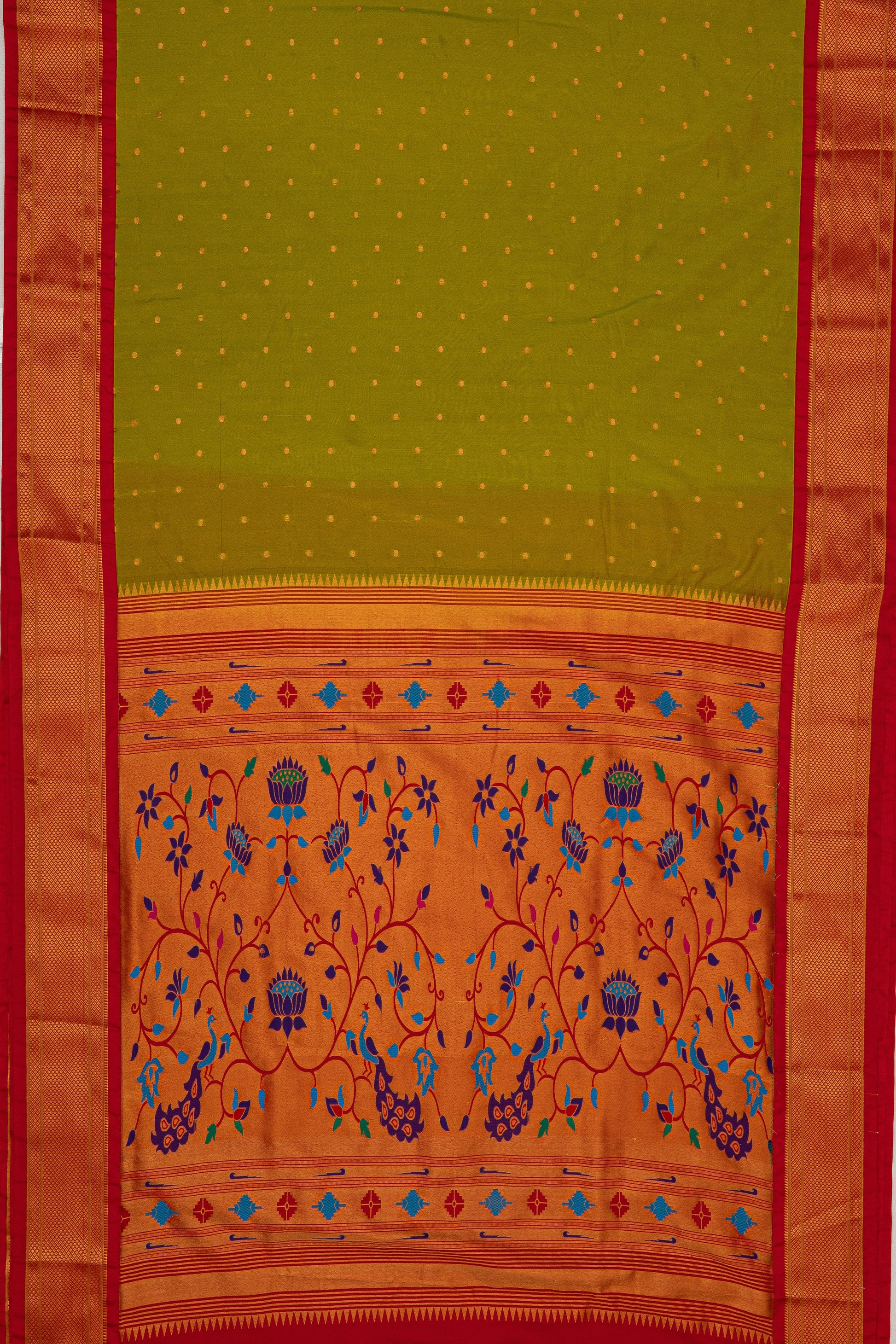 Lime Green Apurva Silk Paithani Saree with contrast Red border