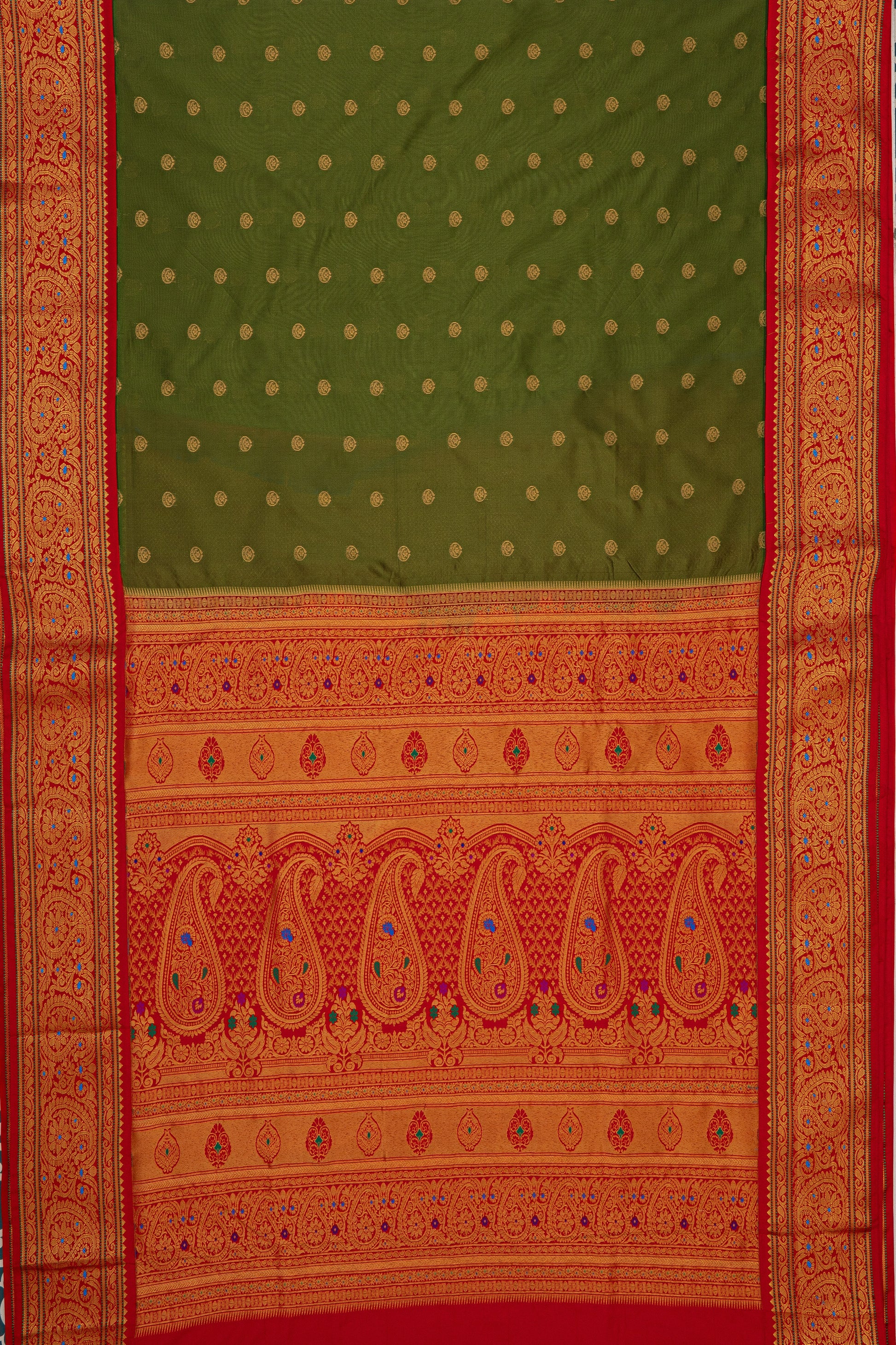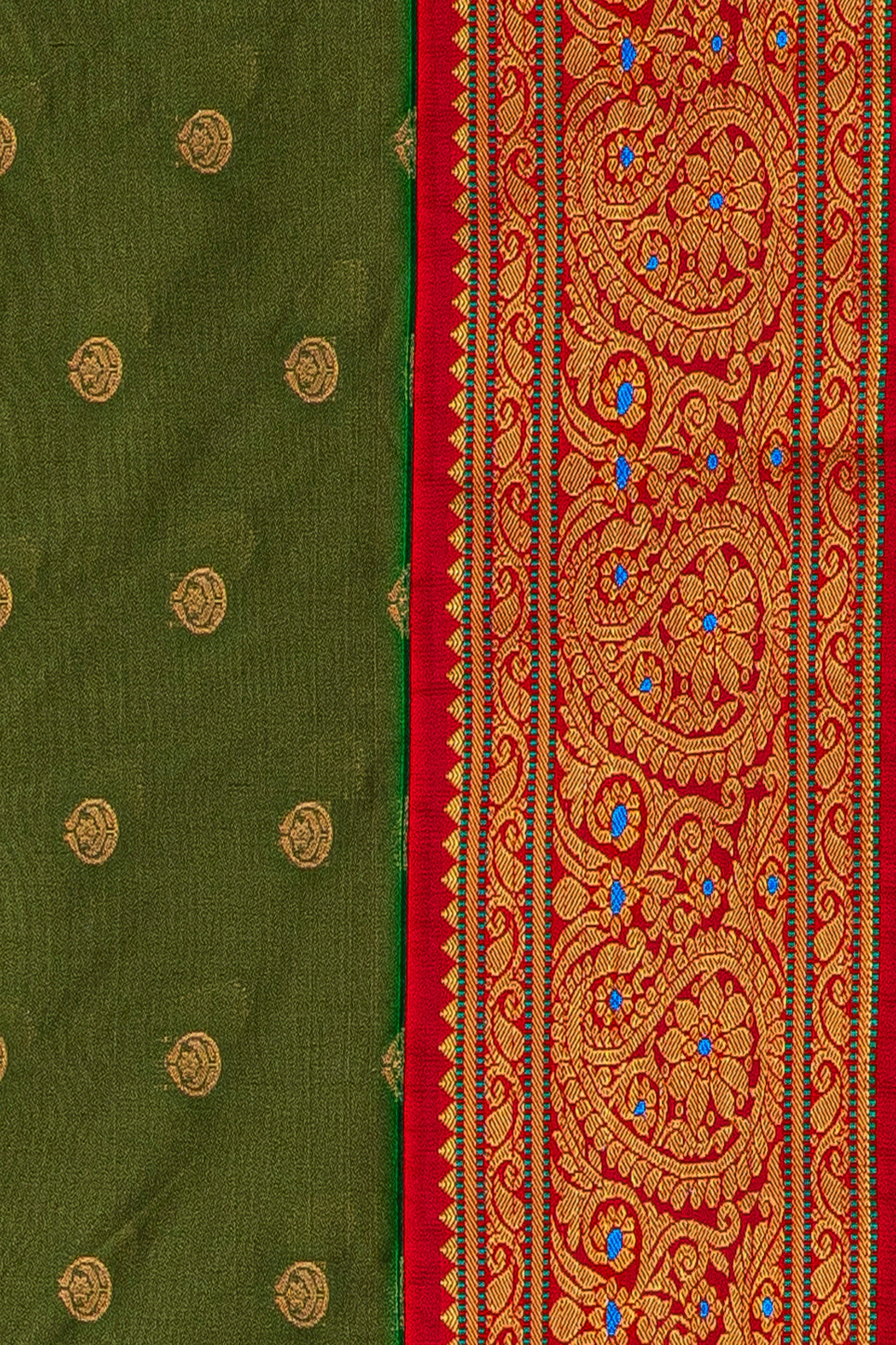 Mehndi Green Apurva Silk Paithani Saree with Red border