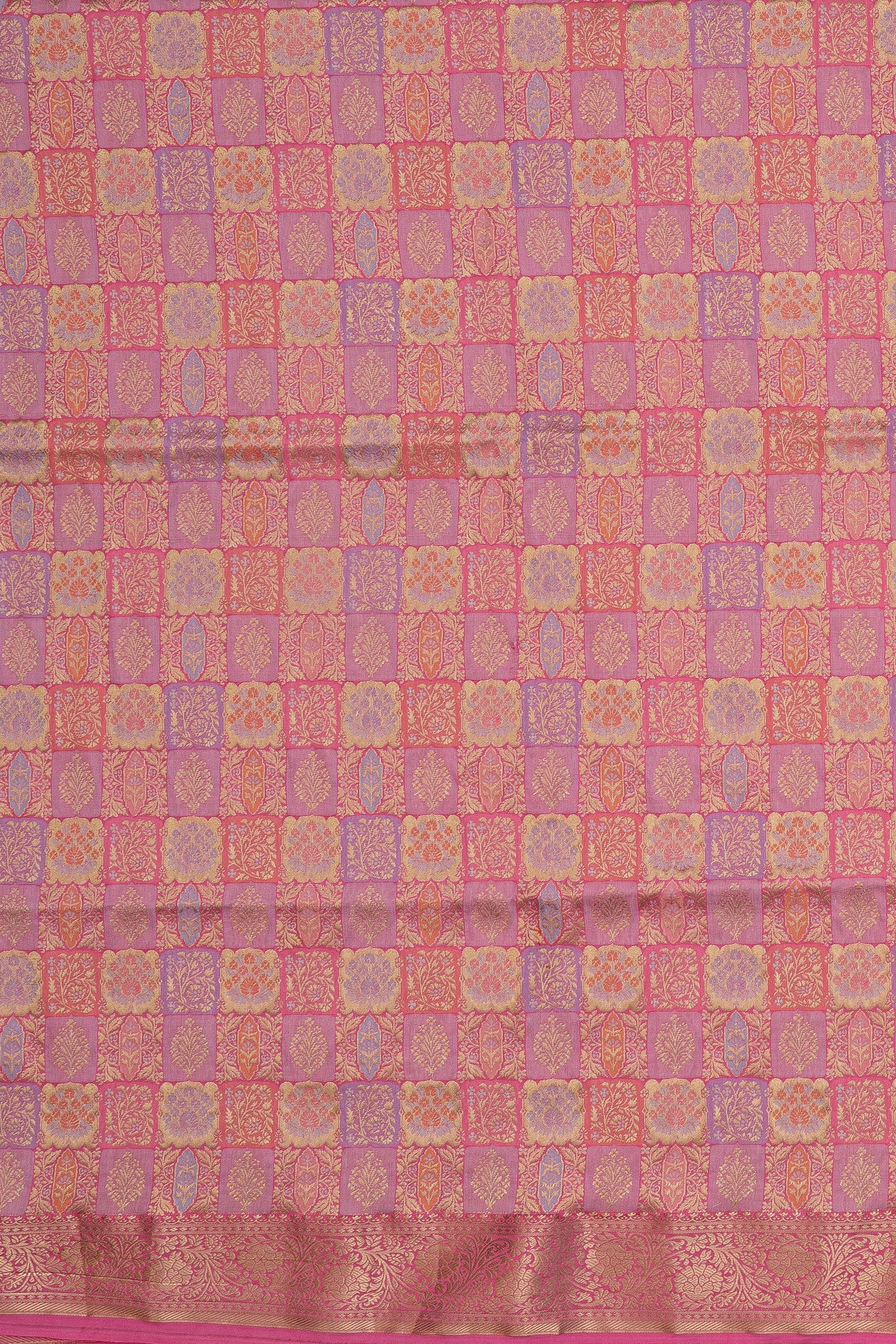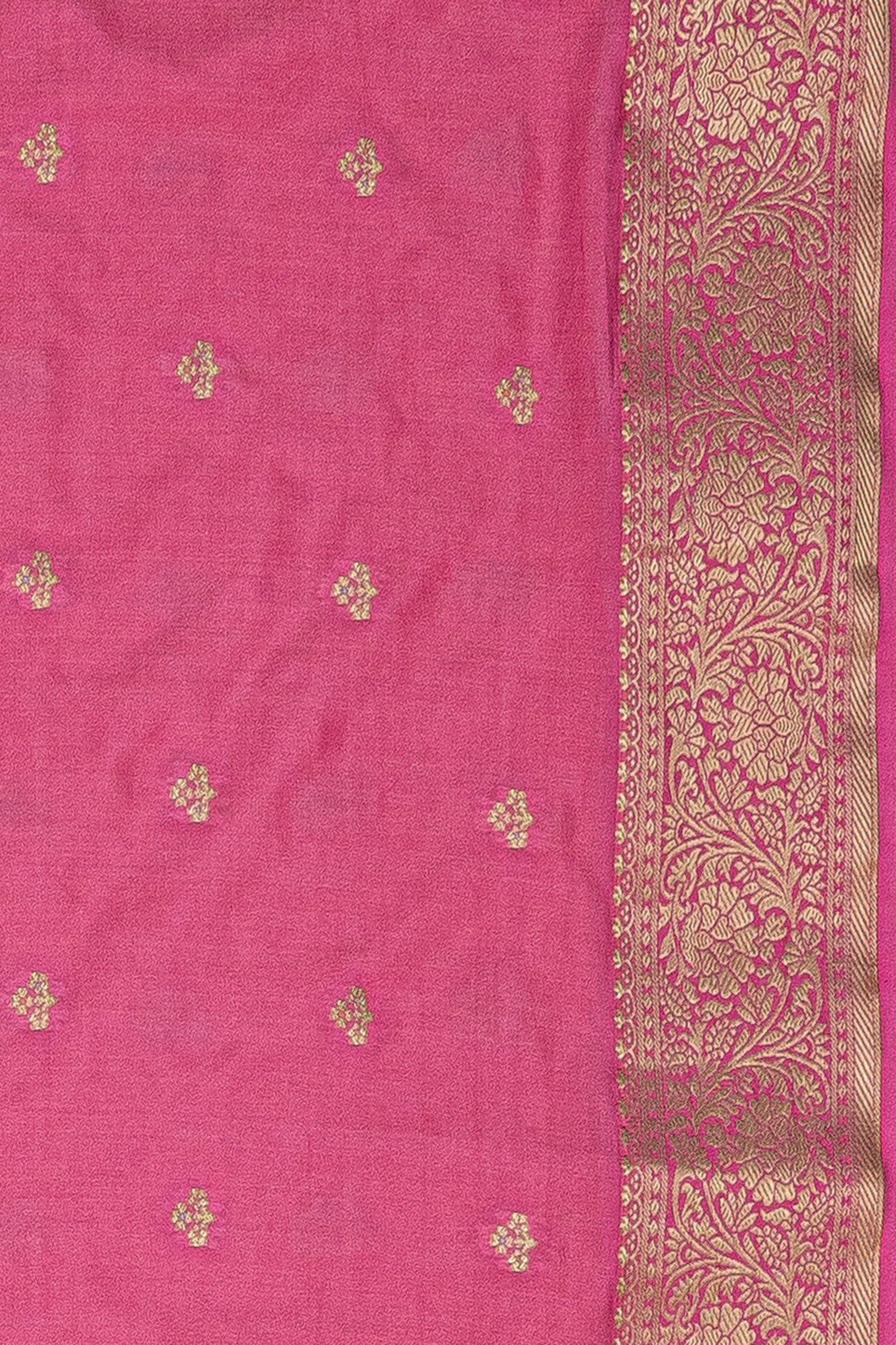This exquisite Pink Hastakala Exclusive saree is fashioned from luxurious Semi Silk - Katan Silk. Its radiant sheen and harmonious design embody contemporary elegance. Perfectly suited for festive celebrations and seamless transition from day to evening wear, it pairs gracefully with a sleek bun and striking bindi to enhance its traditional allure. Featuring gold zari detailing and a matching pink blouse.