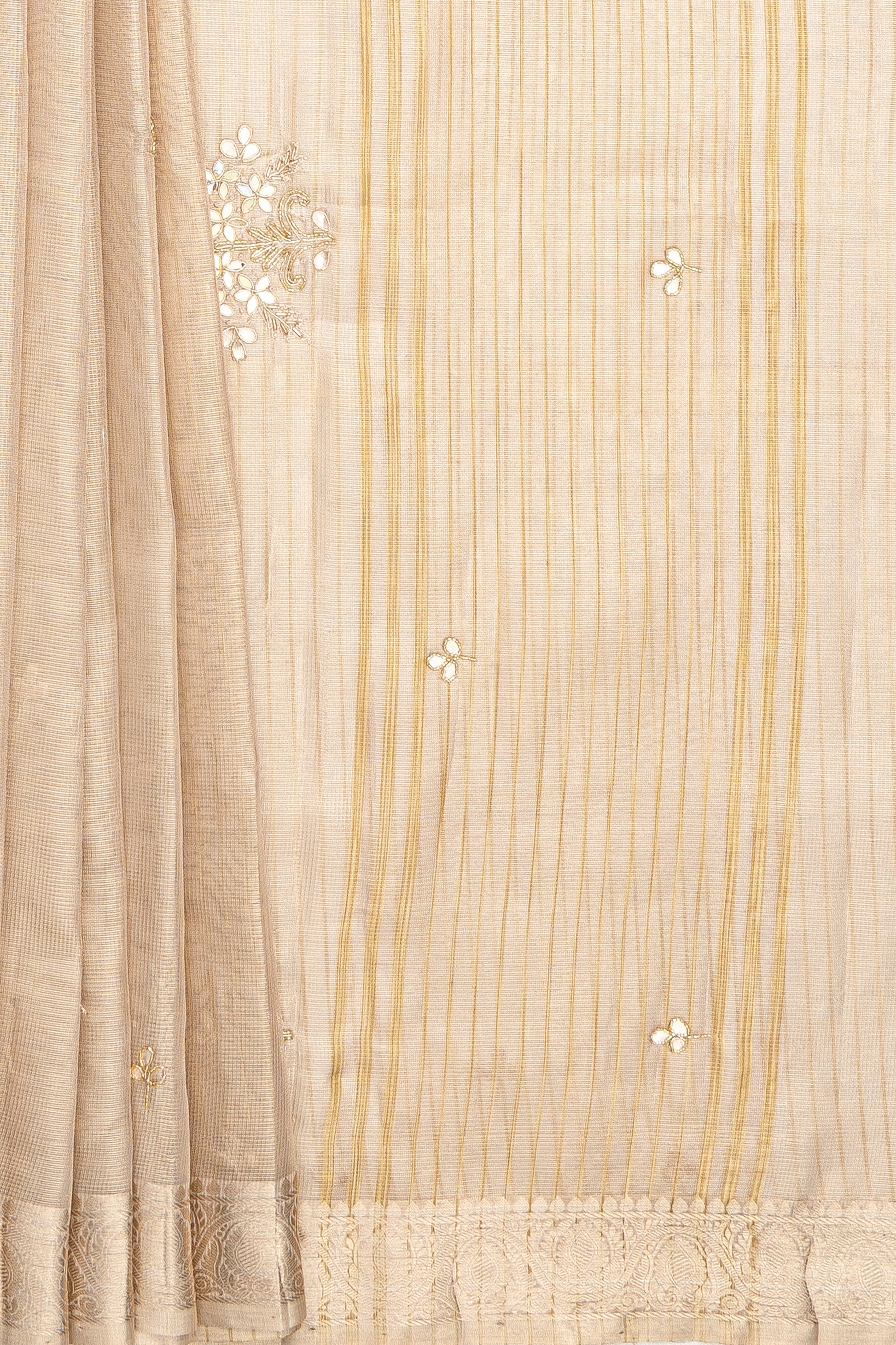 White Gold Tissue Silk Saree with Gota Patti Stonework