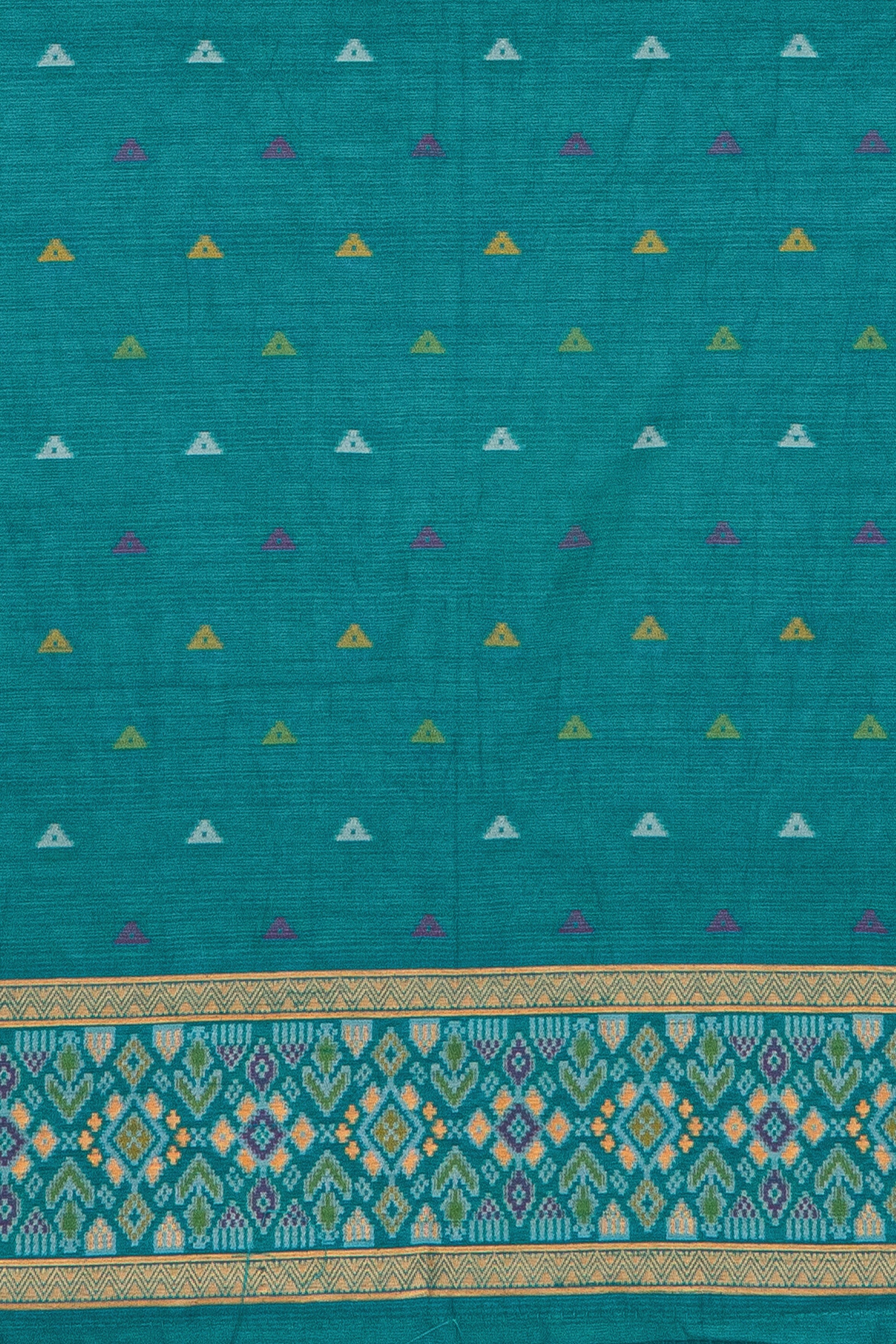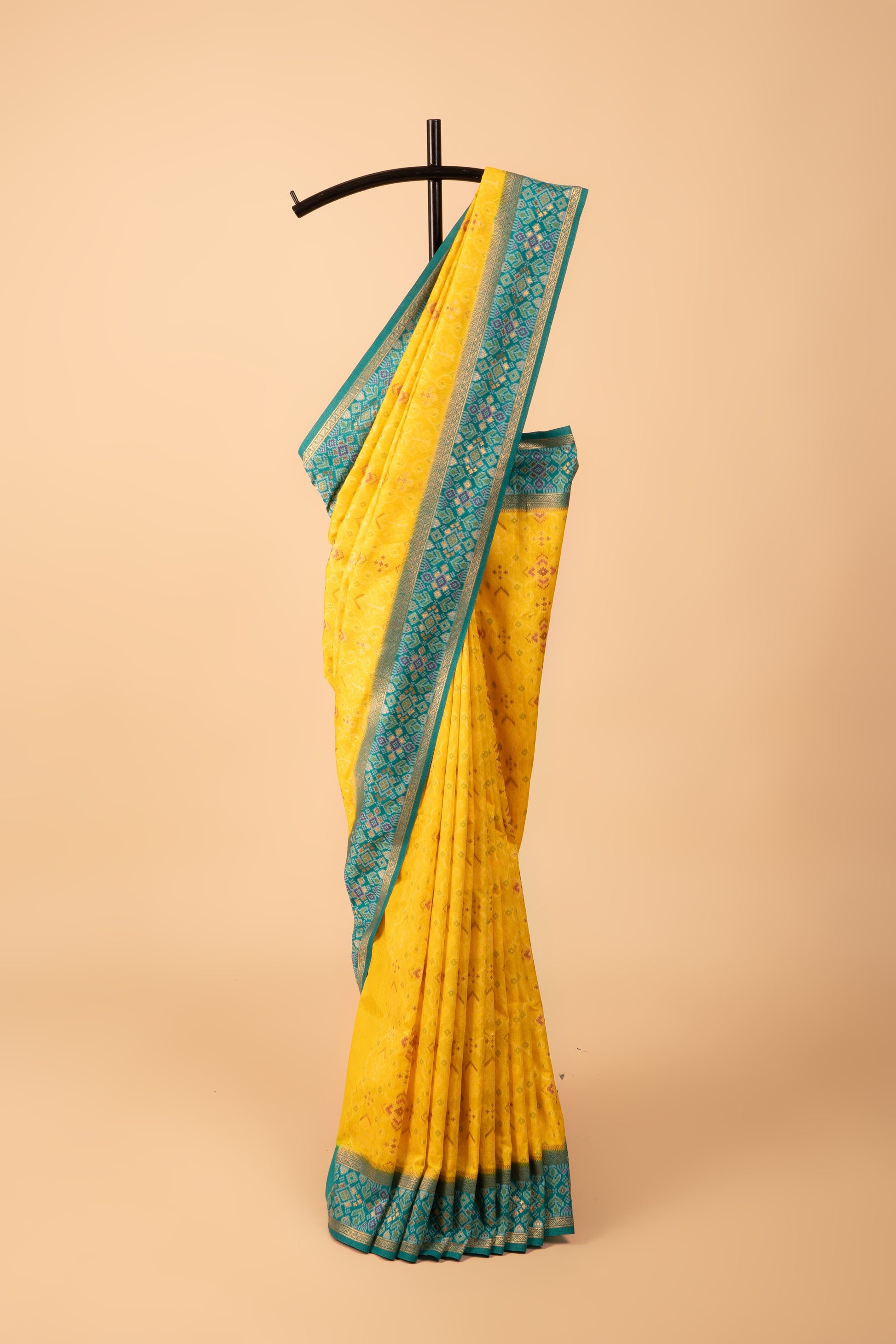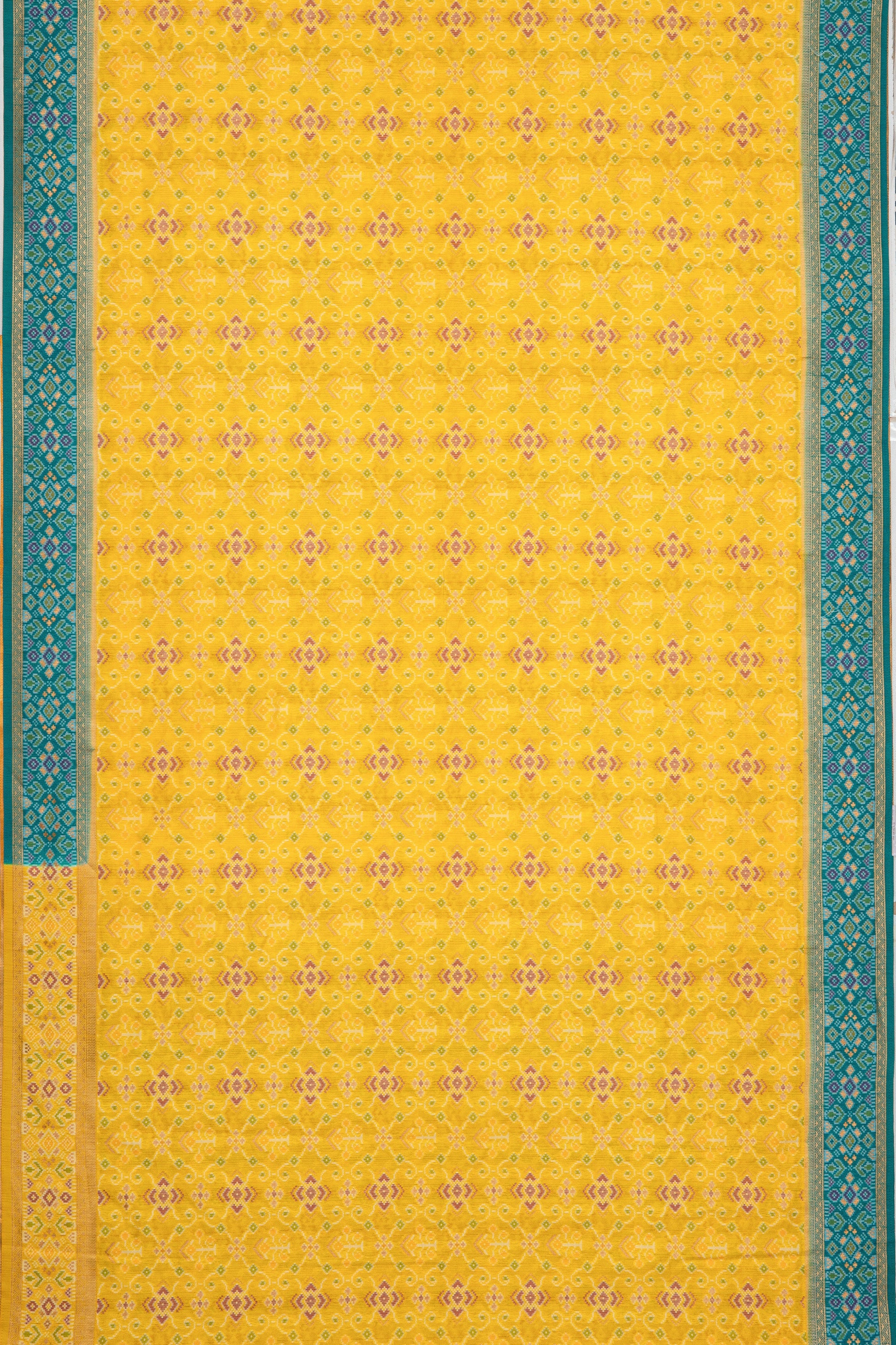 Yellow Tussar Silk Patola Saree with contrast Sea Green border