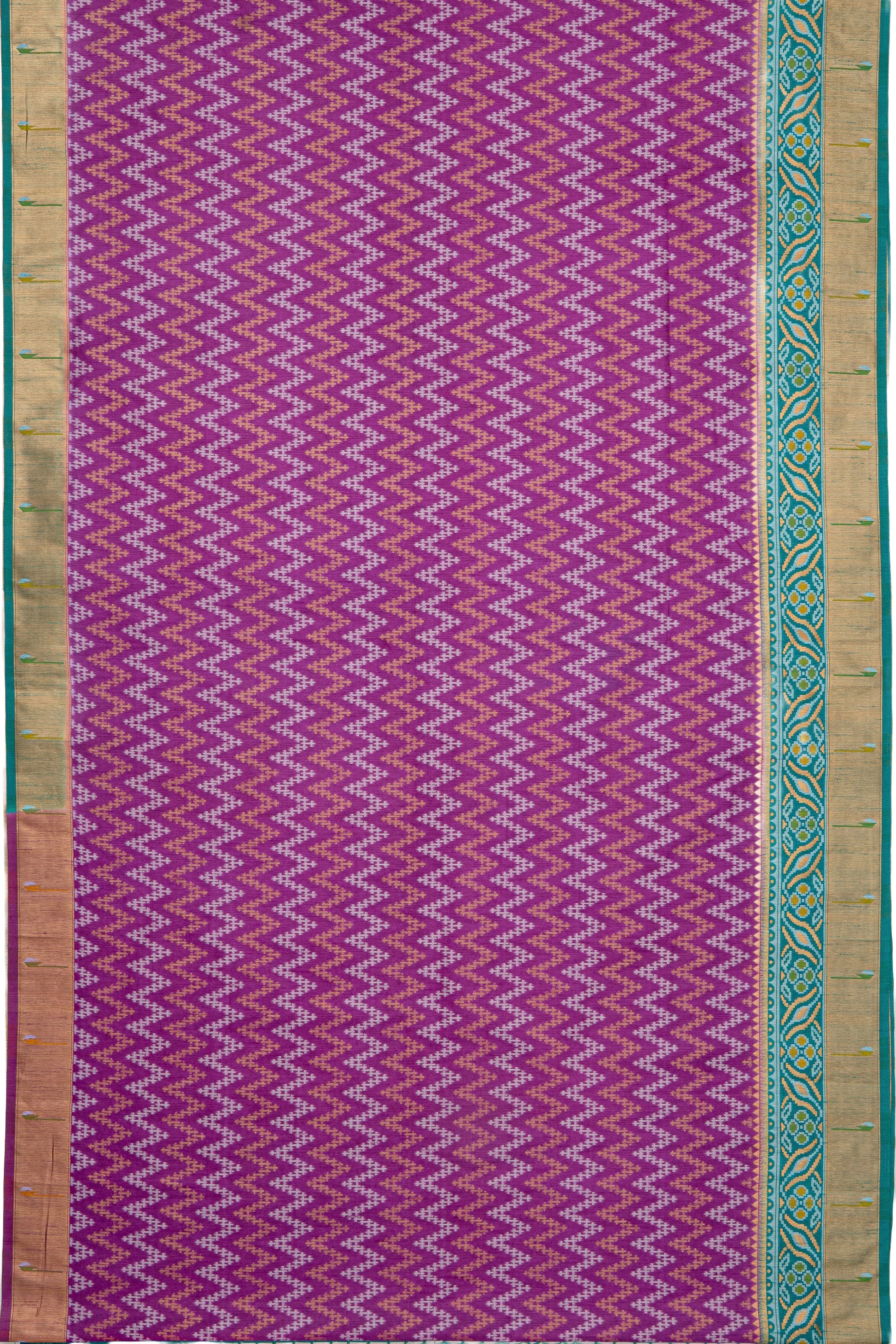 Purple Tussar Silk Patola Saree with contrast Sea Green border