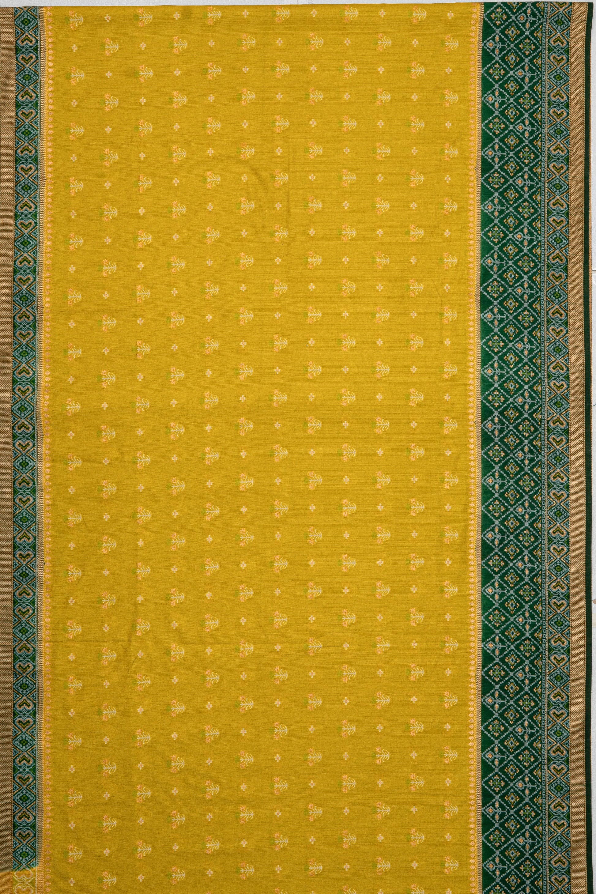 Mehndi Green Tussar Silk Patola Saree with contrast Dark Green border