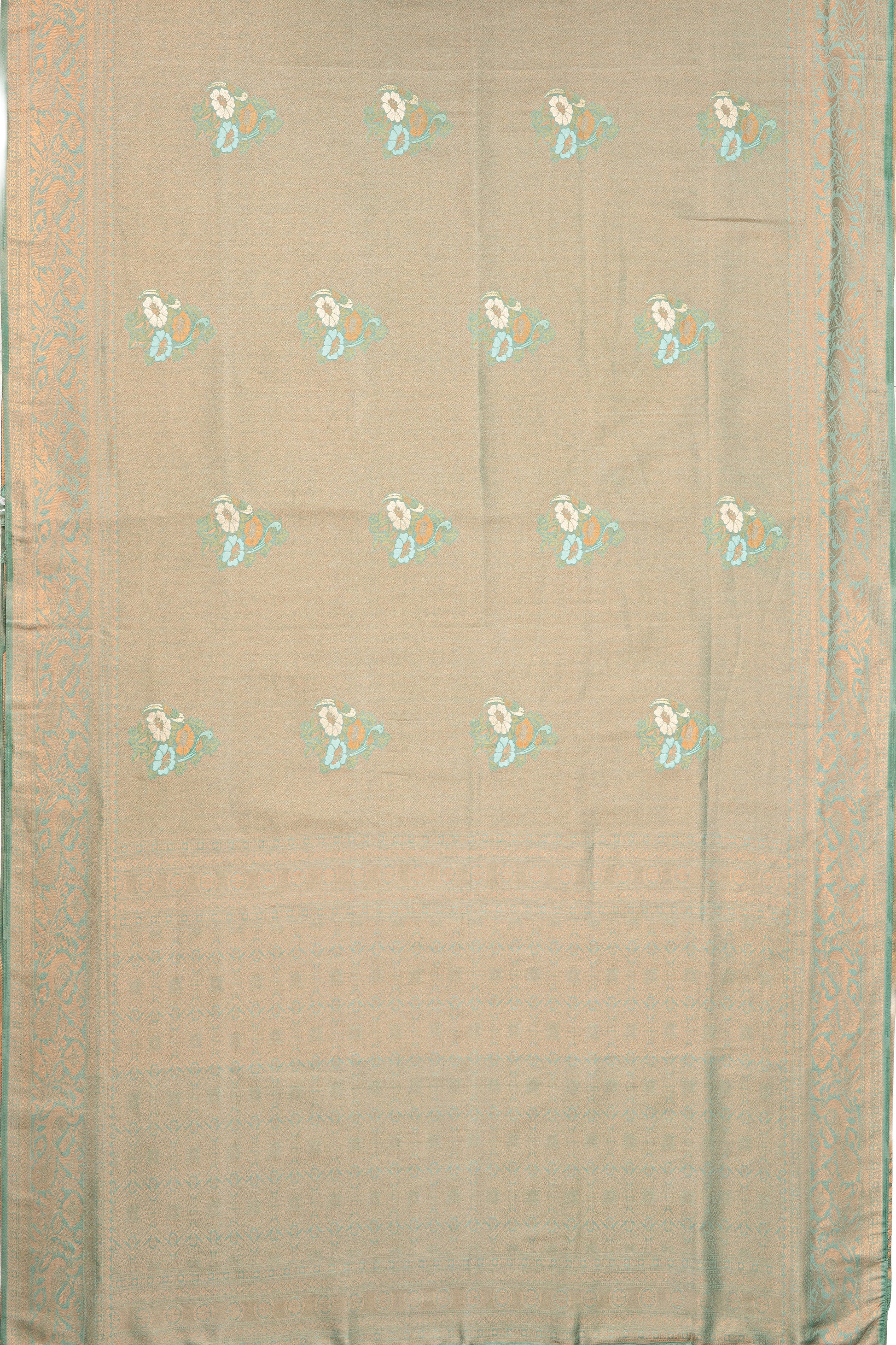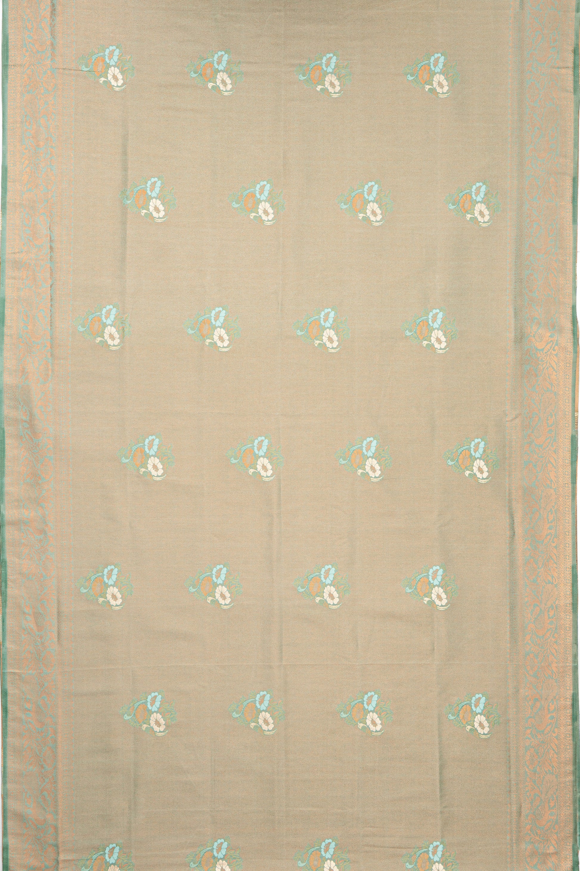 Dhoop Chaon Green and Copper Soft Silk Saree with Floral motifs