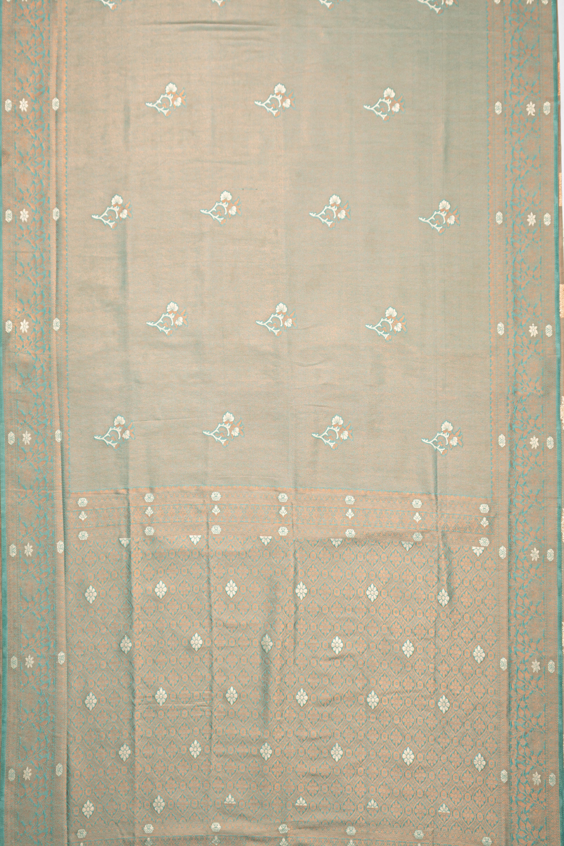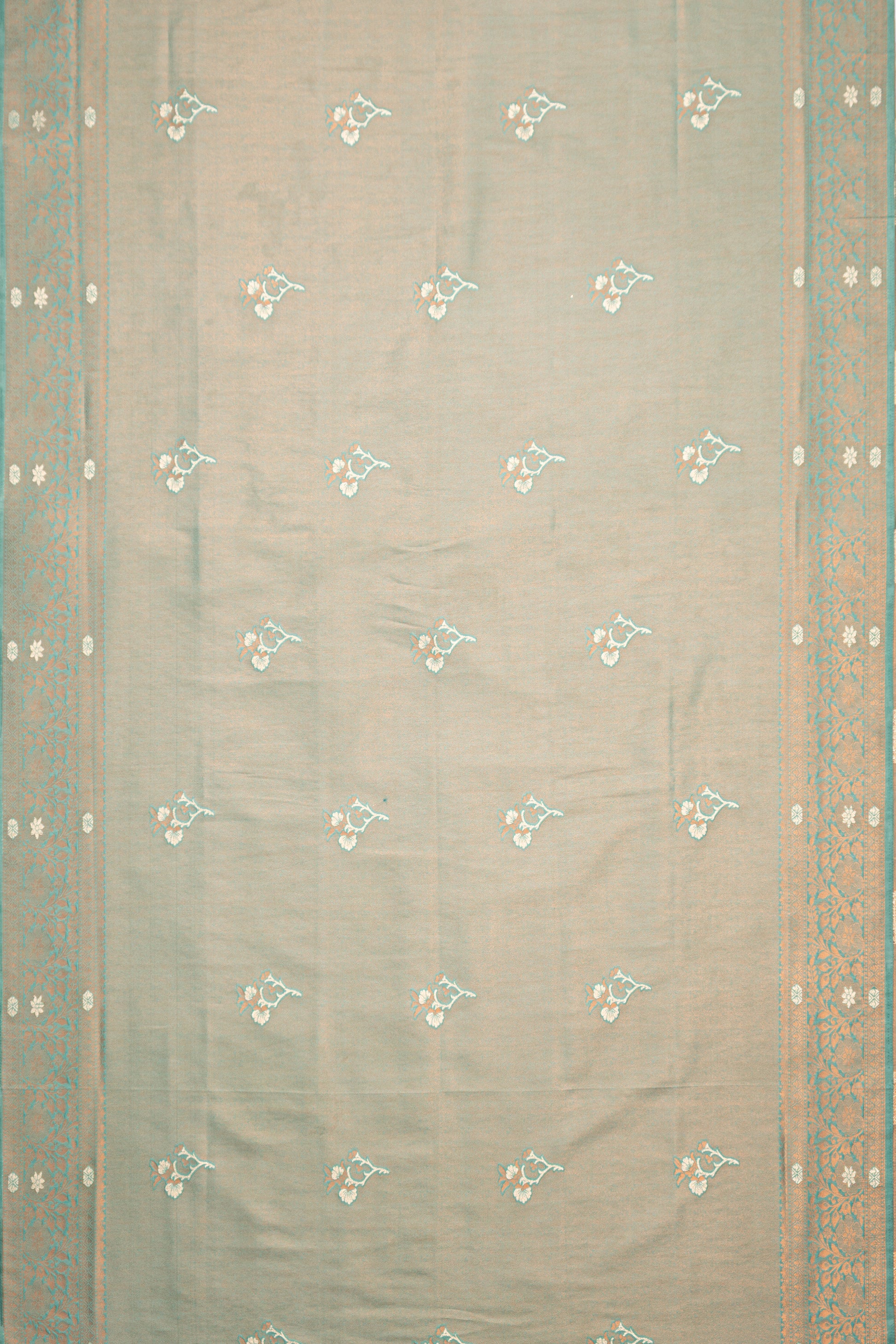 Forest Green Soft Silk Saree with Gold and Silver Zari Floral motifs