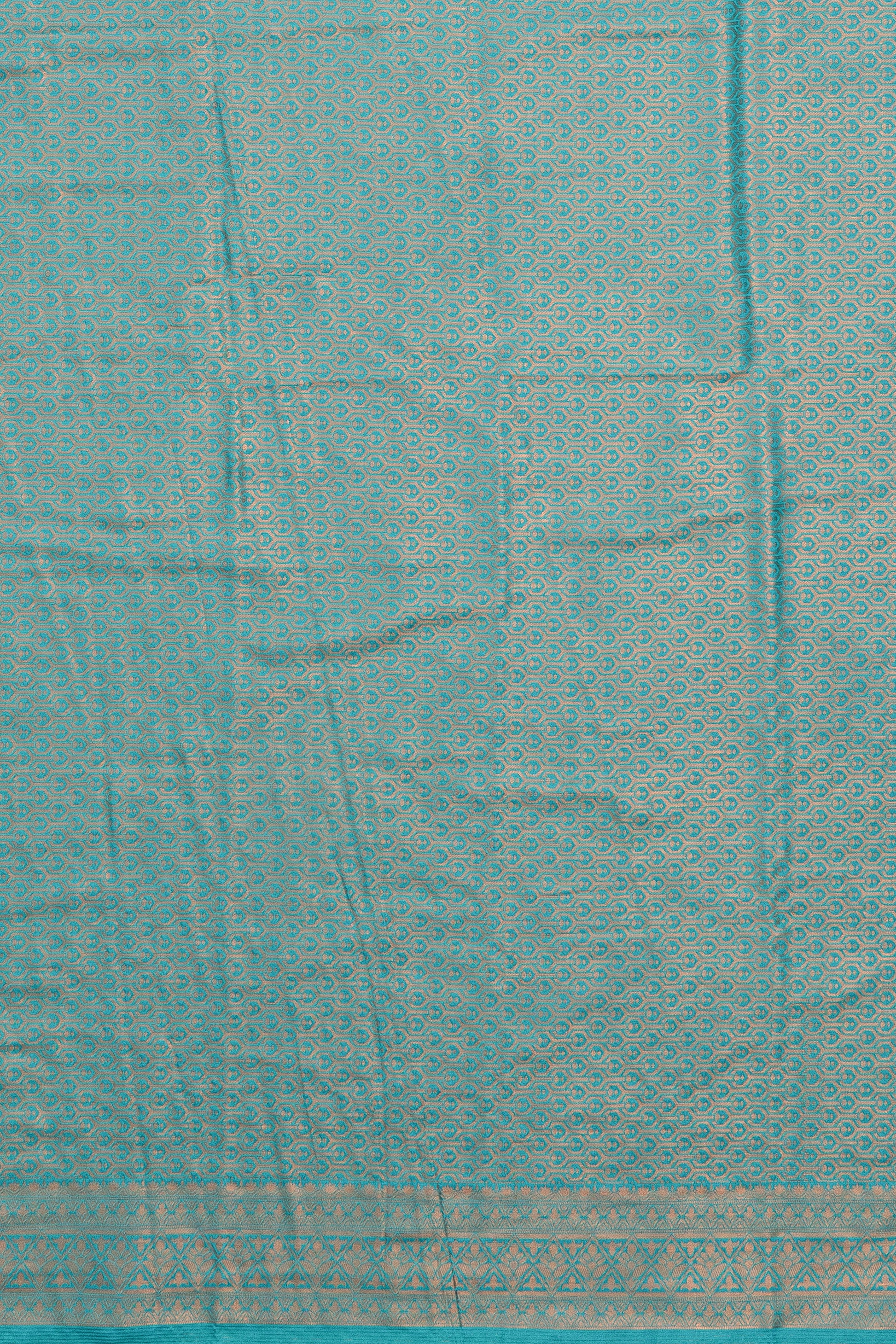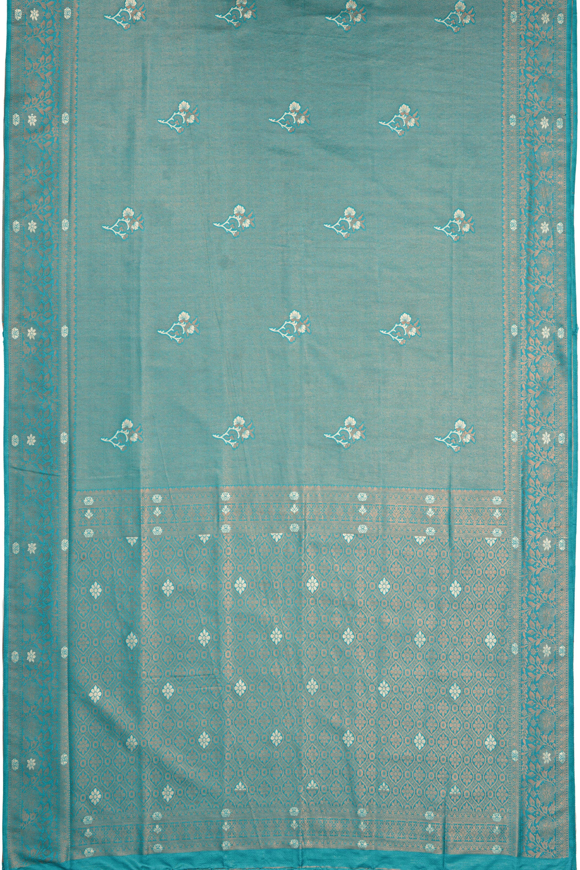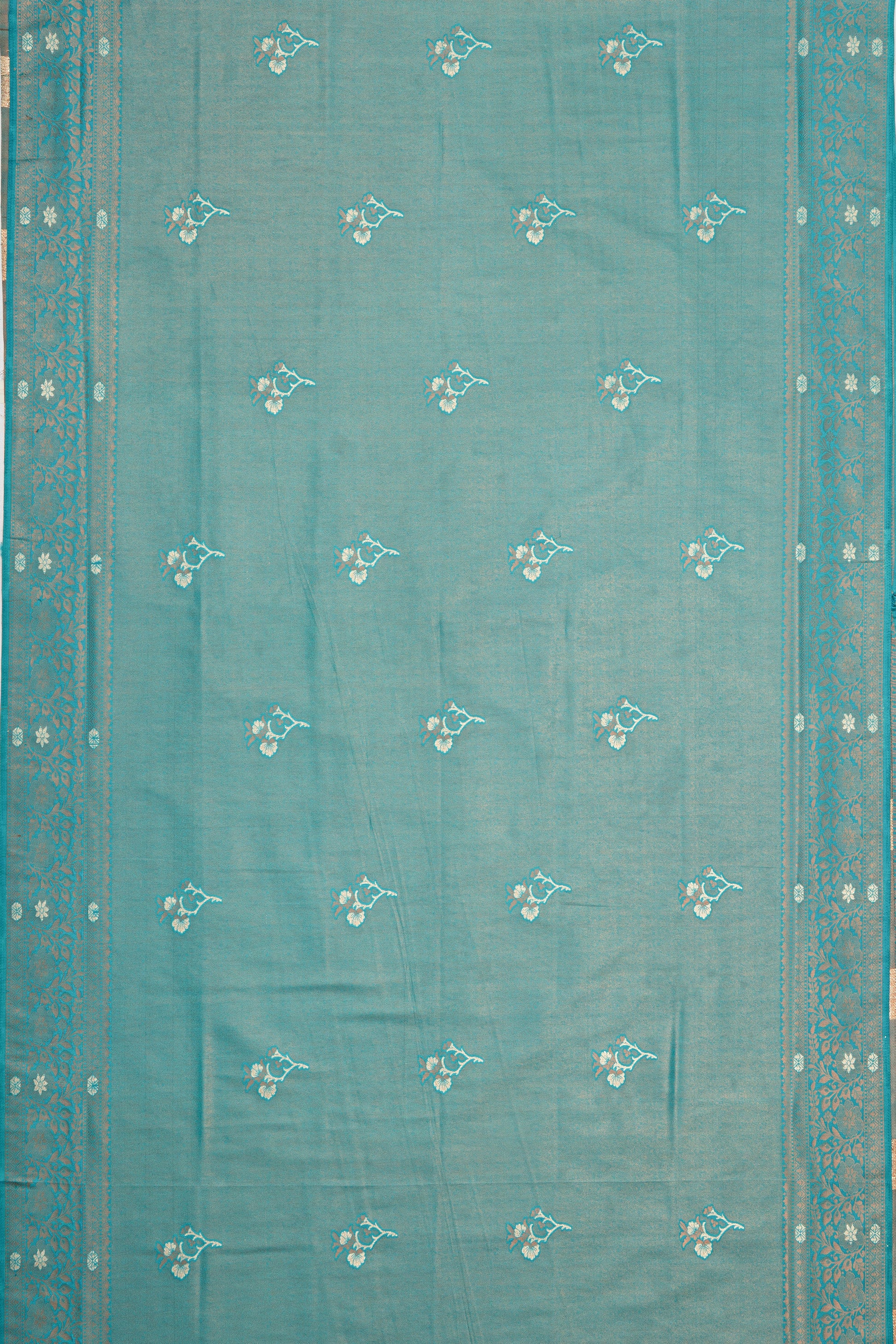 Sea Green Soft Silk Saree with Gold and Silver Zari Floral motifs