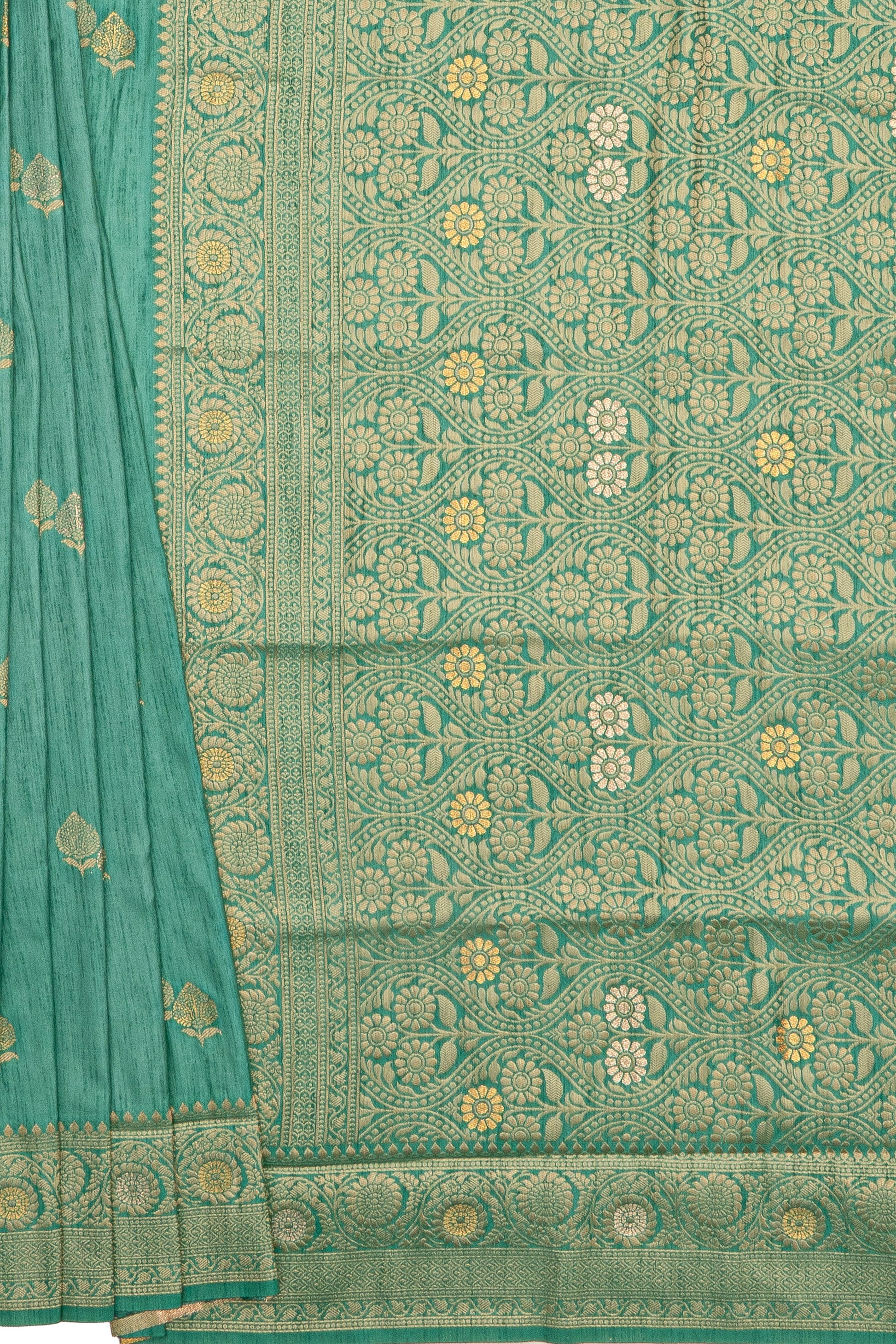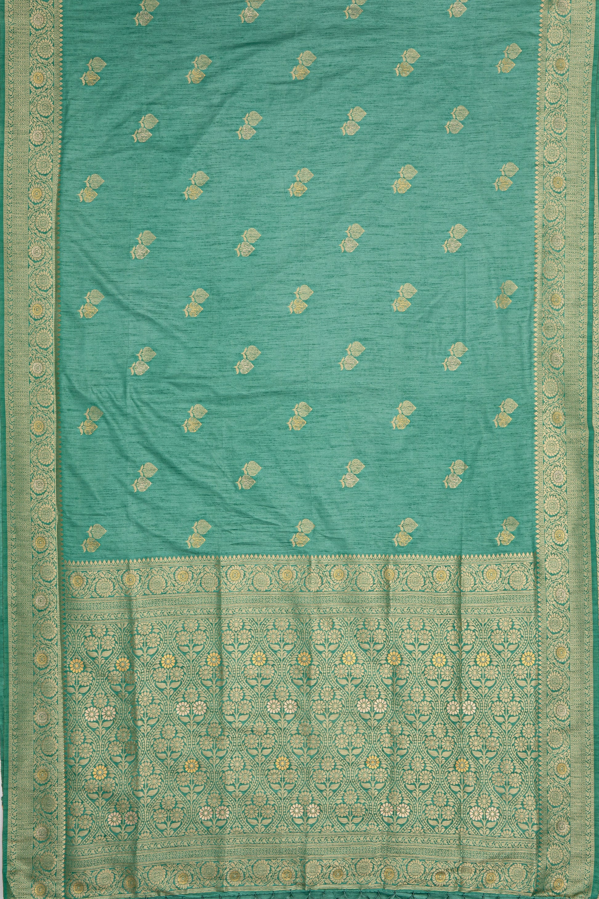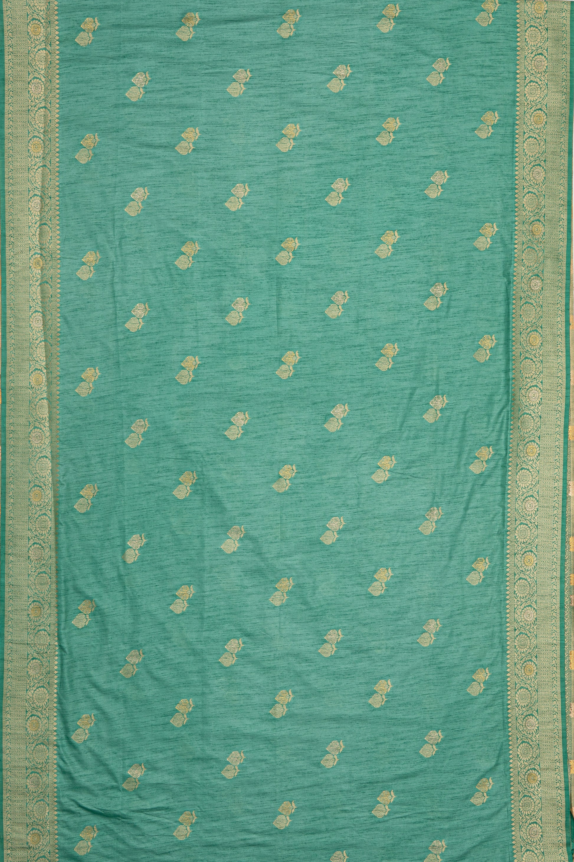 Sea Green Jute Silk Saree with Gold Zariwork — A stunning semi silk - jute silk he, thoughtfully crafted for festive, party, puja. The exquisite weave and subtle sheen capture the spirit of refined tradition.