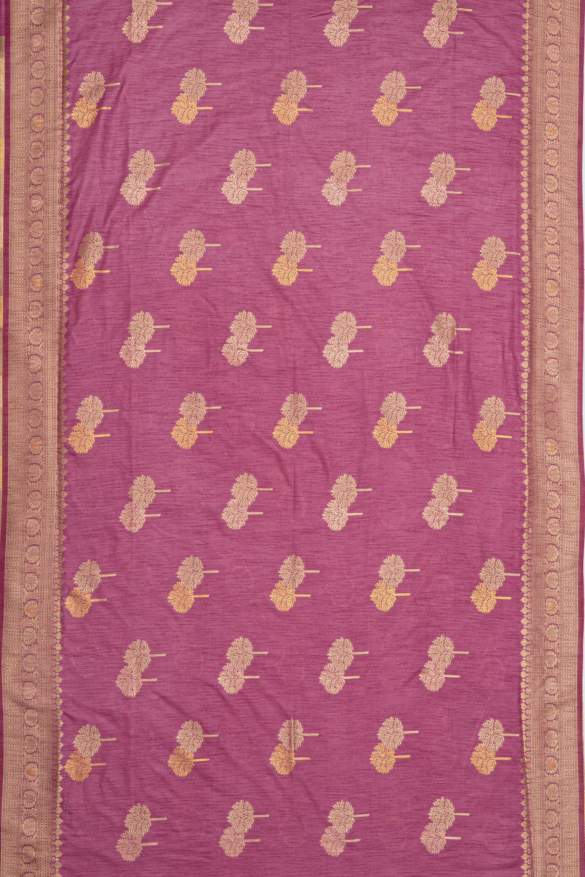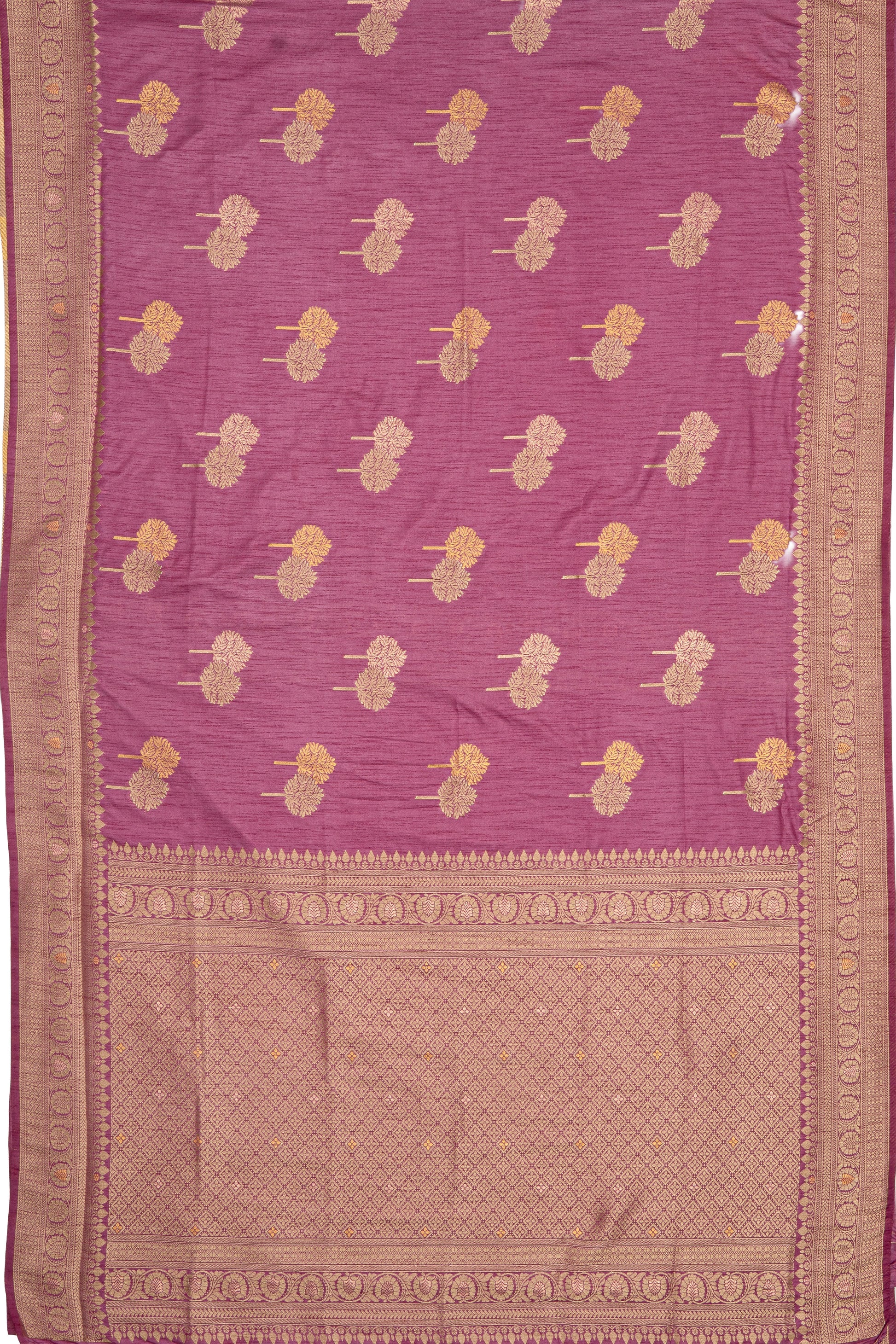 Dusty Rose Jute Silk Saree with Gold and Copper Zariwork