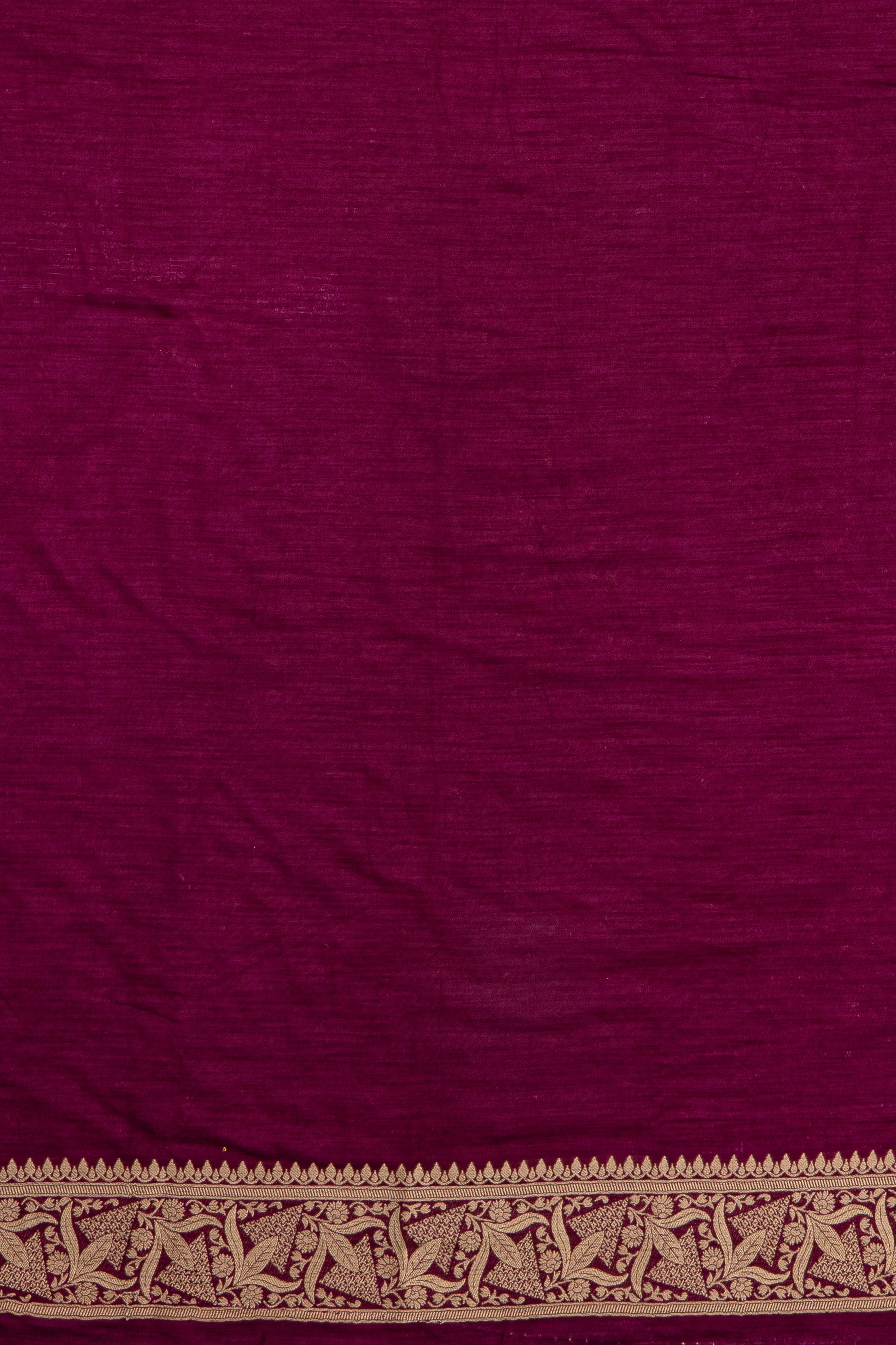 Wine Jute Silk Saree with Gold and Copper Zariwork