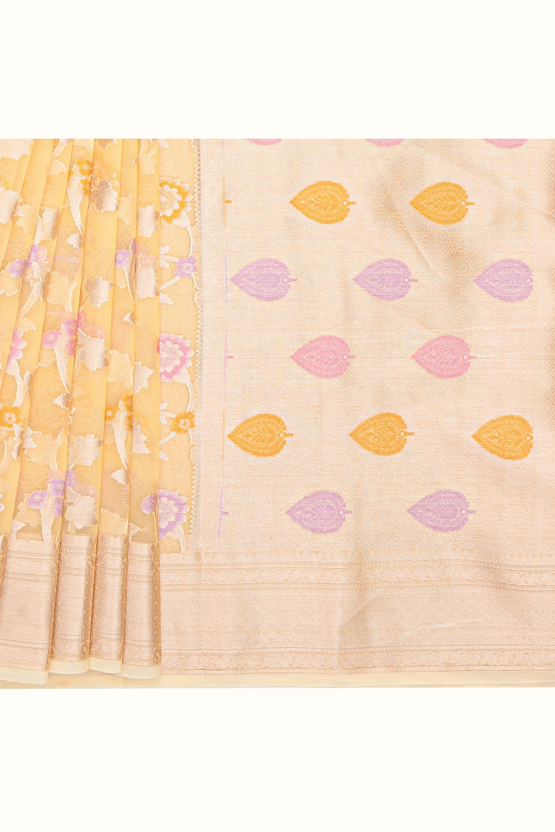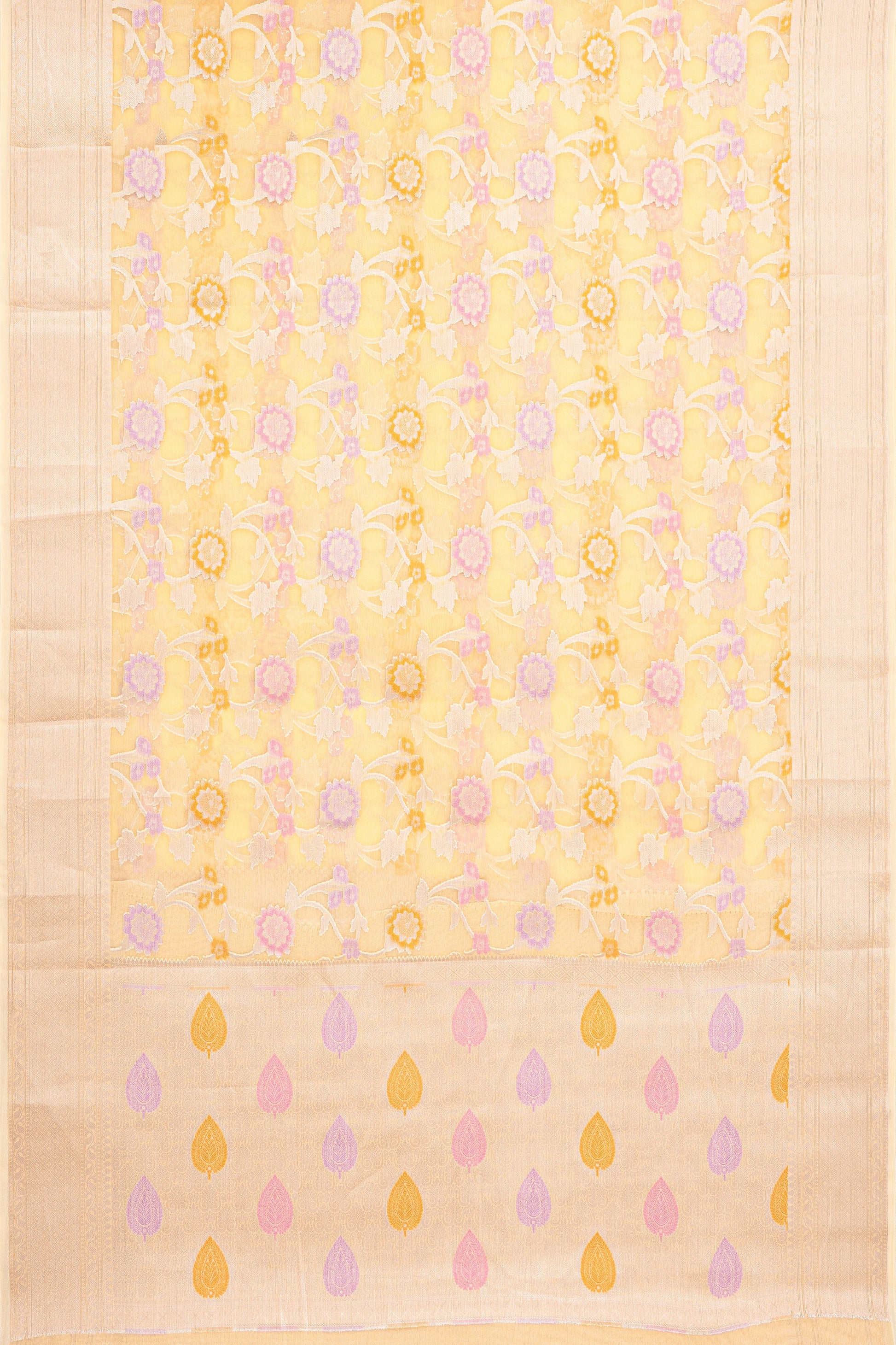 Pastel Yellow Organza Saree with Veil Zariwork — Celebrate every moment with this organza he, designed for party, festive. Its delicate craftsmanship and soft finish make it a statement of effortless grace.