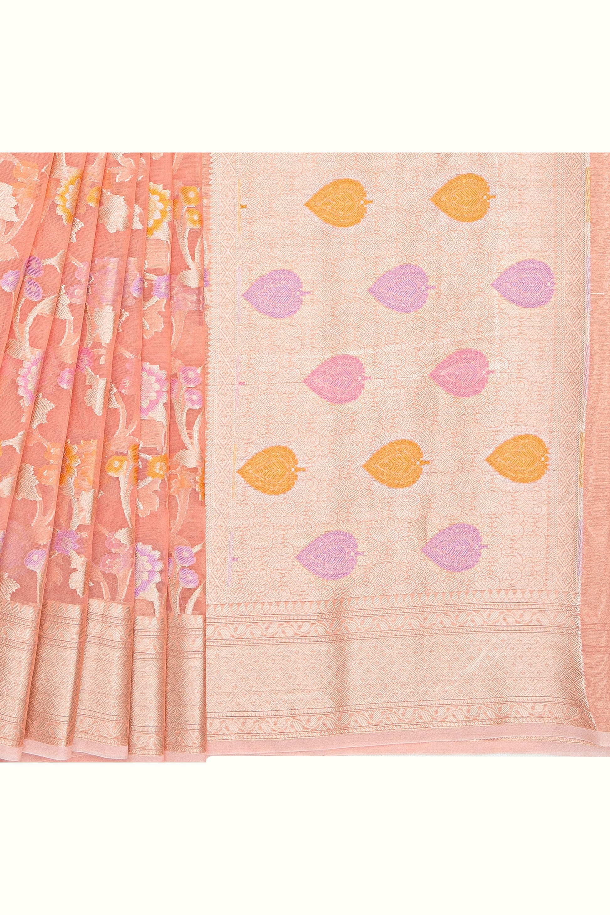 Carrot Orange Organza Saree with Veil Zariwork — A organza he that exudes timeless appeal. Crafted to perfection, it’s ideal for party, festive and special celebrations, radiating beauty and sophistication in every fold.