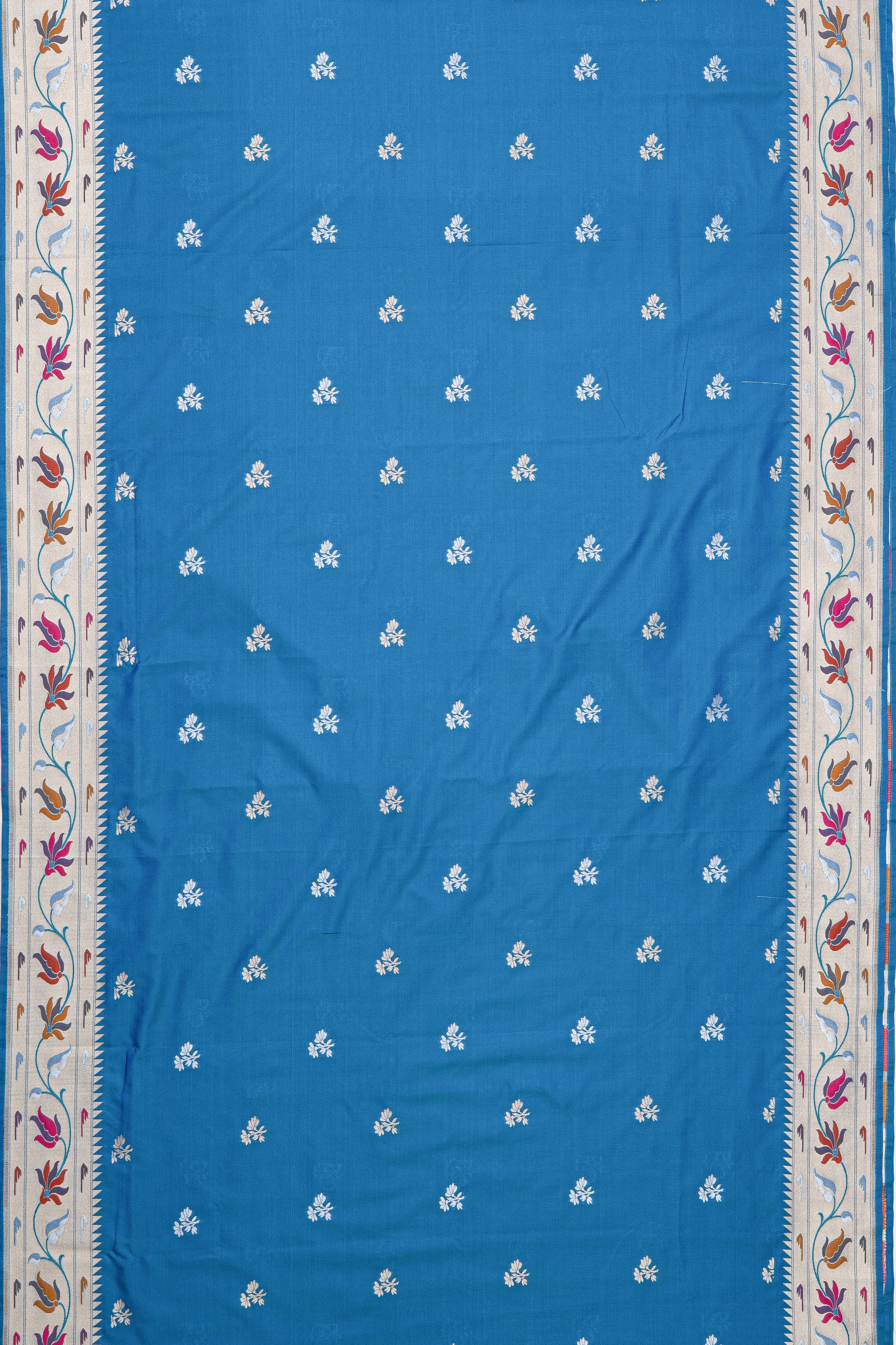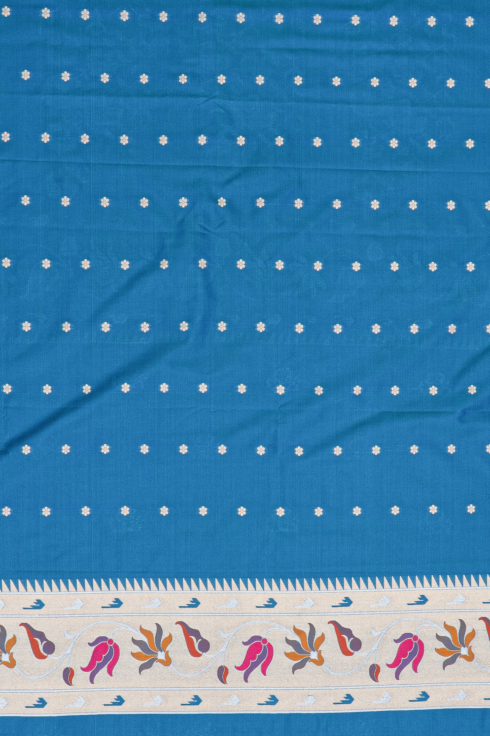 Blue Katan Silk Saree with Lotus border