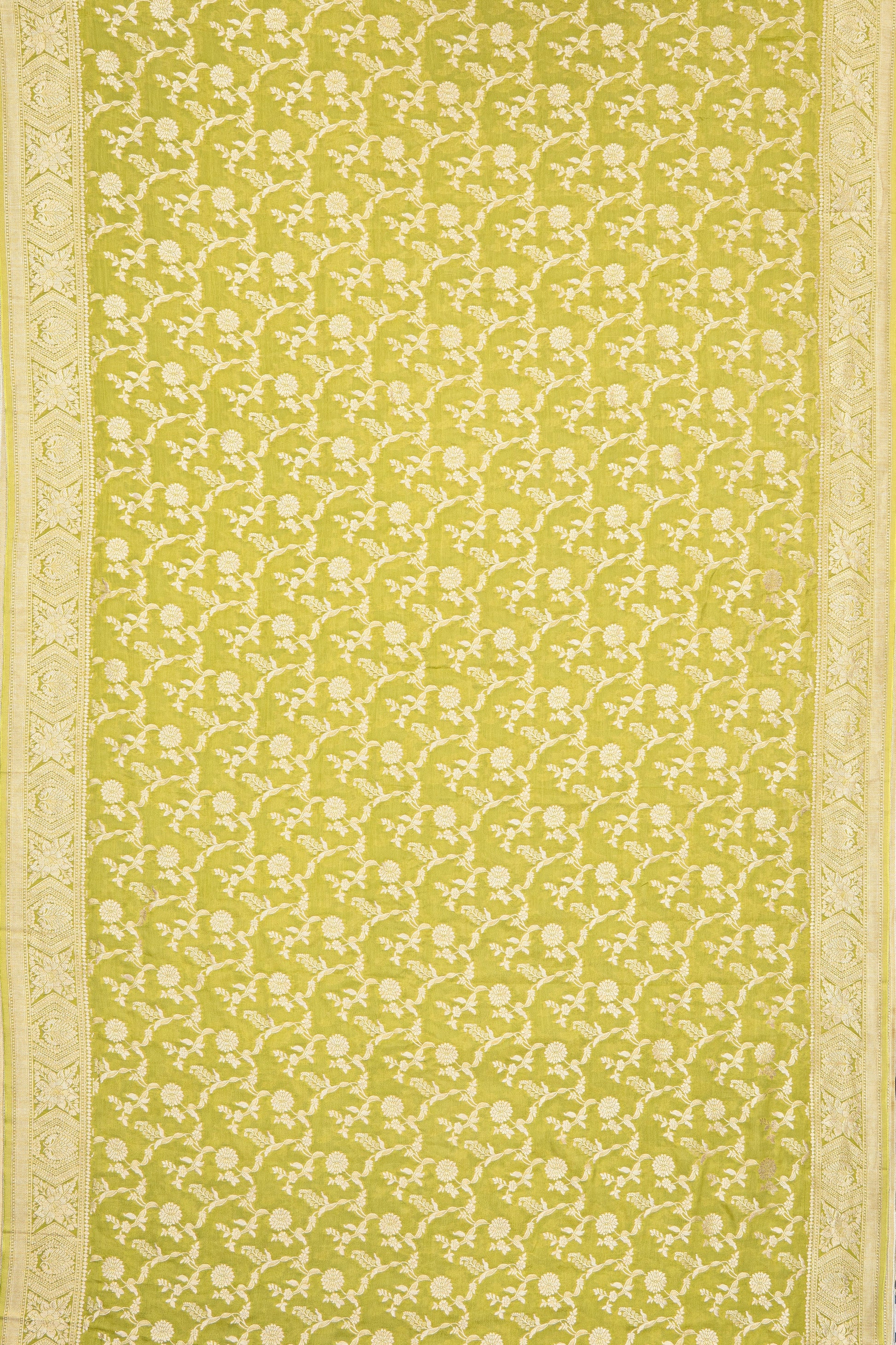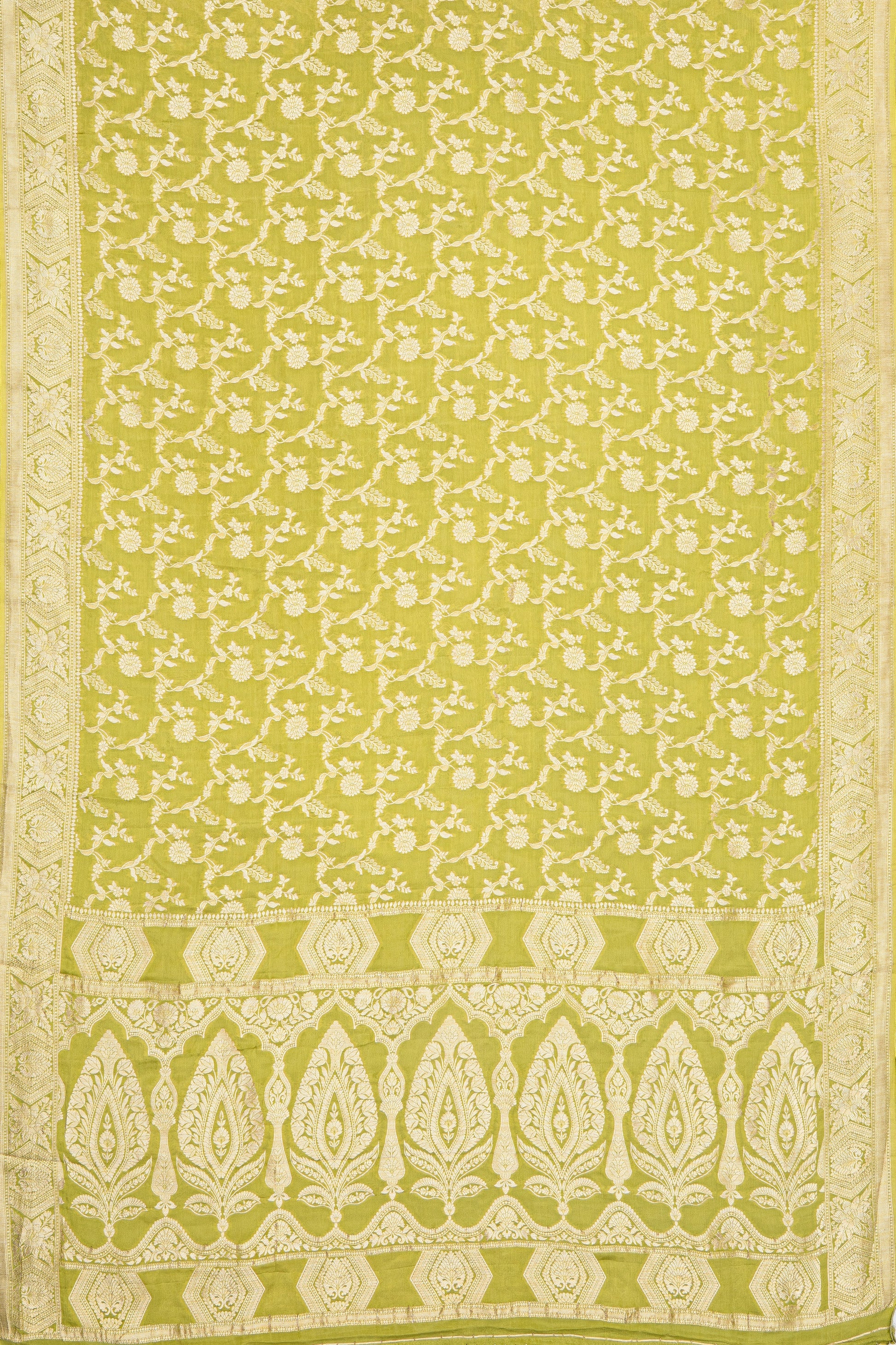Lime Green Crepe Silk Saree with Veil Zariwork — Elegance meets artistry in this crepe banarasi/he, perfect for party, festive. Light, luxurious, and beautifully detailed — it embodies grace with every wear.