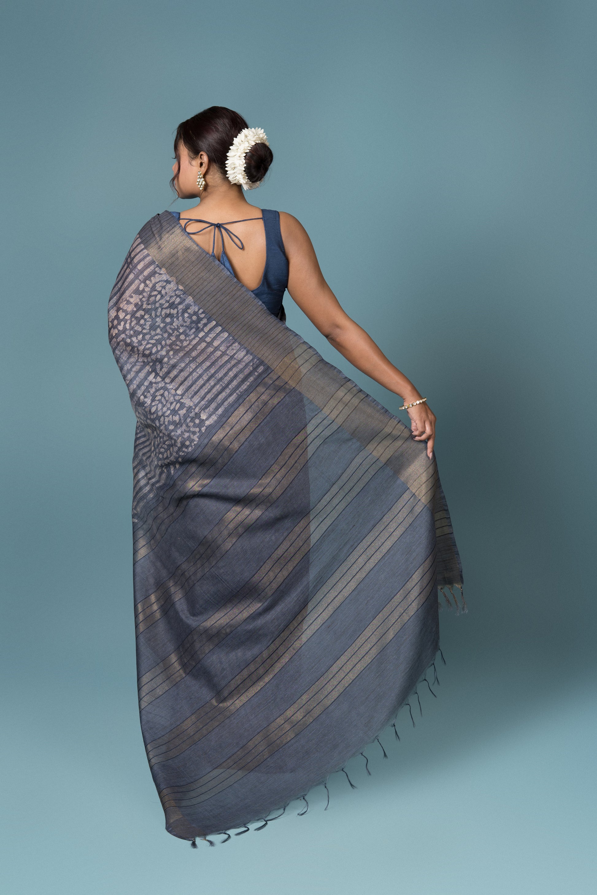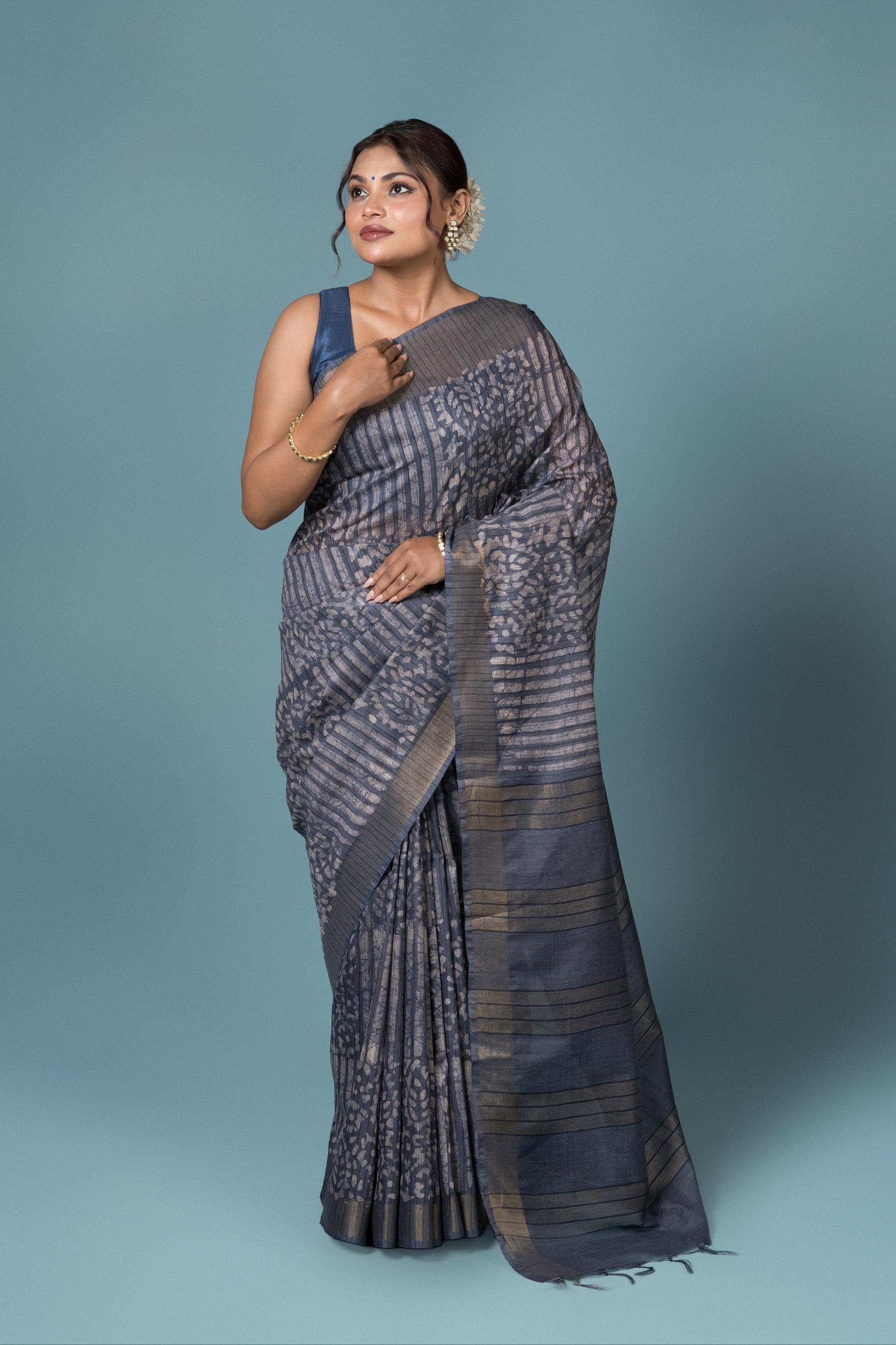 Elevate your wardrobe with our exclusive Ash Blue Tussar Silk Saree with Batik Print. Featuring a beautiful Ash Blue hue, this piece effortlessly blends timeless tradition with modern elegance. Ideal for festive occasions or everyday sophistication. Shop now and make it yours.