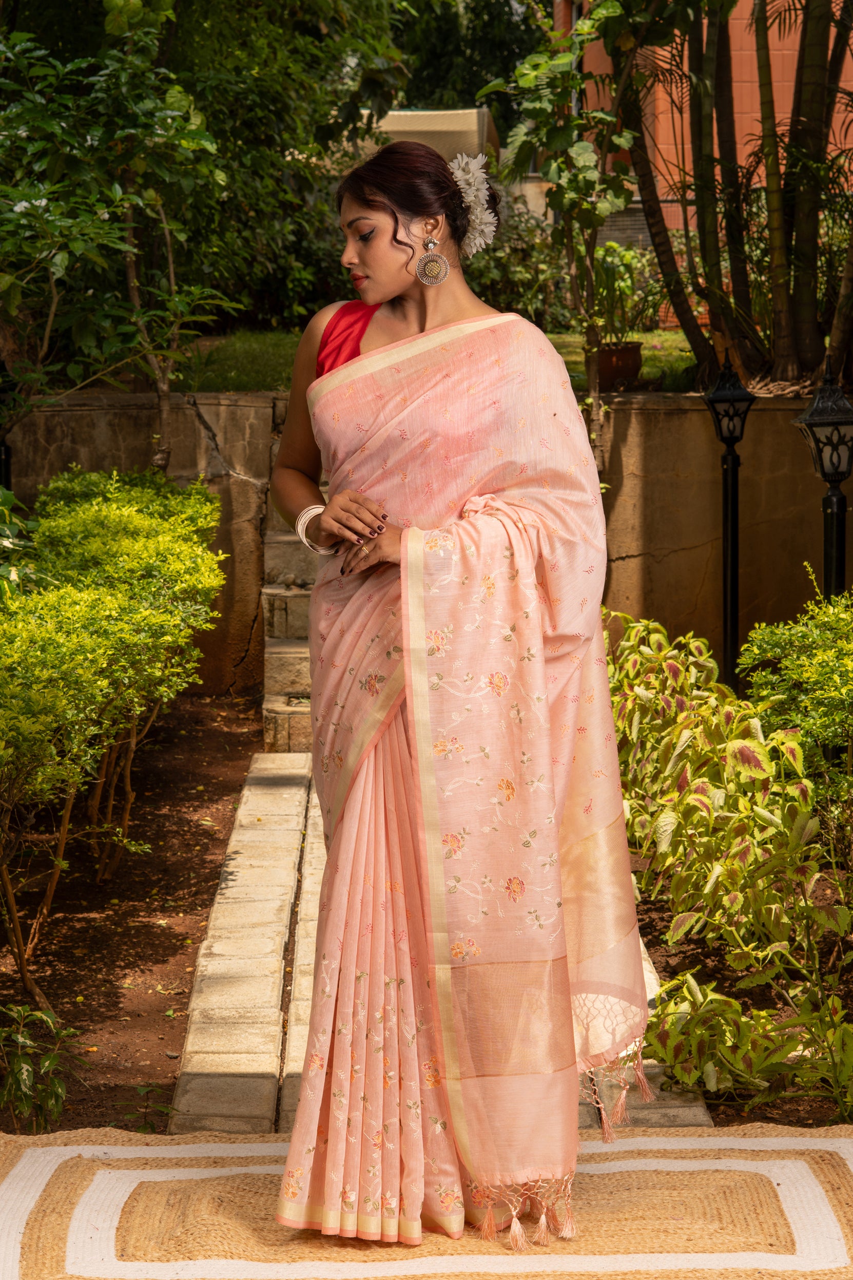 Elevate your wardrobe with our exclusive Baby Pink Linen Saree. Featuring a beautiful Baby Pink hue, this piece effortlessly blends timeless tradition with modern elegance. Ideal for festive occasions or everyday sophistication. Shop now and make it yours.