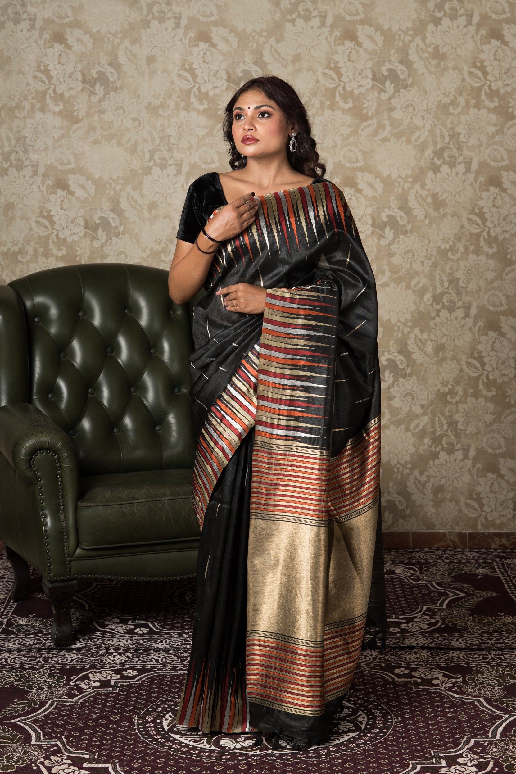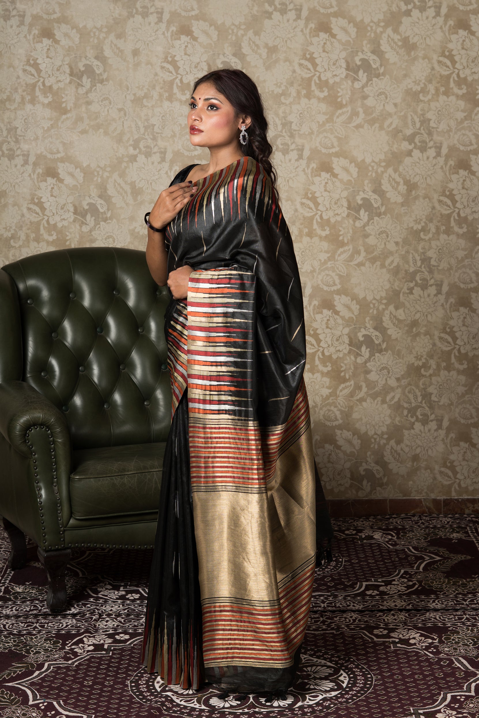 Black Tussar Silk Saree