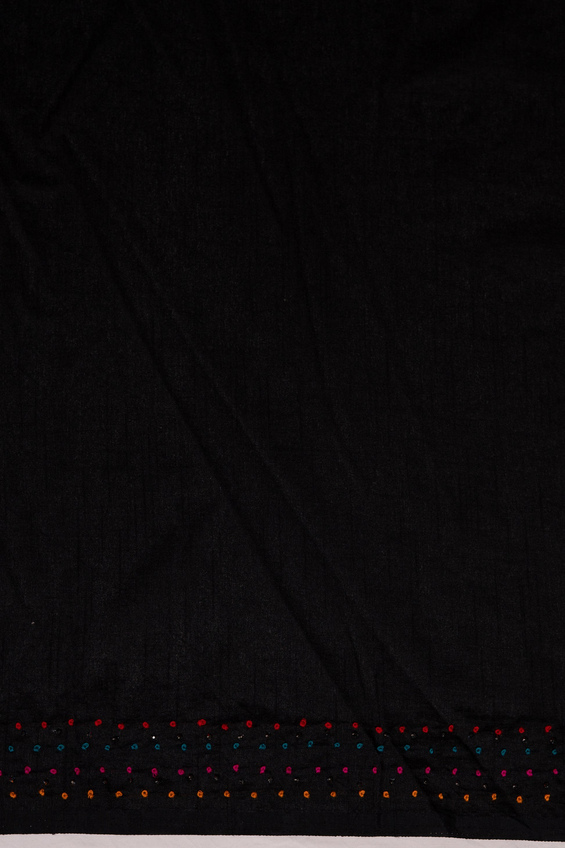 Experience the luxury of tradition with this exquisite Black Tussar Silk Saree with French Knot threadwork. Made using fine textiles, it reflects a perfect harmony of tradition and luxury. Wear it to parties, cultural events, or joyous occasions. Match it with statement accessories to stand out effortlessly.