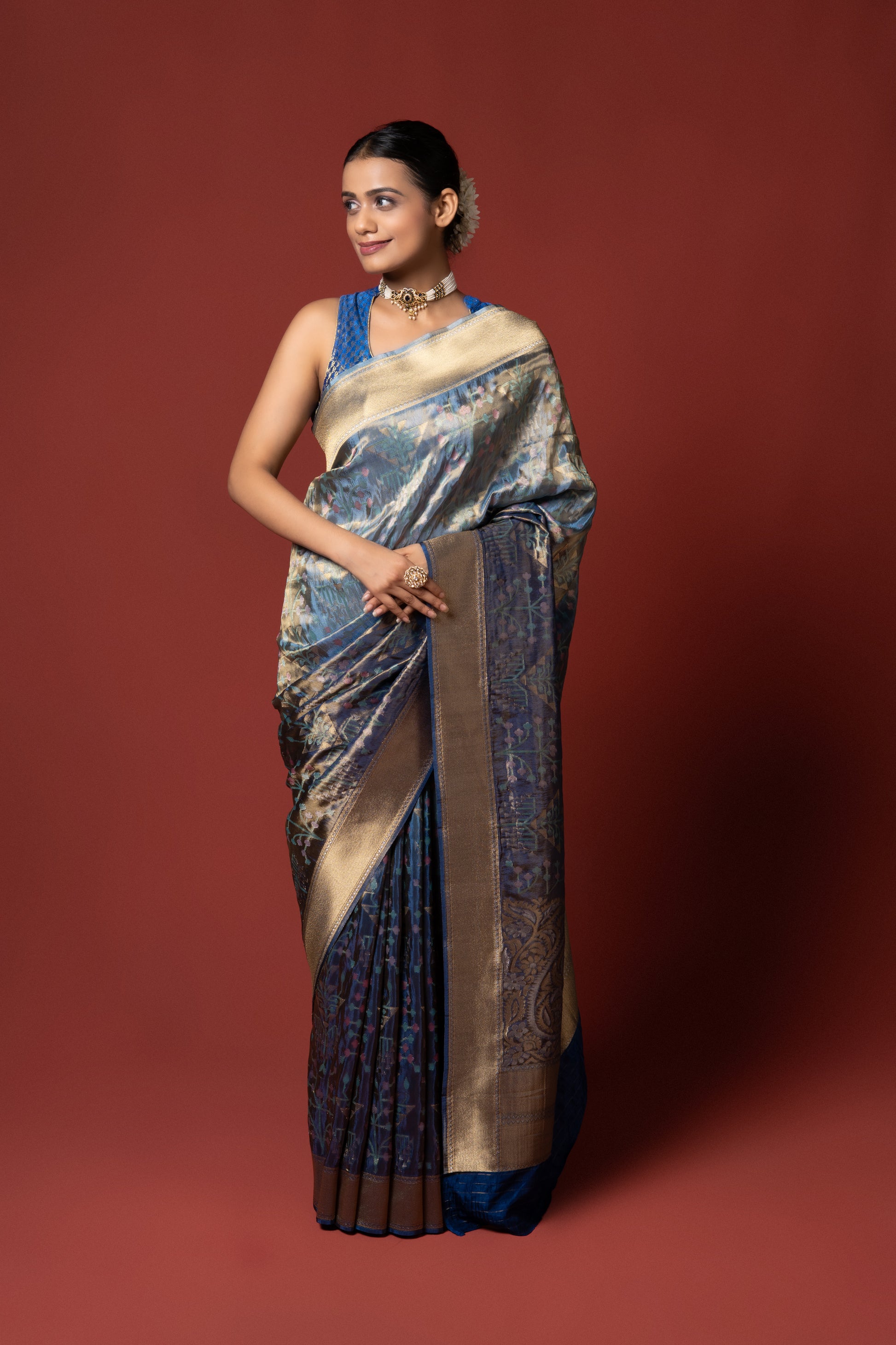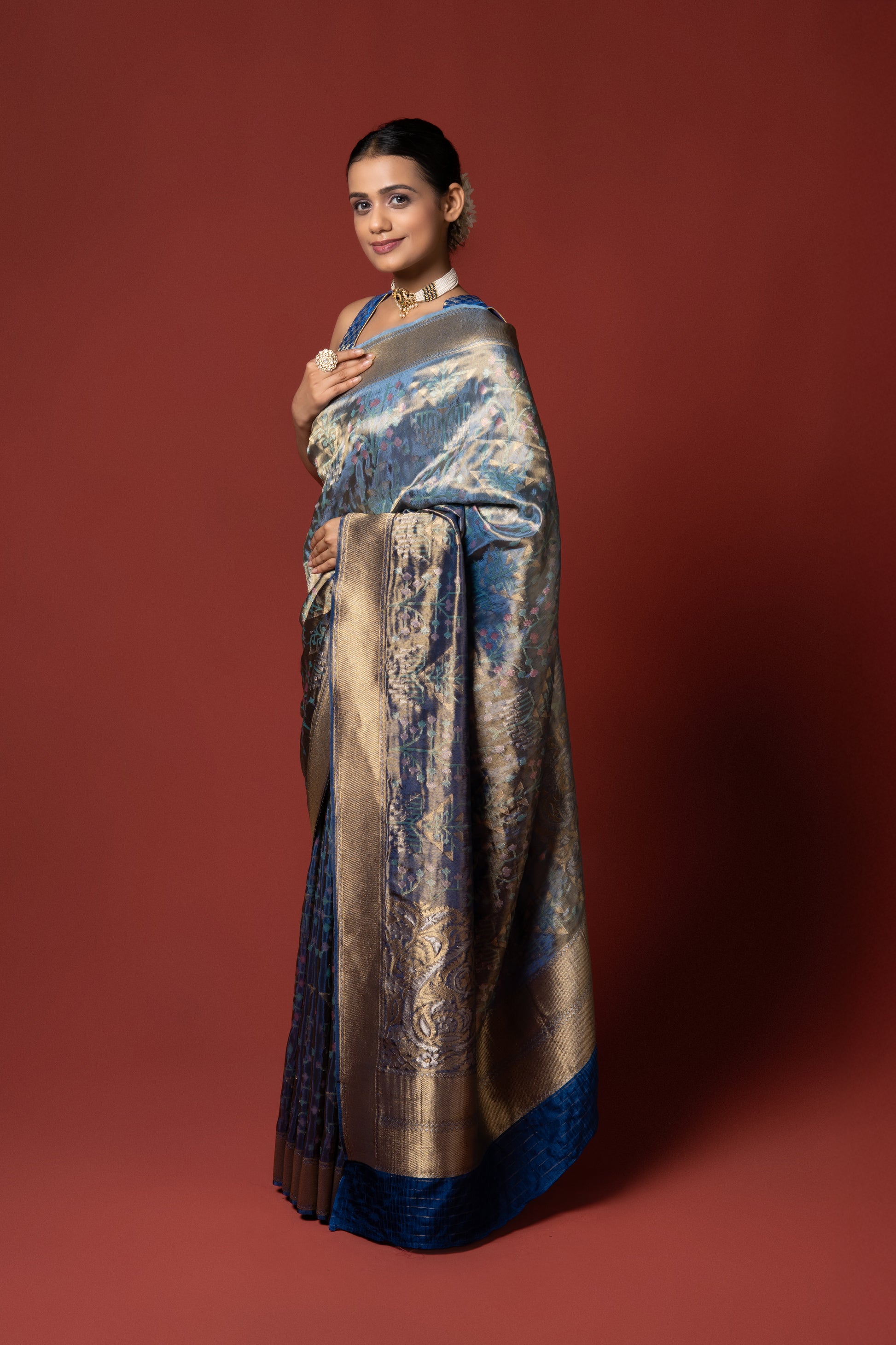 Elevate your wardrobe with our exclusive Blue and Grey Tissue Silk Saree. Featuring a beautiful Blue and Grey hue, this piece effortlessly blends timeless tradition with modern elegance. Ideal for festive occasions or everyday sophistication. Shop now and make it yours.