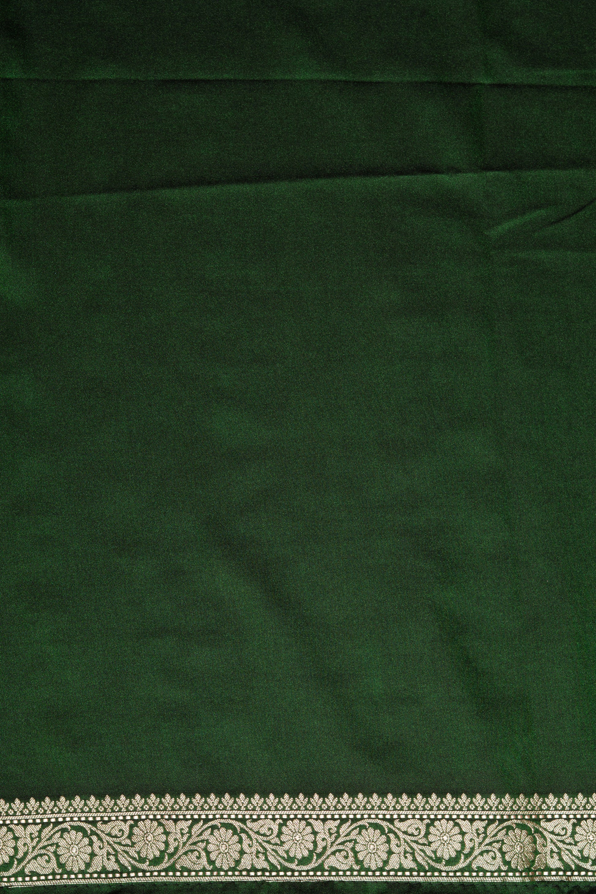 Add sophistication to your festive collection with this Bottle Green Katan Silk Banarasi Saree. Its premium material ensures both durability and unmatched elegance. Great for festive wear, adding charm to your special moments. Accentuate with bold accessories for a contemporary twist.