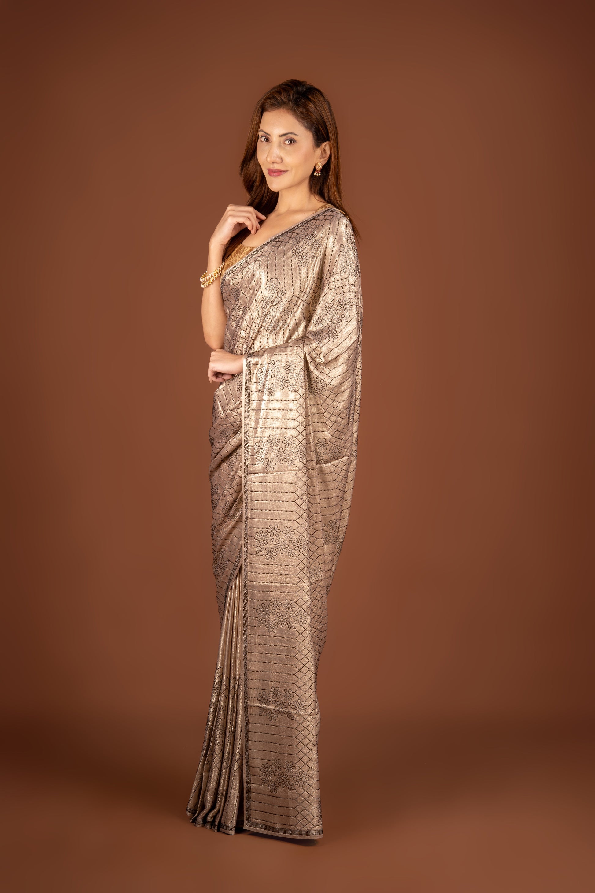Bronze Crepe Saree with Stonework