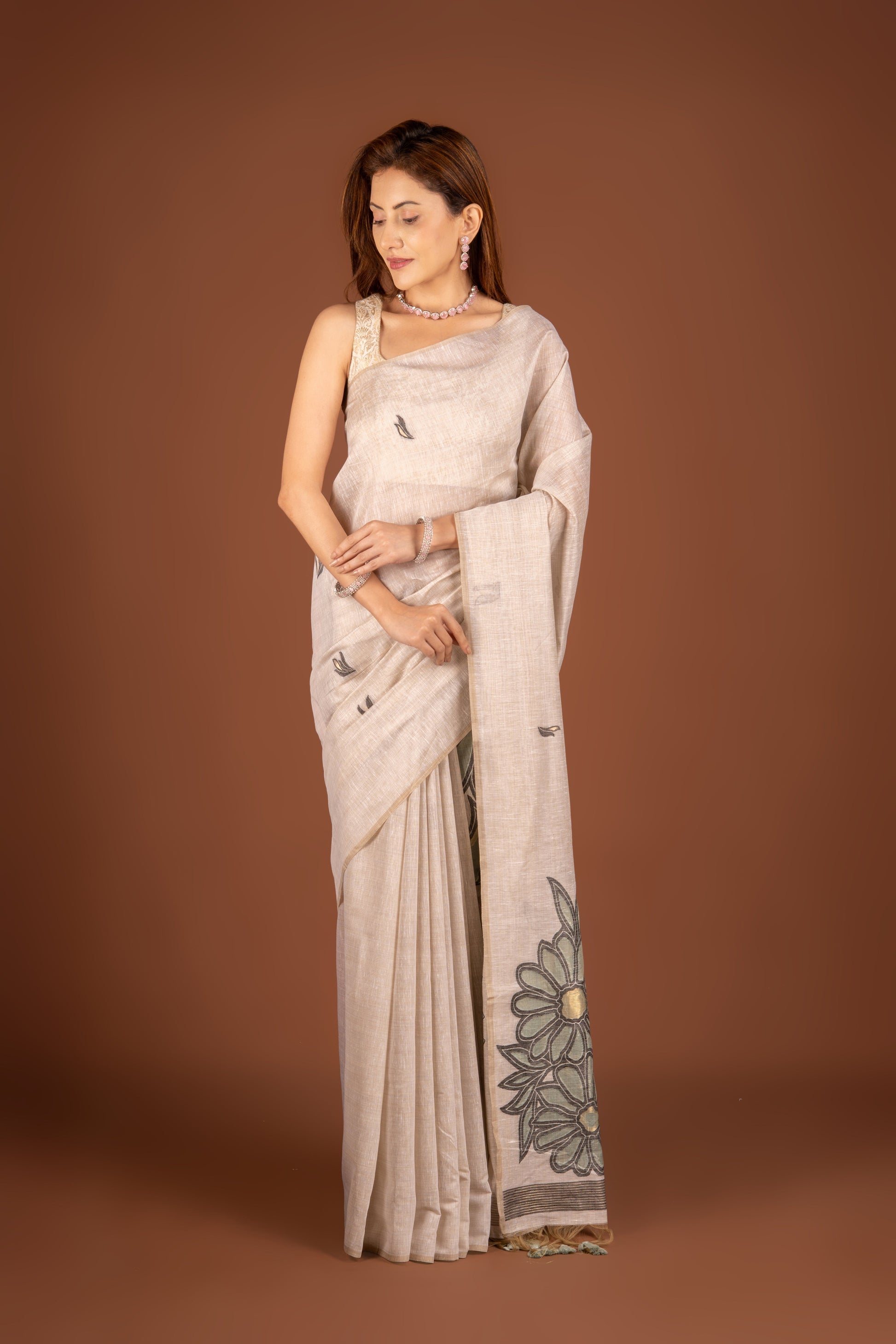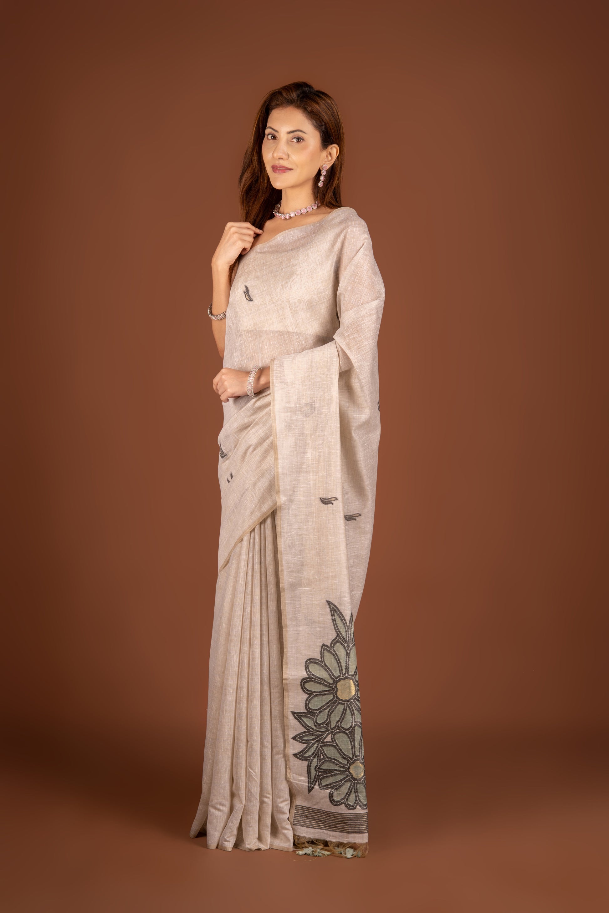 Add sophistication to your festive collection with this Cream Cotton Saree with Threadwork. Its premium material ensures both durability and unmatched elegance. Great for festive wear, adding charm to your special moments. Accentuate with bold accessories for a contemporary twist.