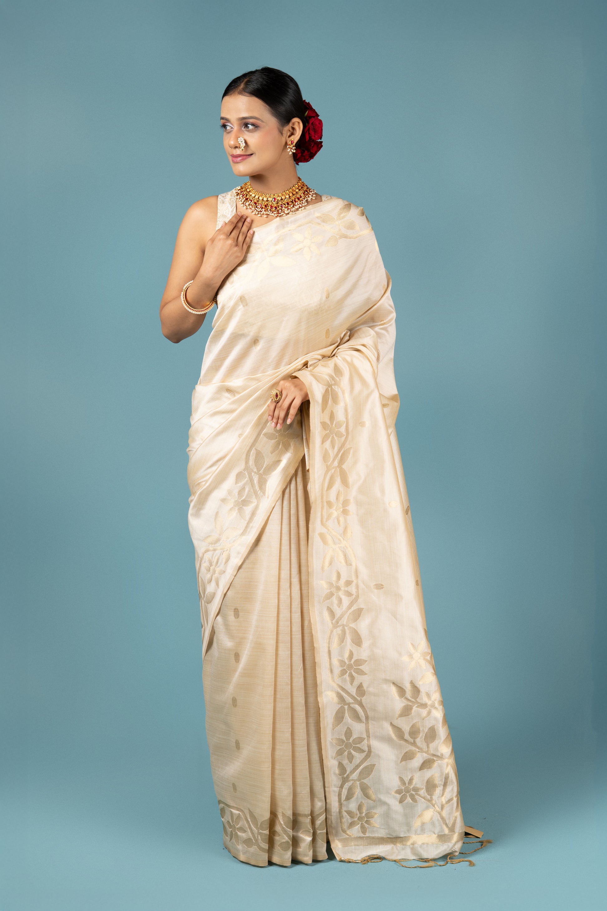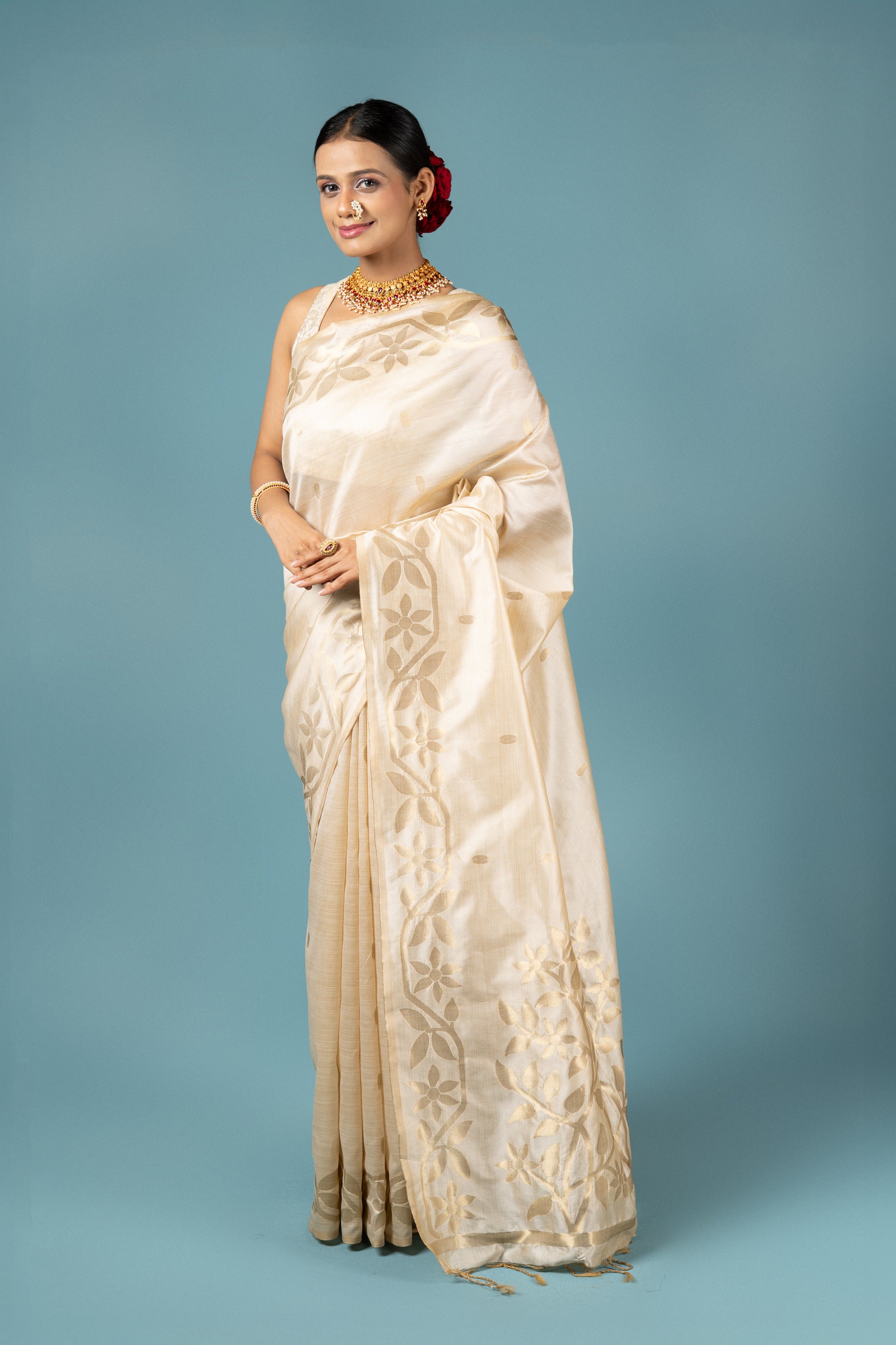 Elevate your wardrobe with our exclusive Cream Katan Silk Saree. Featuring a beautiful Cream hue, this piece effortlessly blends timeless tradition with modern elegance. Ideal for festive occasions or everyday sophistication. Shop now and make it yours.