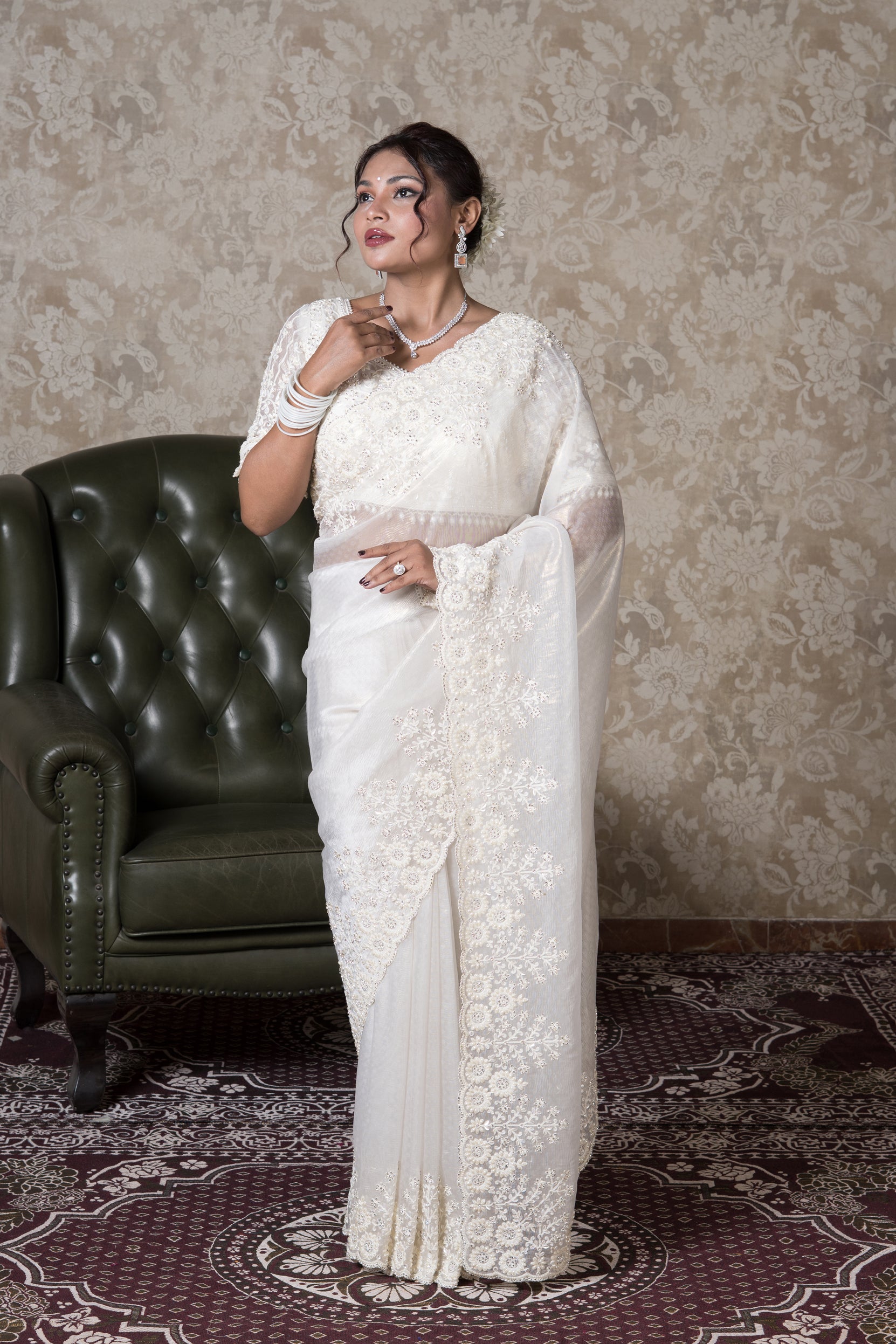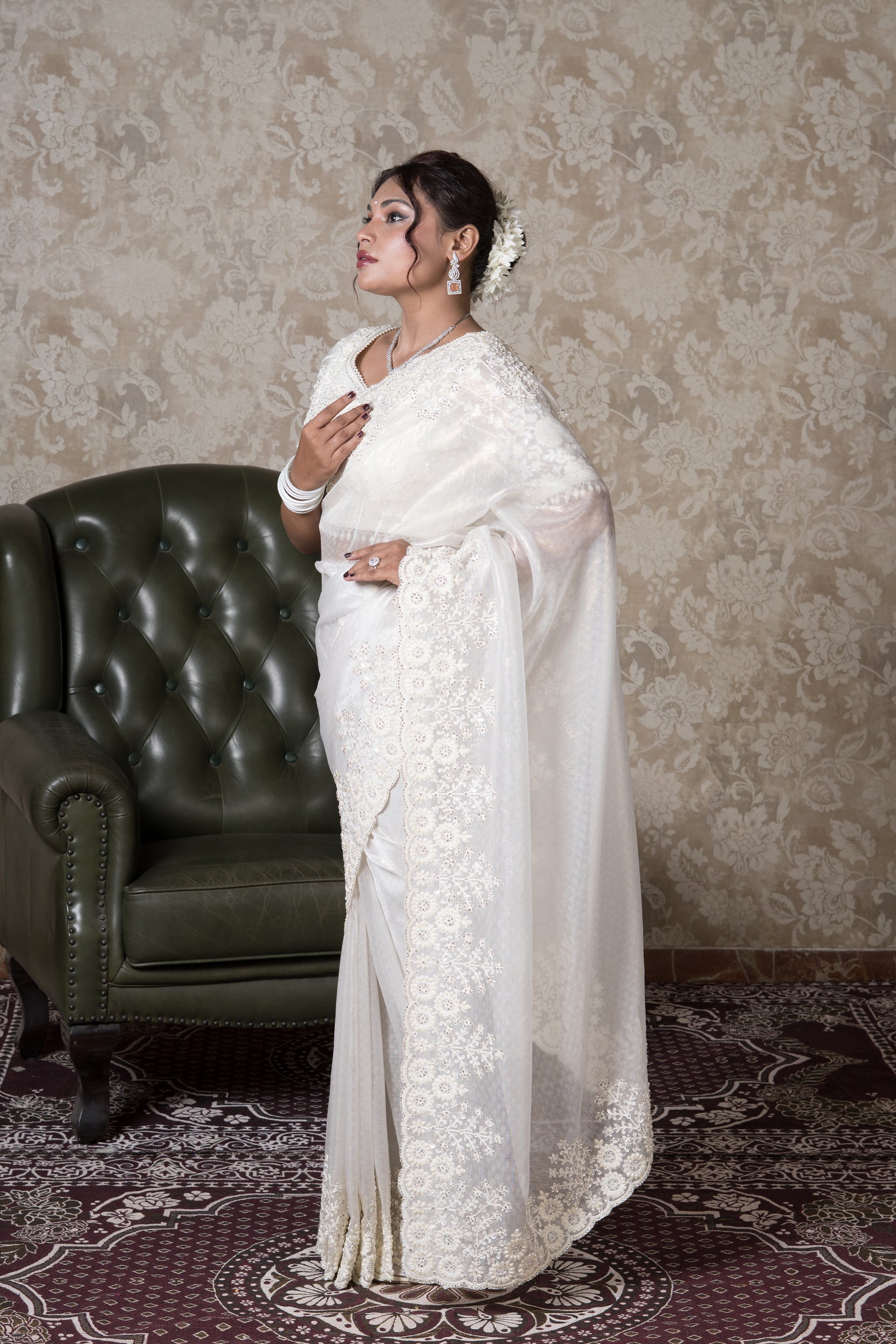 Elevate your wardrobe with our exclusive Cream Organza Saree with Stone Work. Featuring a beautiful Cream hue, this piece effortlessly blends timeless tradition with modern elegance. Ideal for festive occasions or everyday sophistication. Shop now and make it yours.
