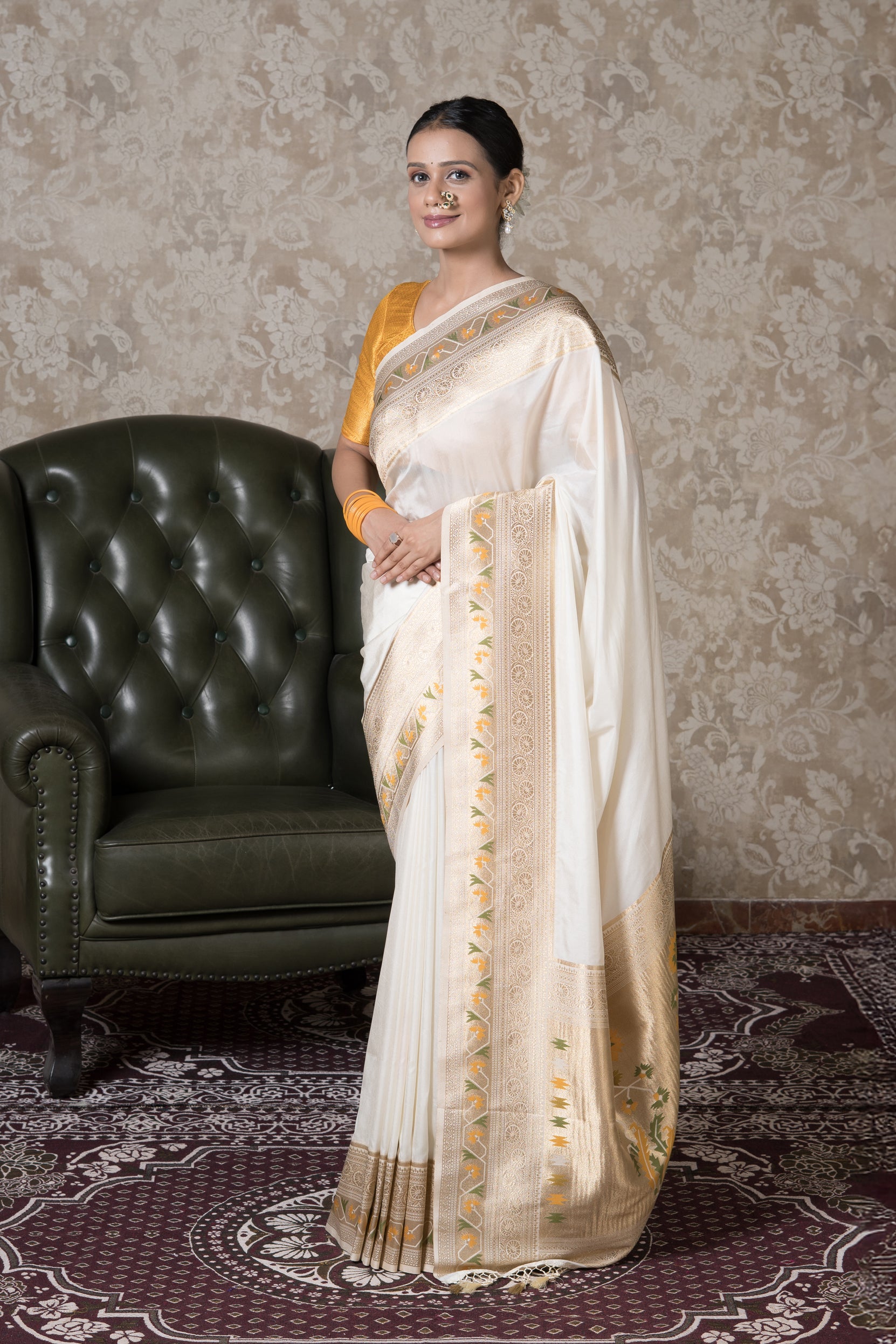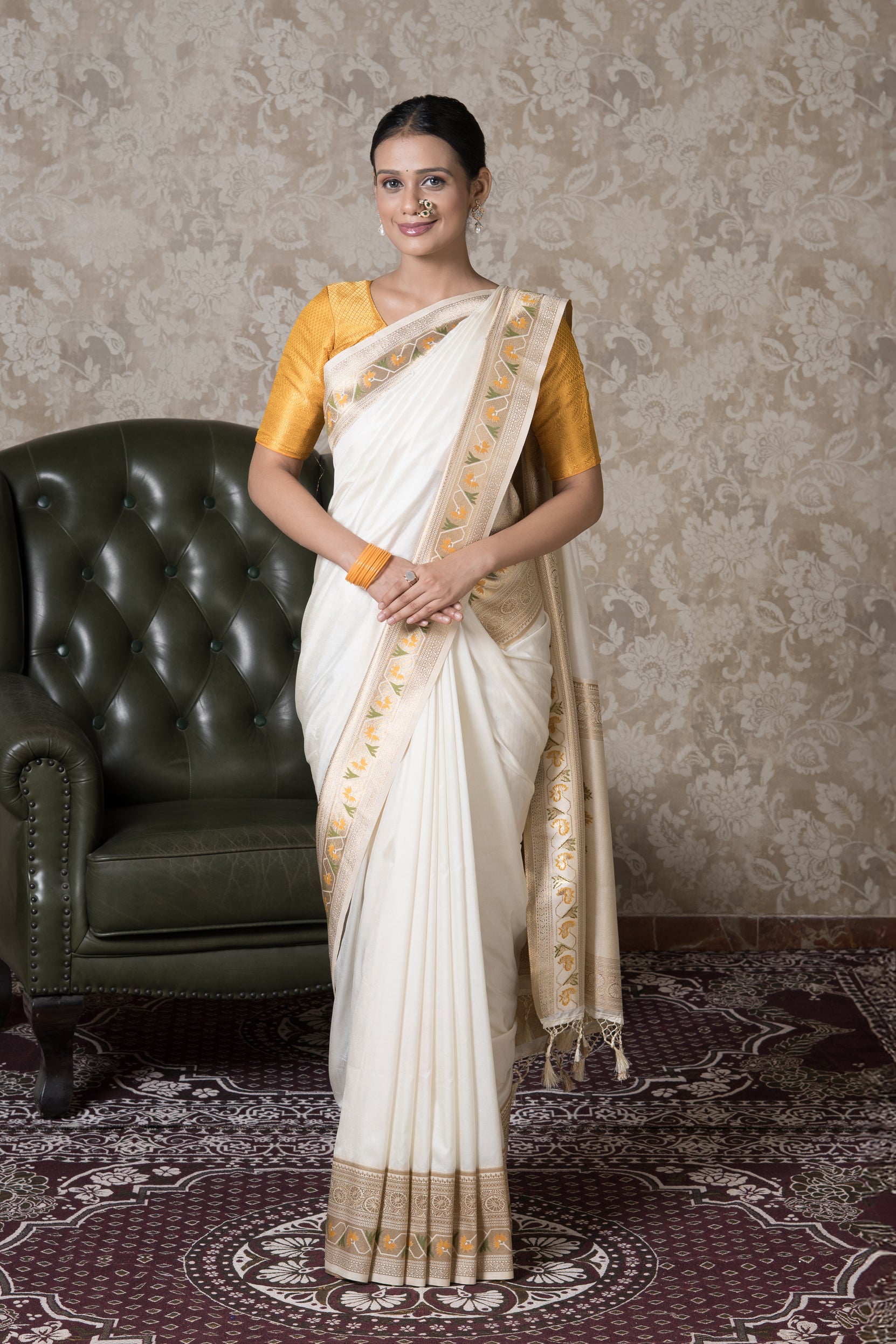 Perfectly suited for festive occasions, puja ceremonies, office wear, and even summer gatherings, this saree offers both comfort and sophistication. The matching cream blouse piece completes the ensemble, allowing for versatile styling with either traditional or modern accessories.