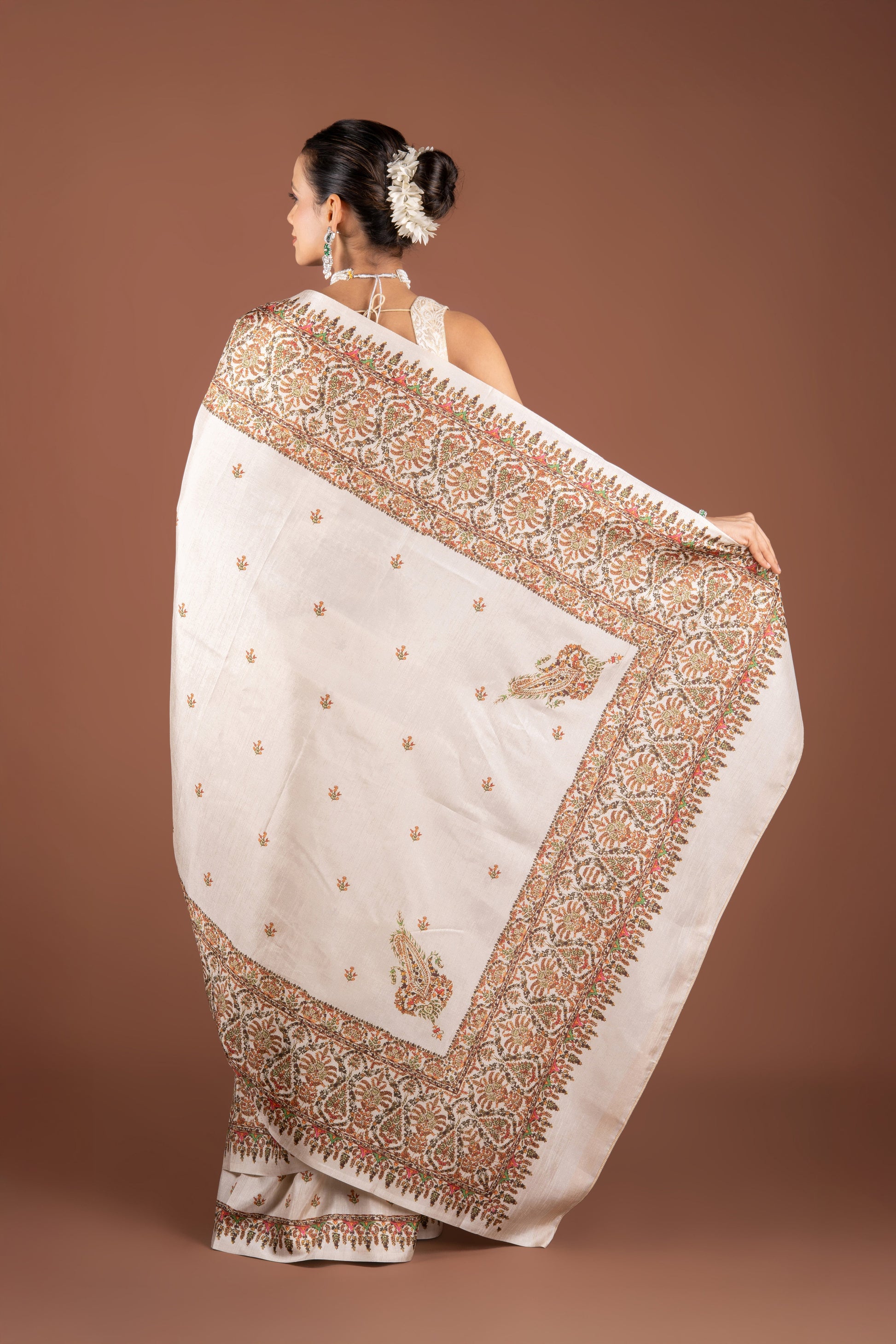 This Cream Tussar Silk Saree with Block Print is a masterpiece that reflects timeless craftsmanship. Woven from premium fabrics, it offers a rich texture and graceful drape. An ideal pick for weddings, festive gatherings, or grand celebrations. Pair it with antique jewellery for a heritage-inspired look.