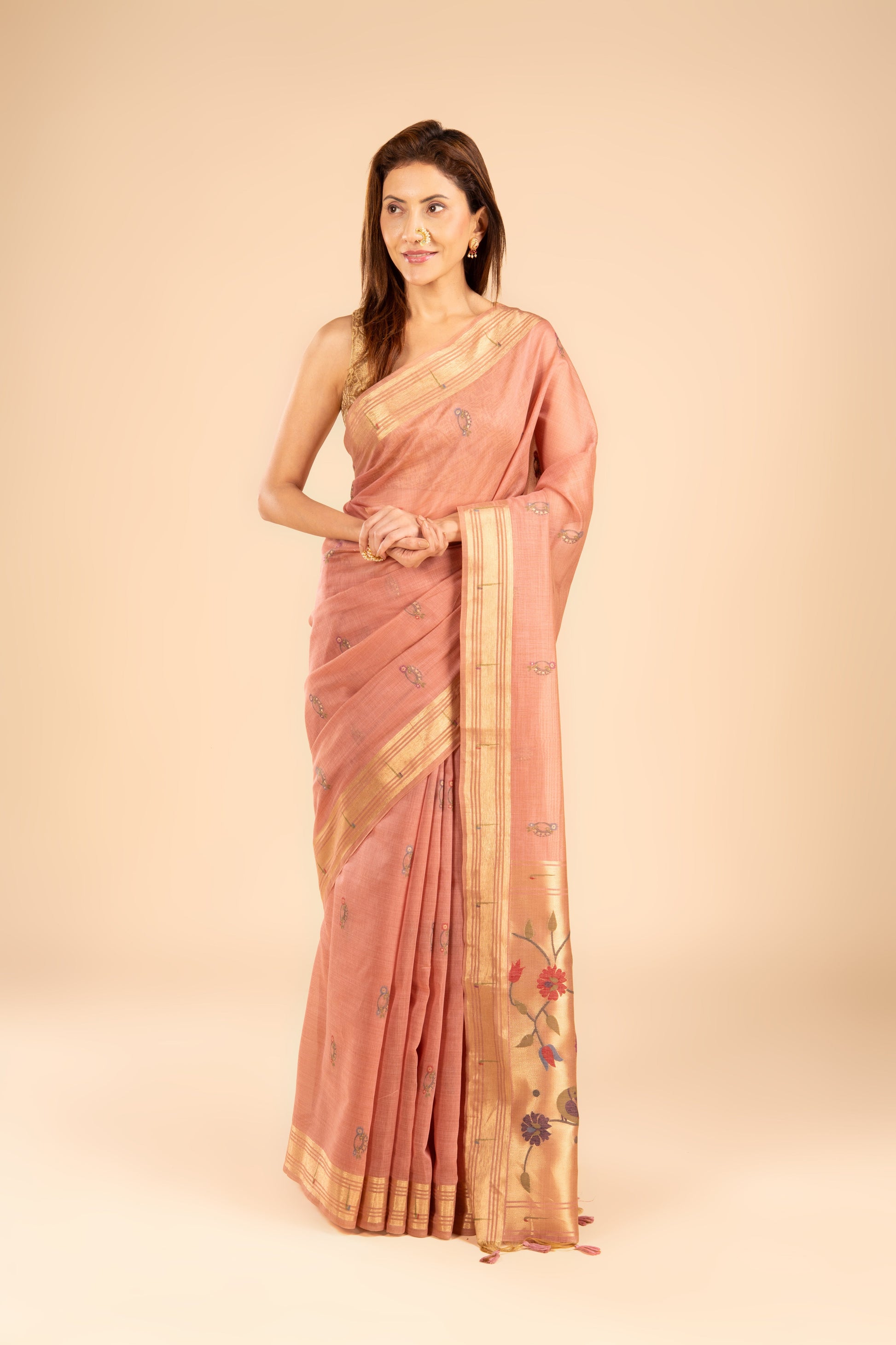 Dusty Pink Cotton Paithani Saree