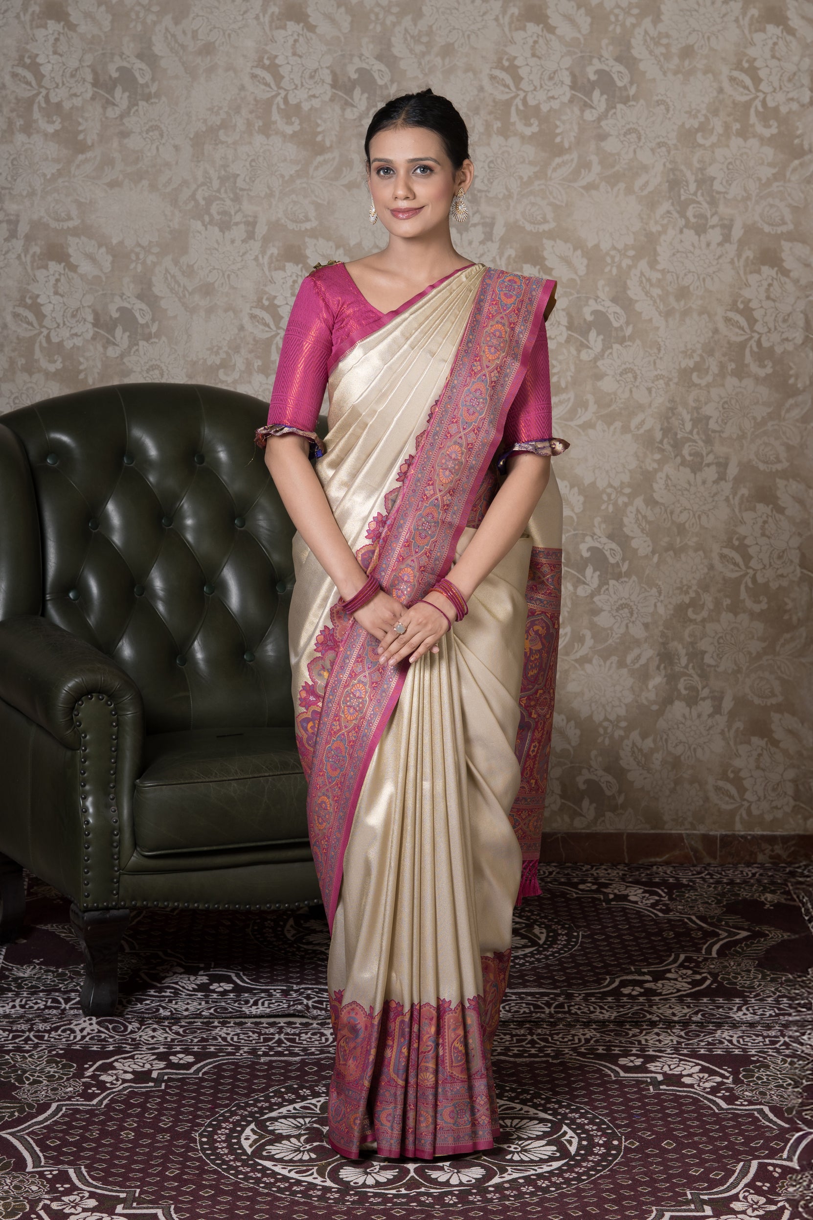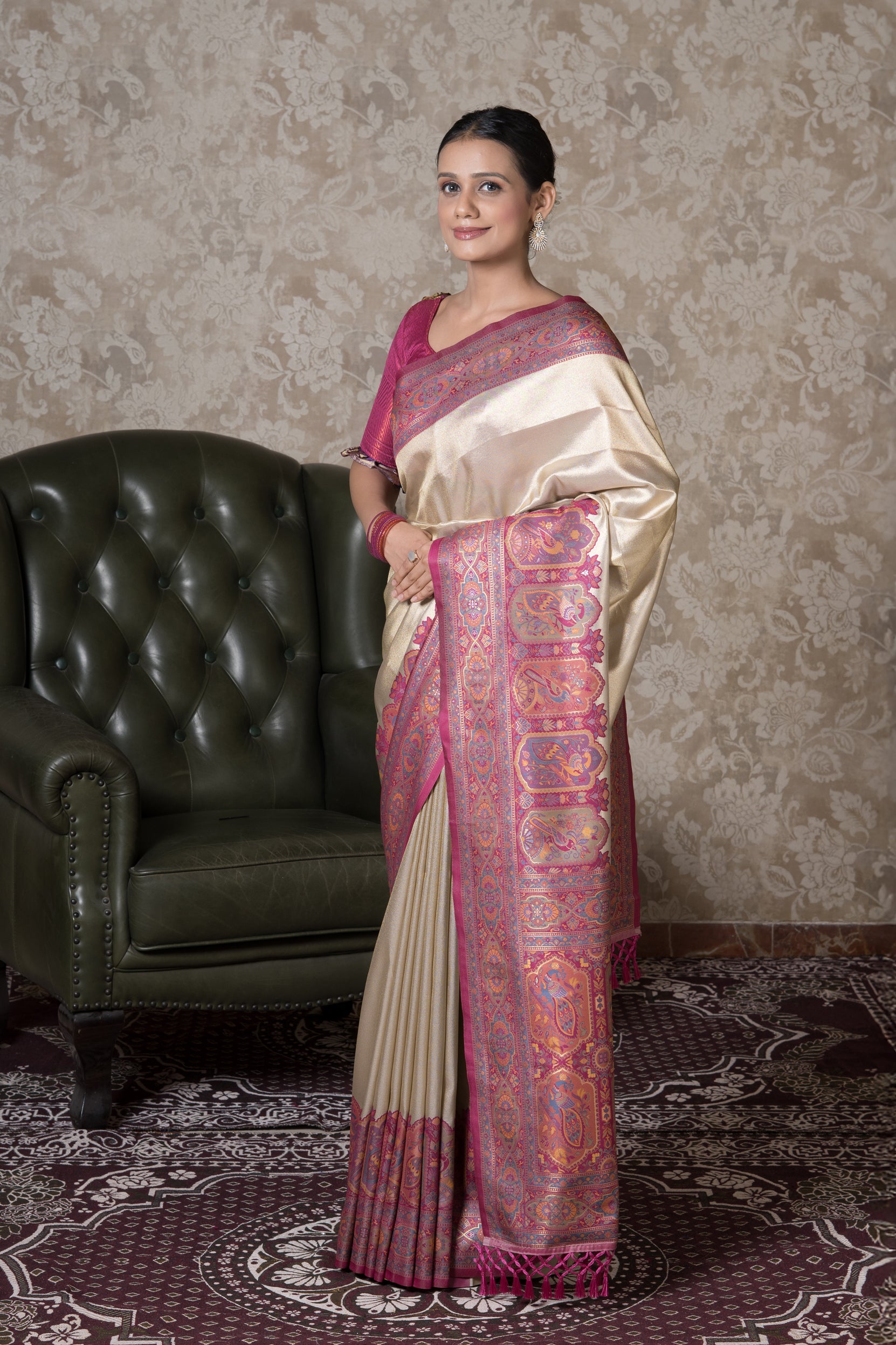 Elevate your wardrobe with our exclusive Gold Tissue Silk Pashmina Saree. Featuring a beautiful Gold hue, this piece effortlessly blends timeless tradition with modern elegance. Ideal for festive occasions or everyday sophistication. Shop now and make it yours.